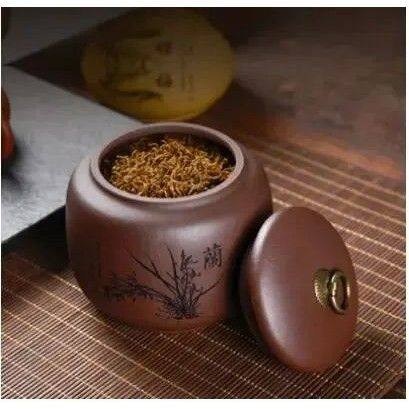 Household Ceramic Tea Caddy with Lid Purple Clay Sealed Jar