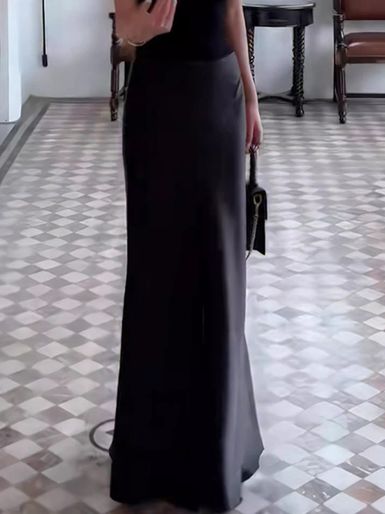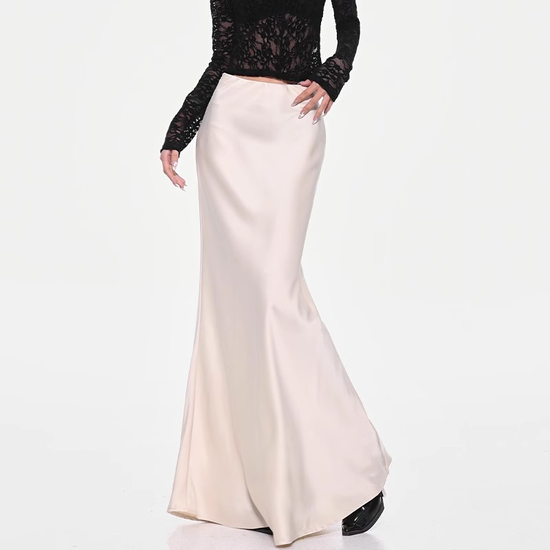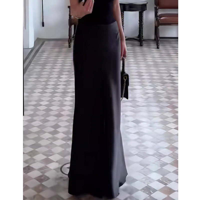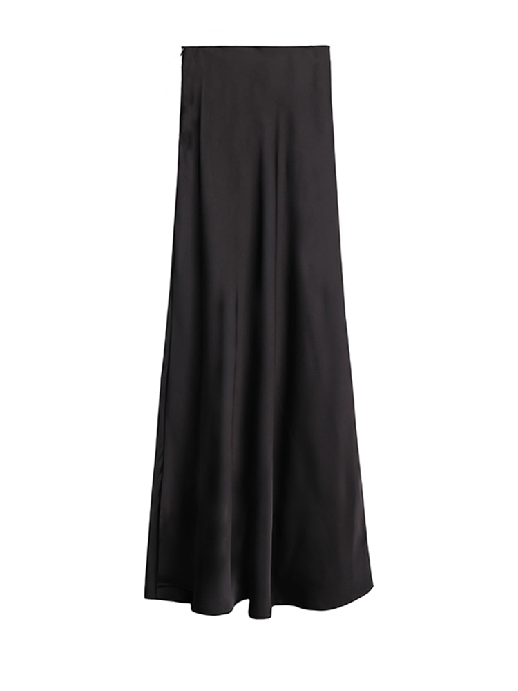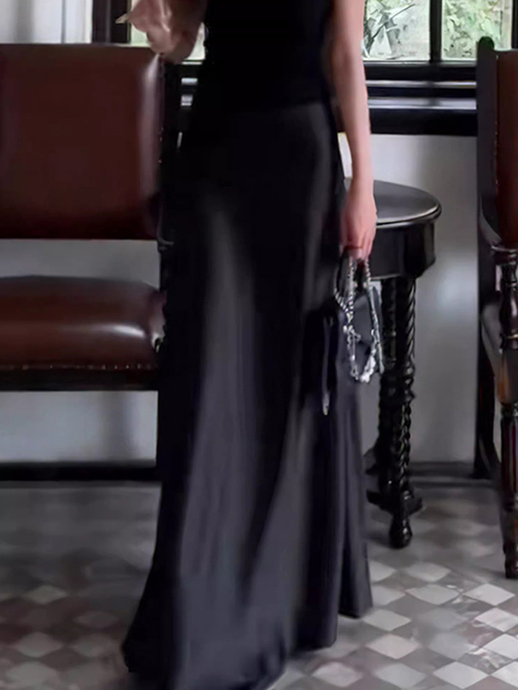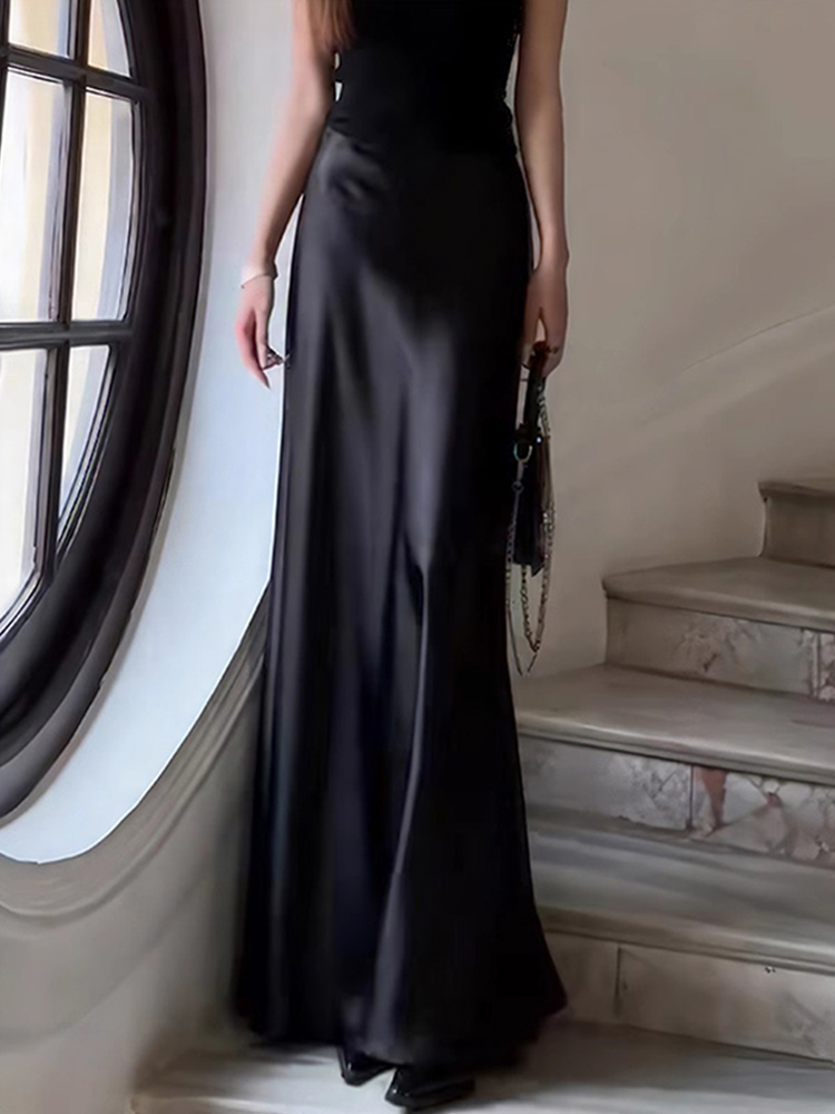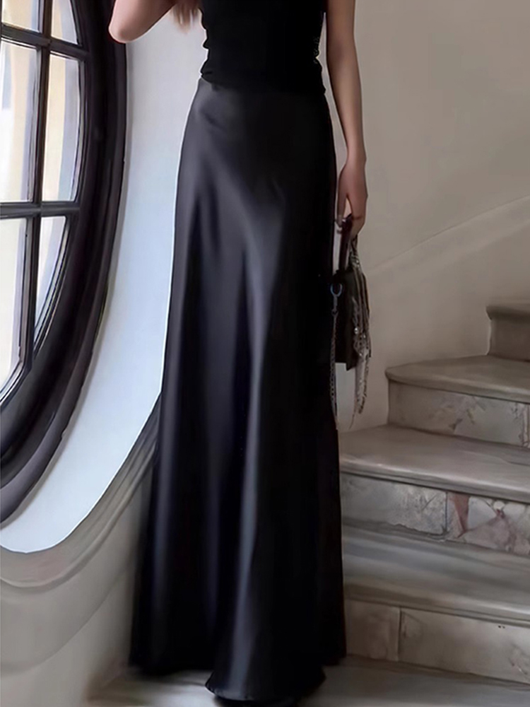 大码黑色丝滑垂感醋酸缎面半身裙女胖妹妹高腰mm显瘦鱼尾a字长裙