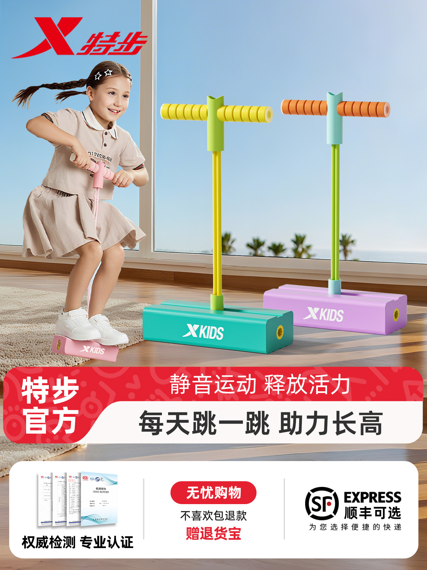 特步跳跳杆儿童长高训练器材小孩跳高长个神器跳跳蹦高弹跳青蛙跳
