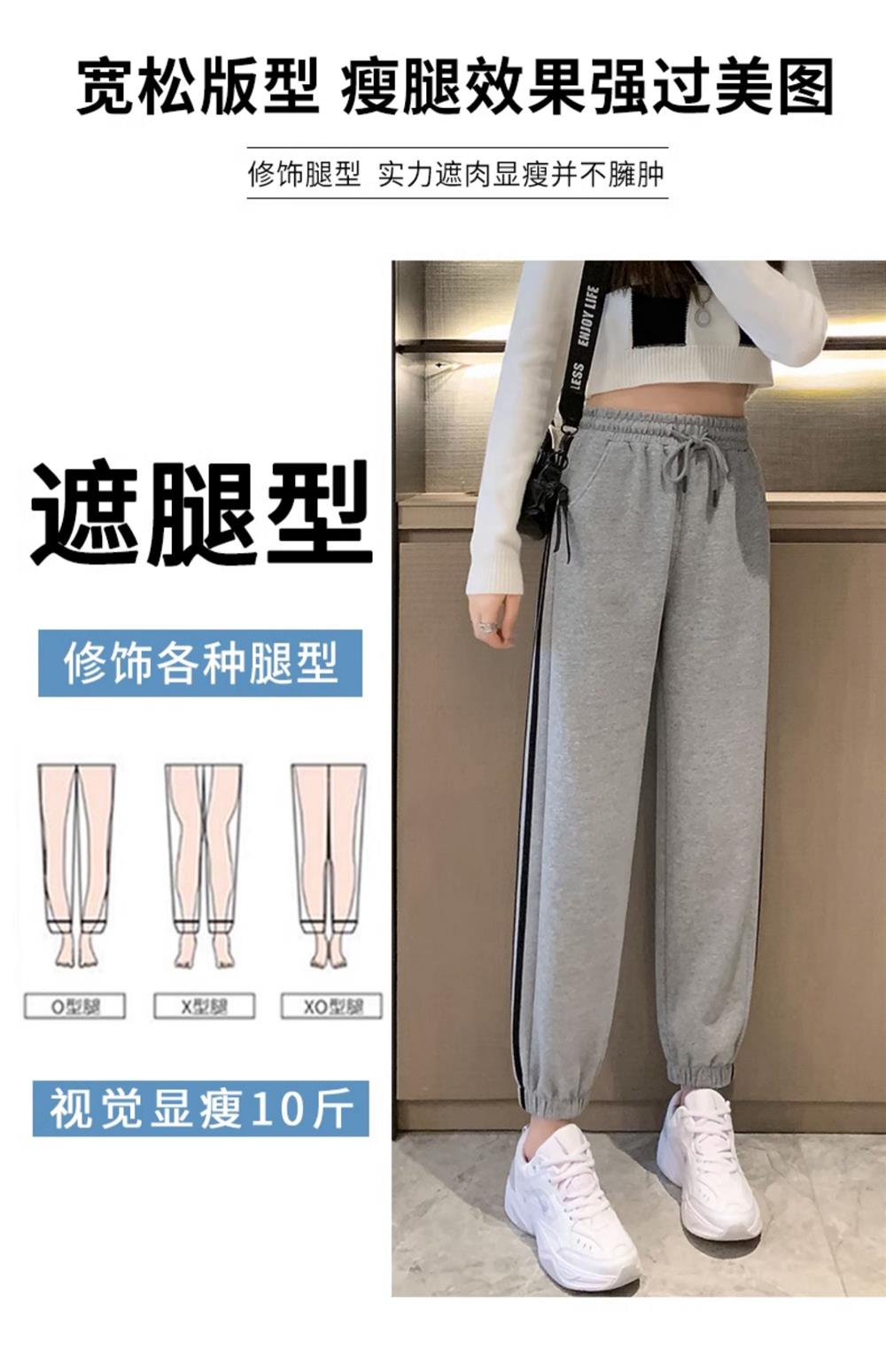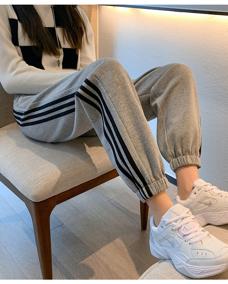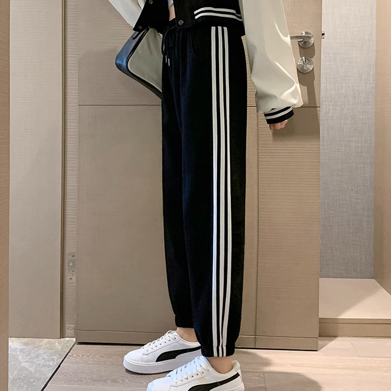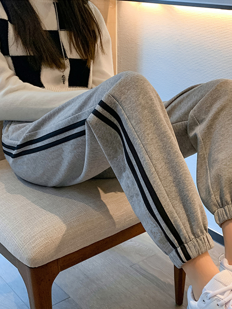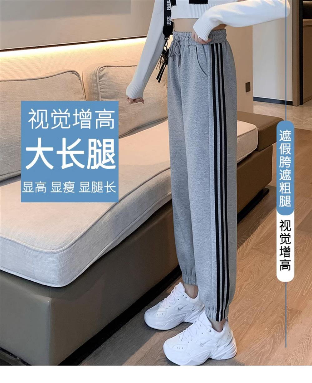 灰色美式运动裤男女士新款春秋季二三杠条纹休闲宽松阔腿束脚卫裤