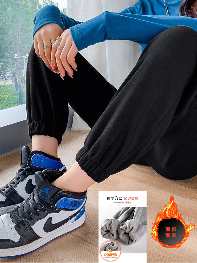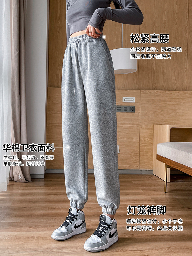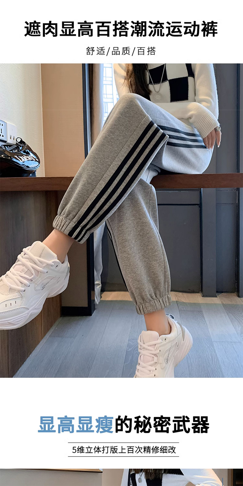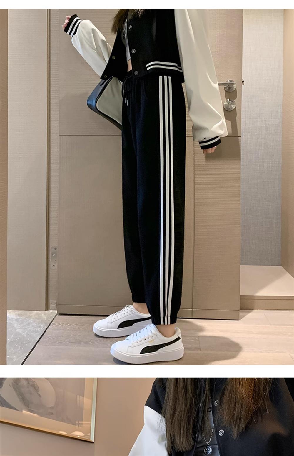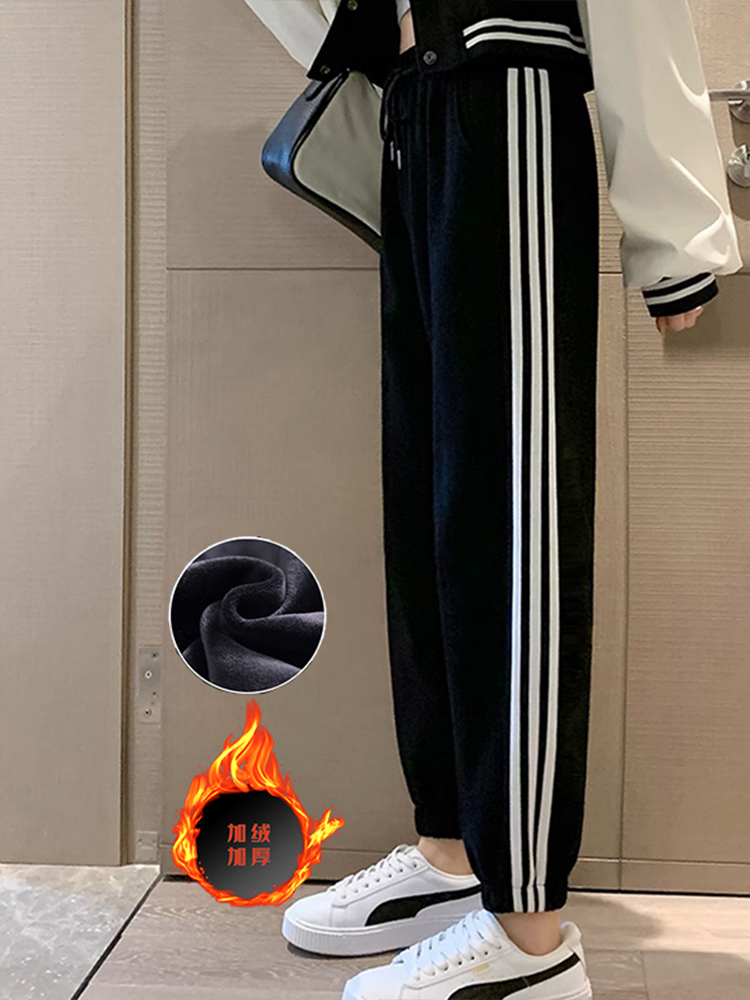 灰色美式运动裤男女士新款春秋季二三杠条纹休闲宽松阔腿束脚卫裤