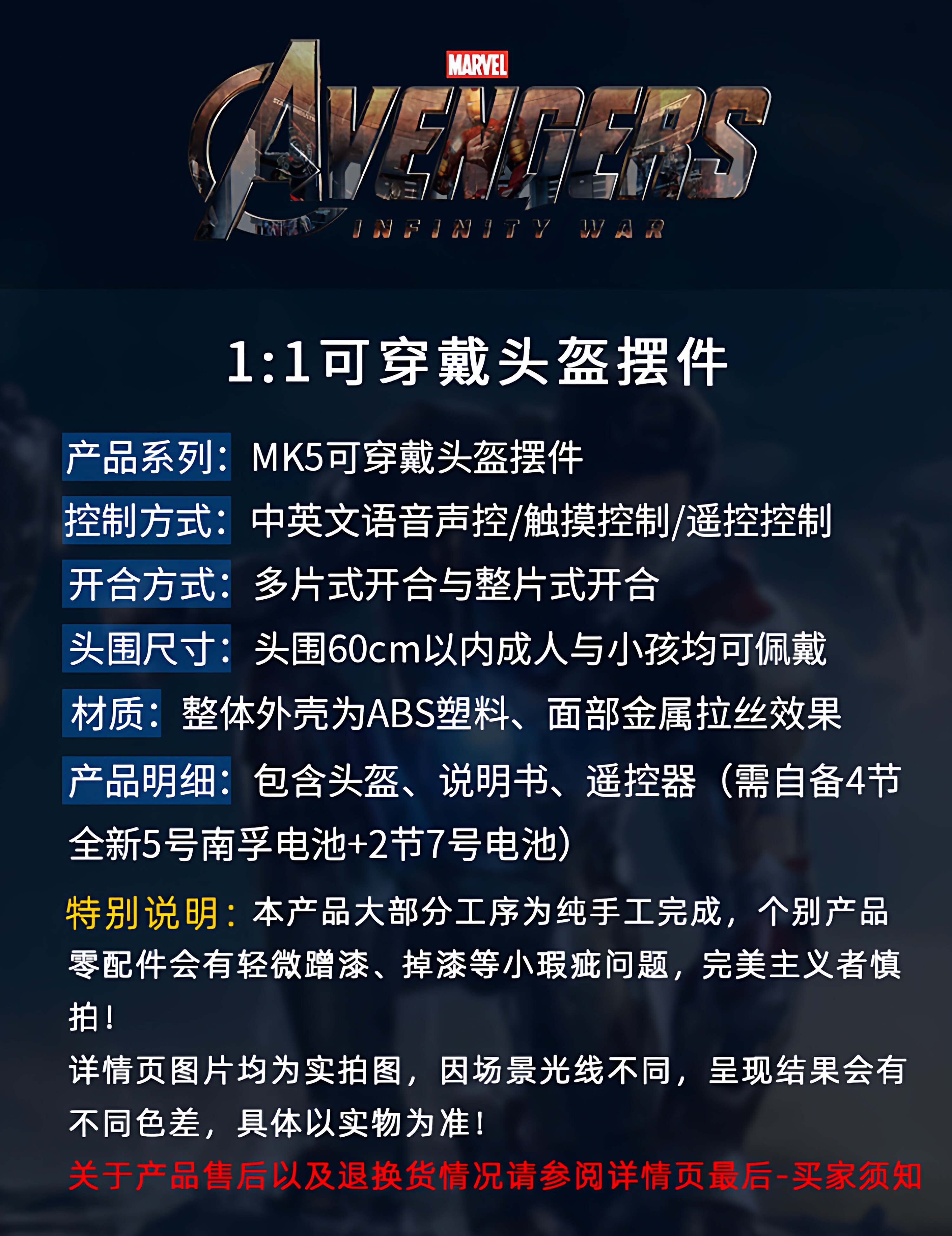钢铁侠头盔mk5真人可穿戴可变形声控电动开合儿童节男友生日礼物