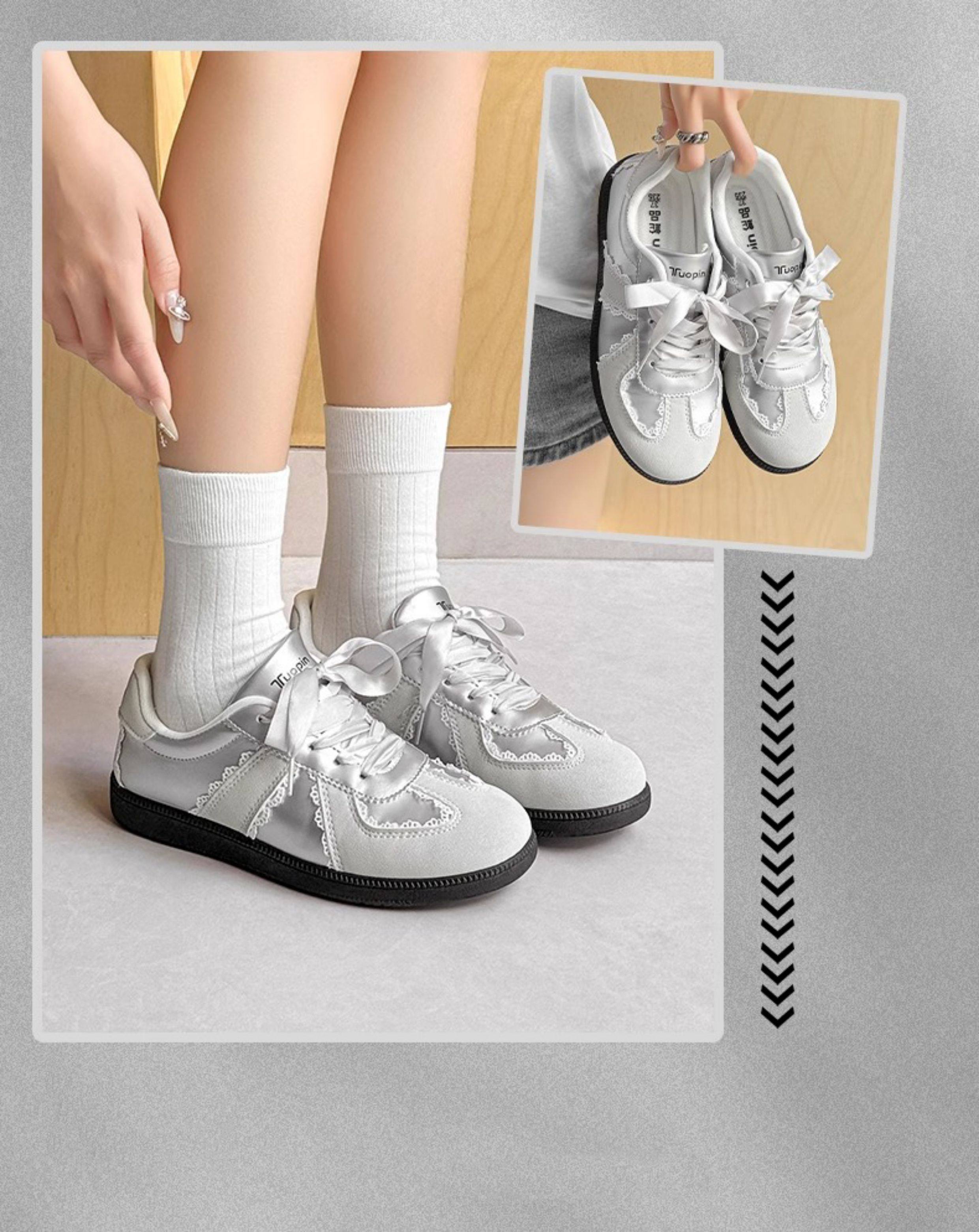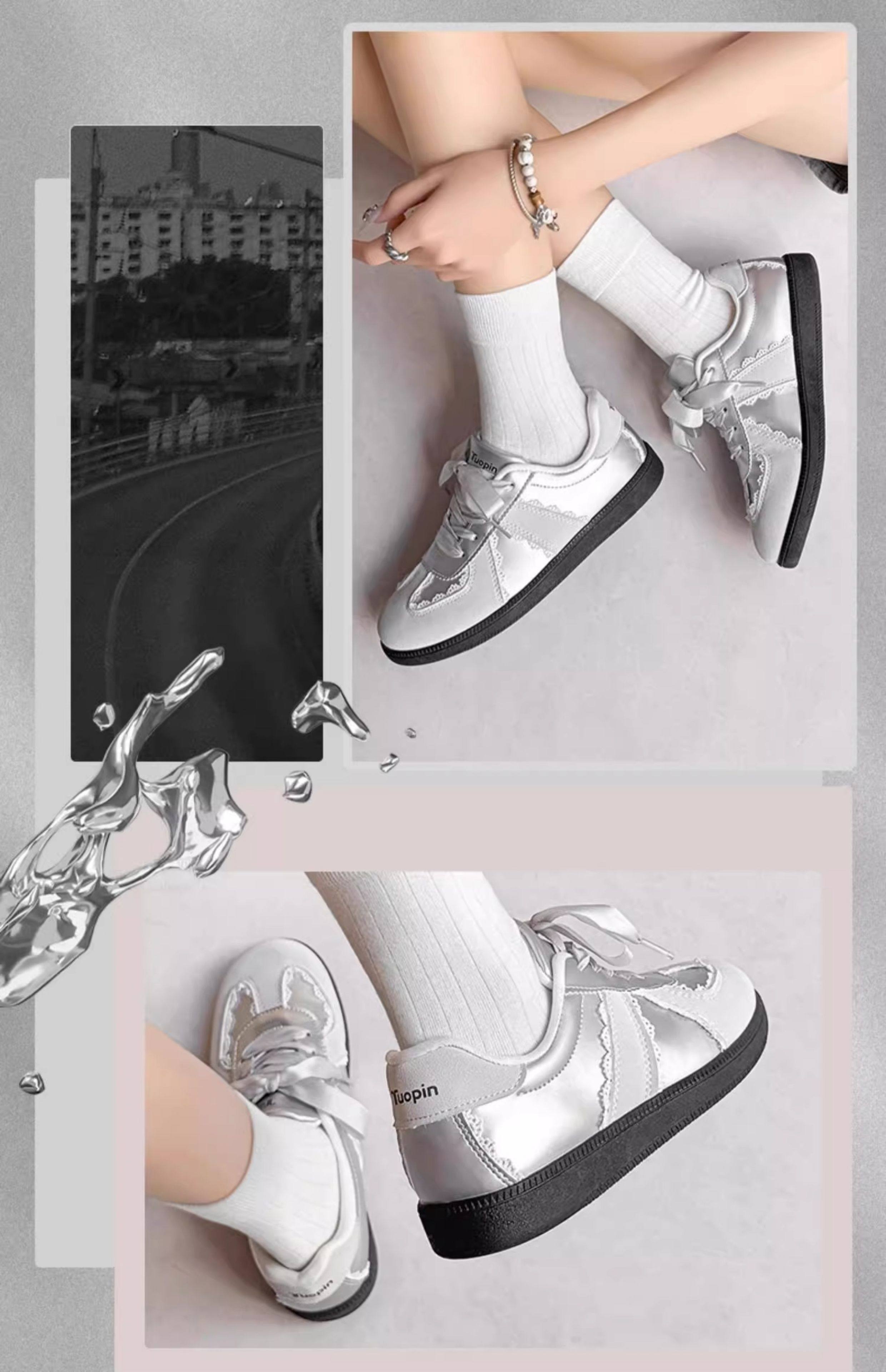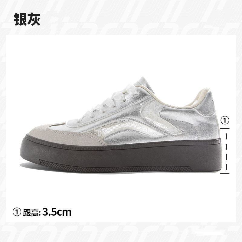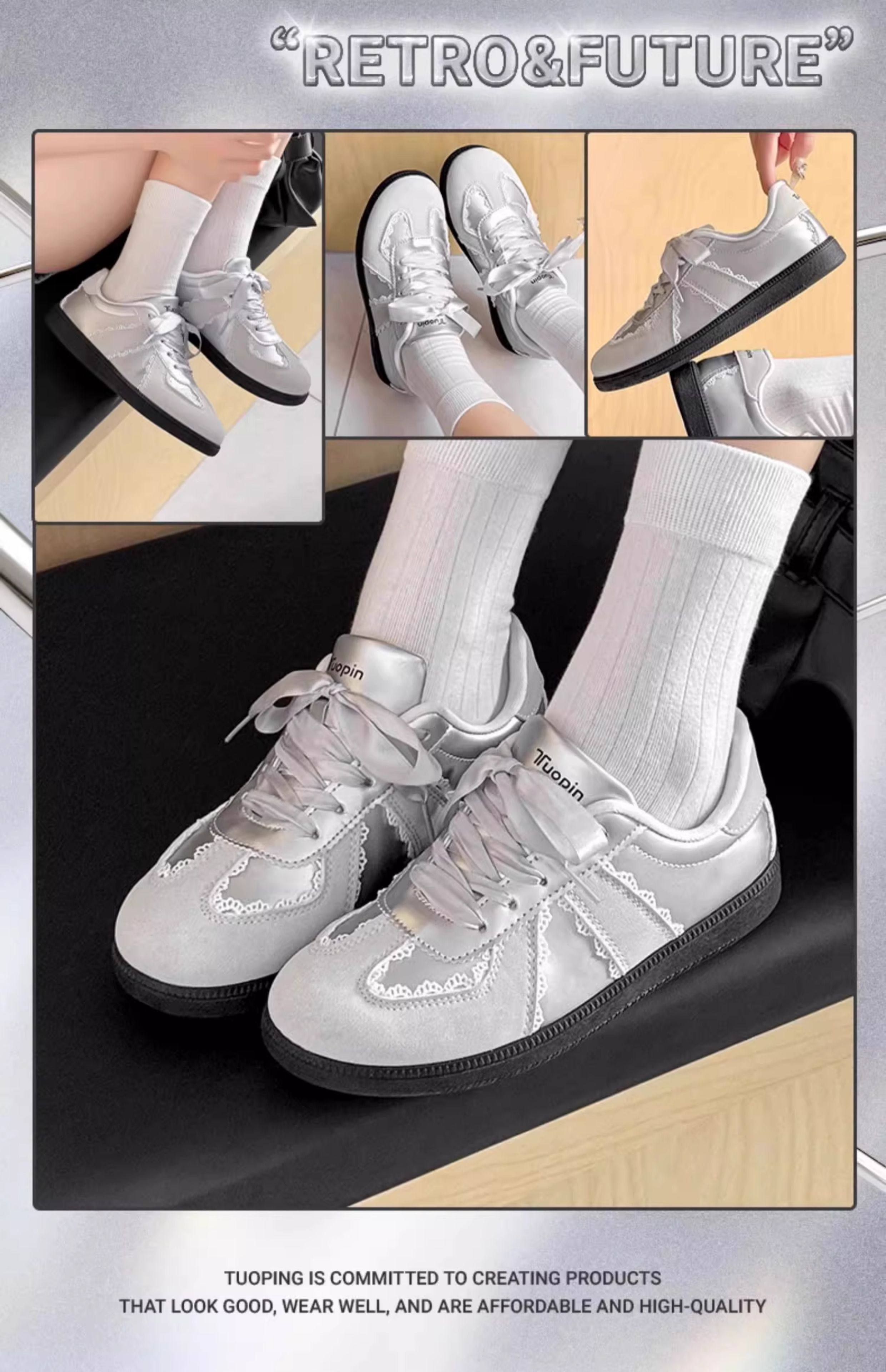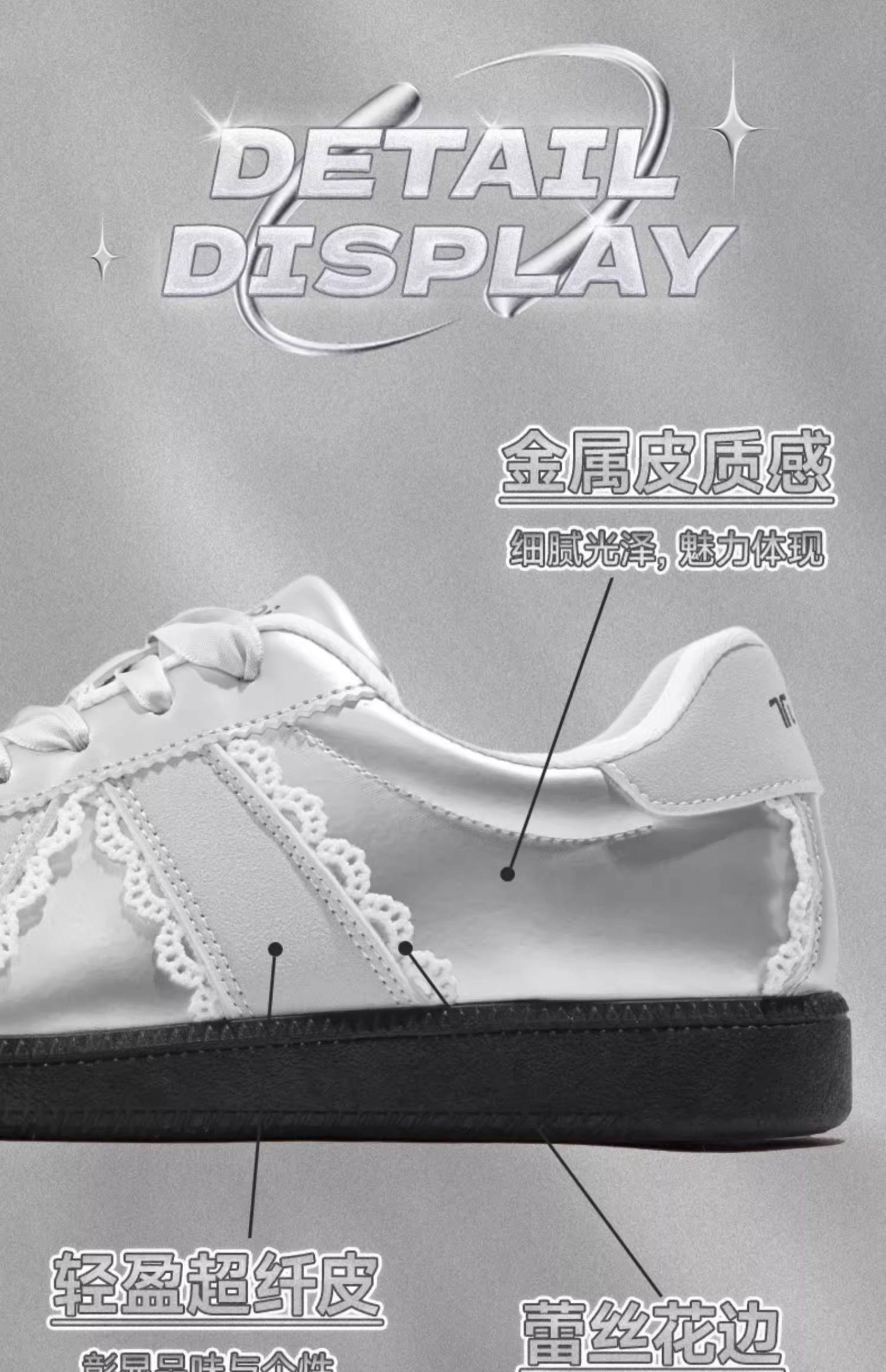 MDCW米兰风银色德训鞋女夏季韩版新款蕾丝小白鞋小众百搭休闲板鞋