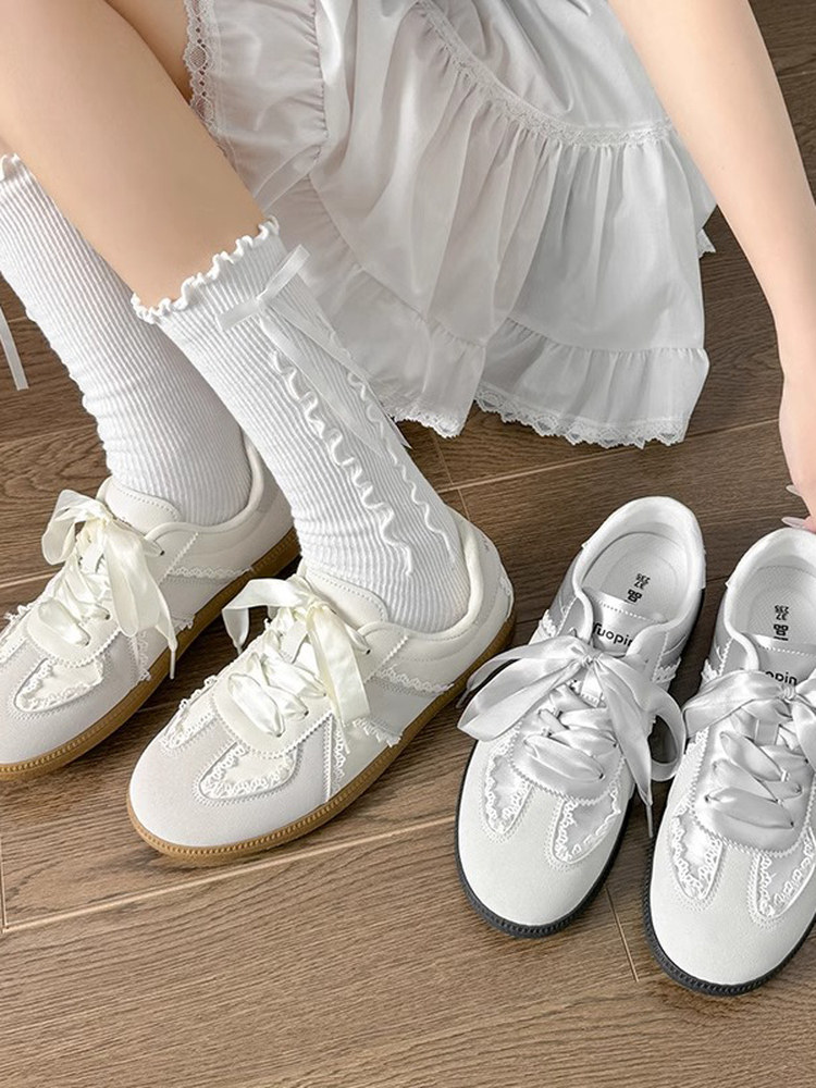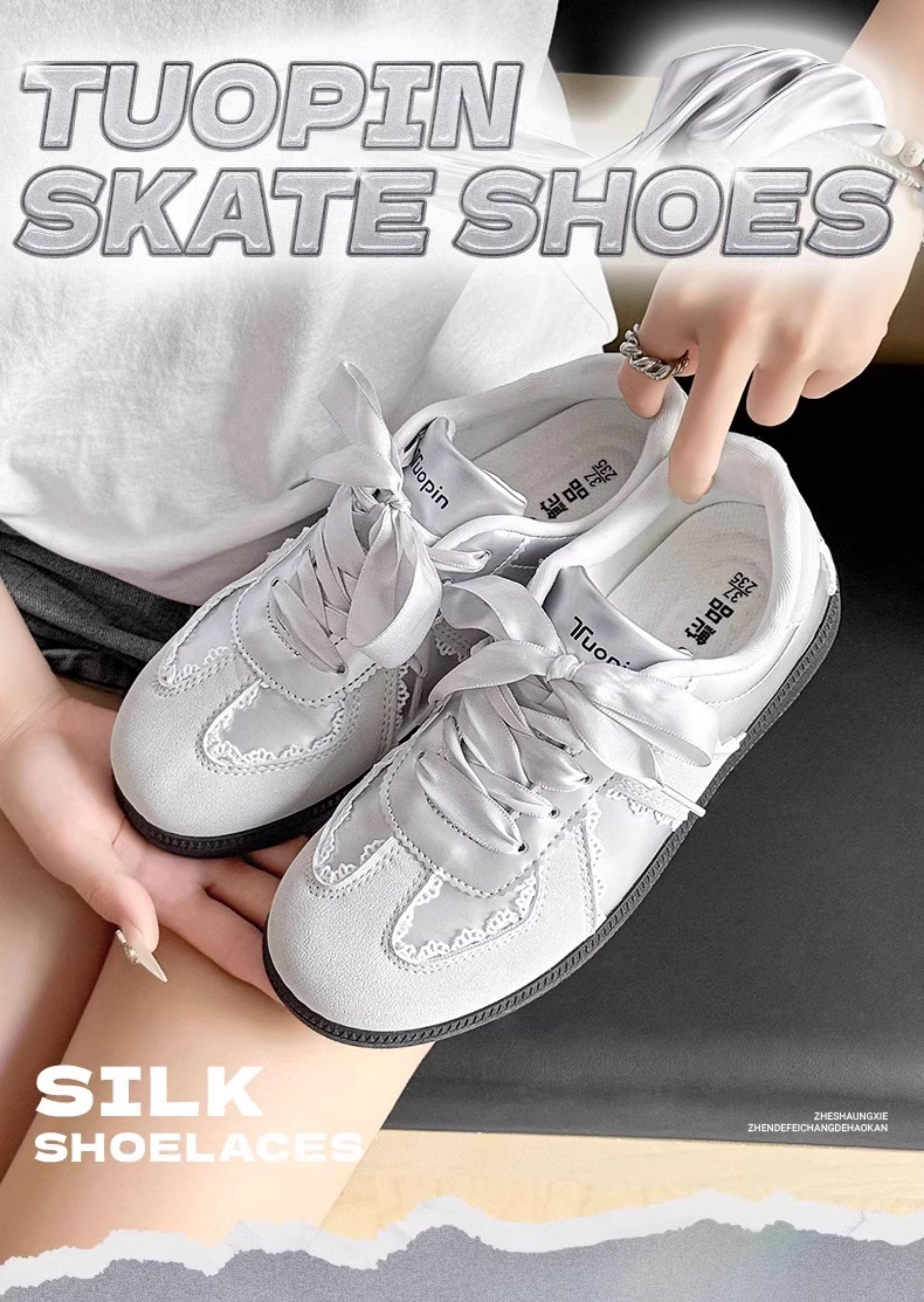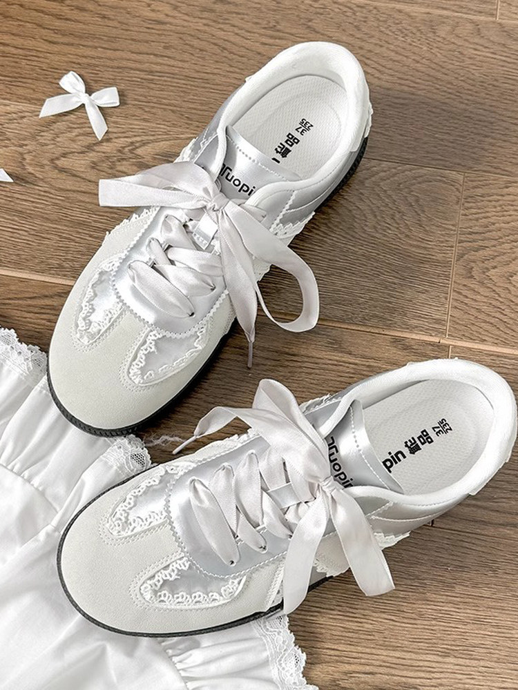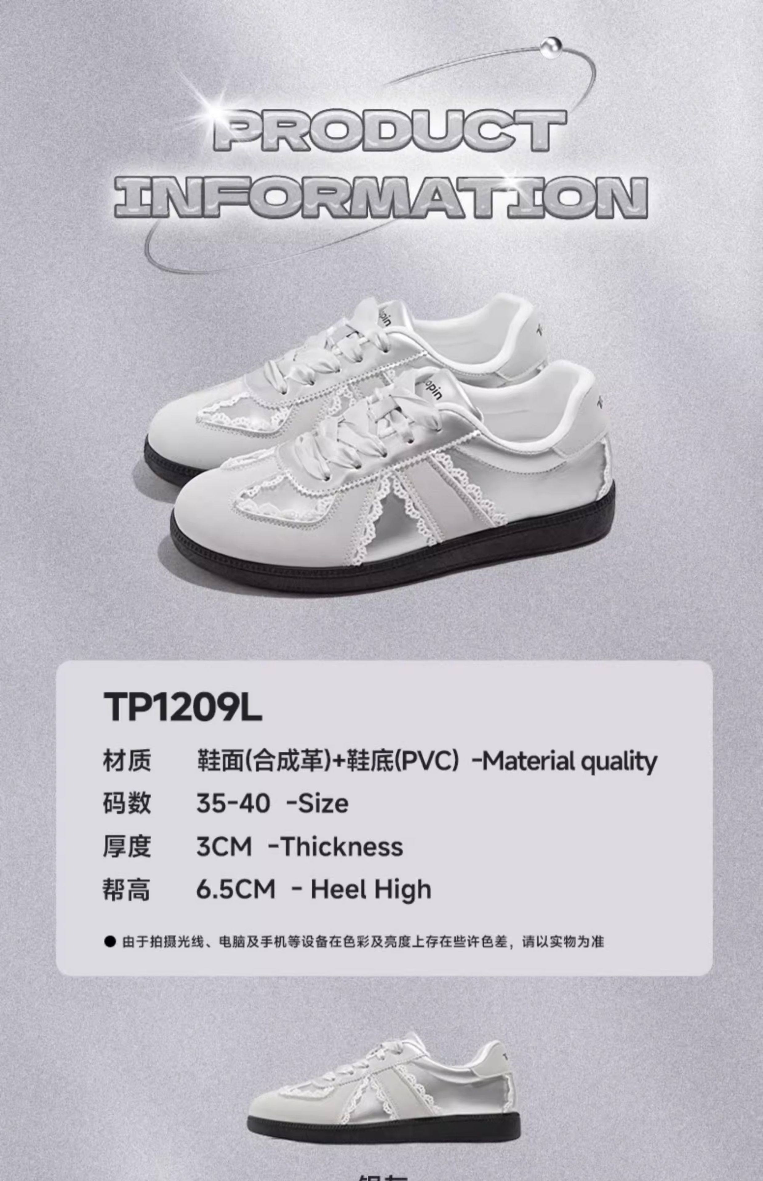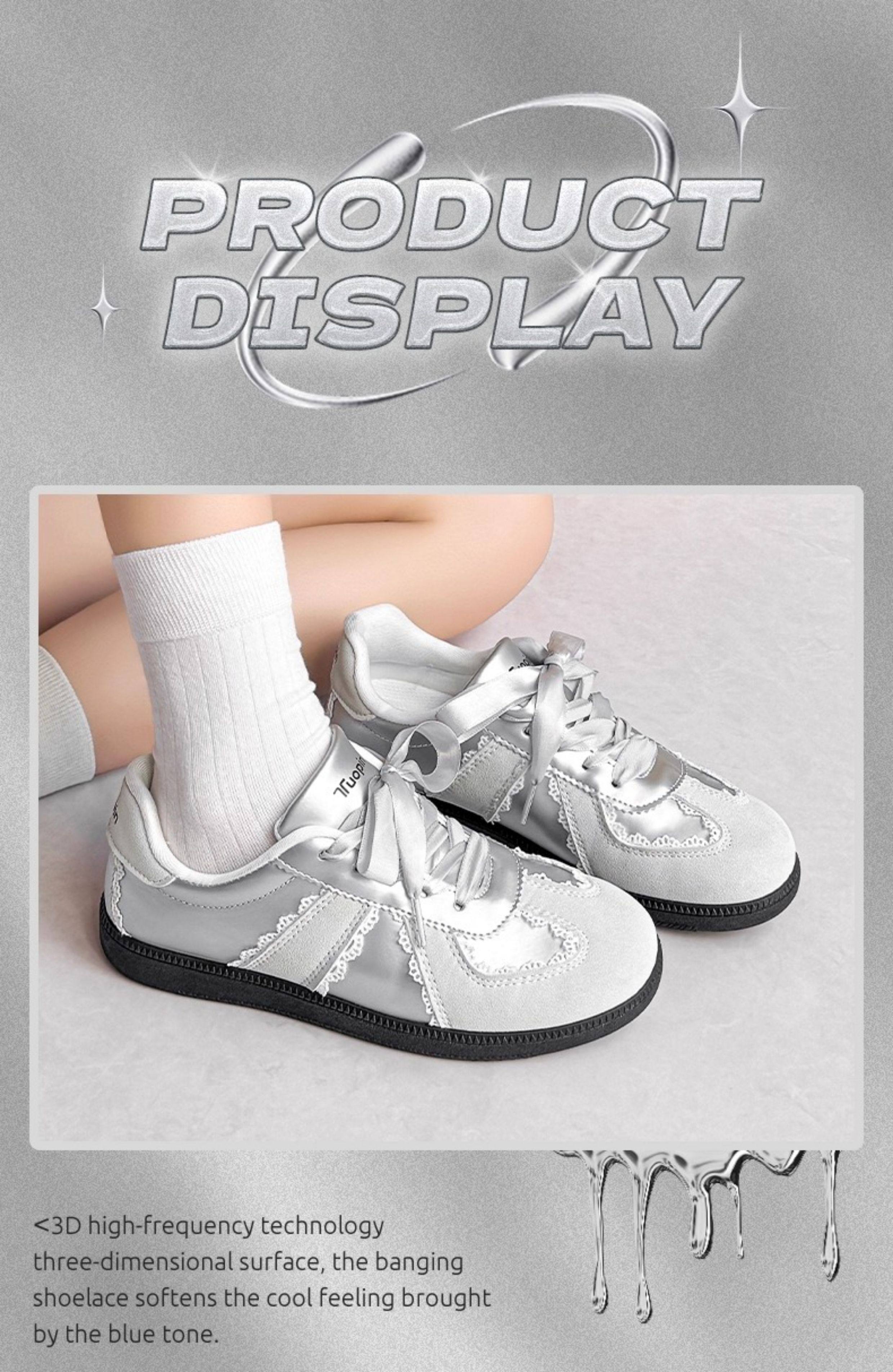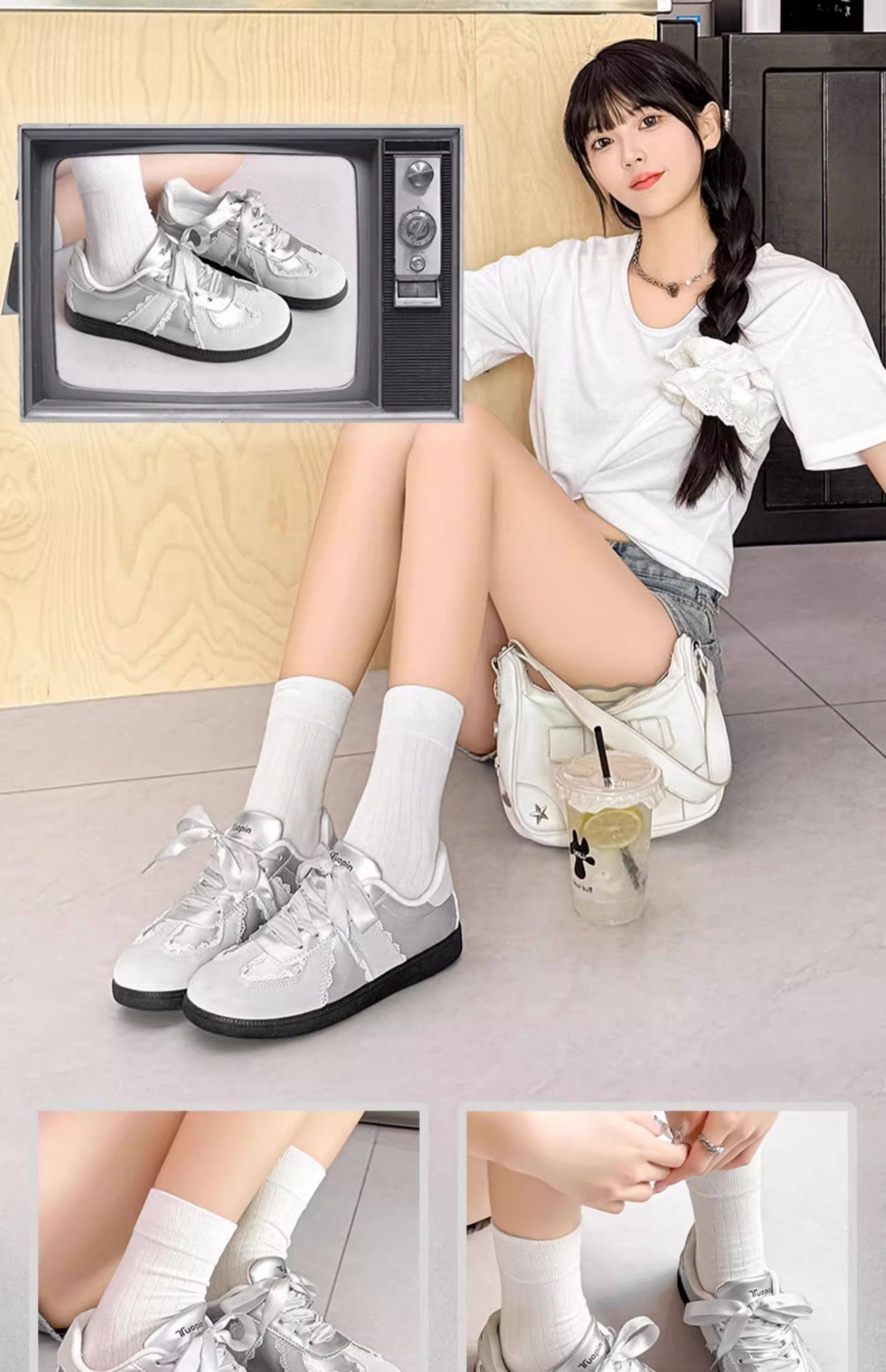MDCW米兰风银色德训鞋女夏季韩版新款蕾丝小白鞋小众百搭休闲板鞋