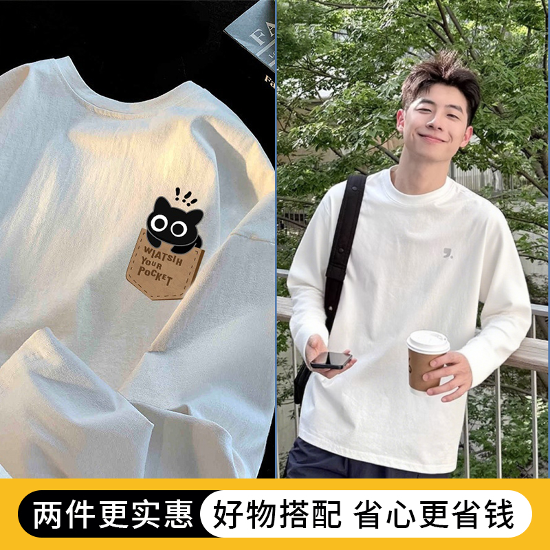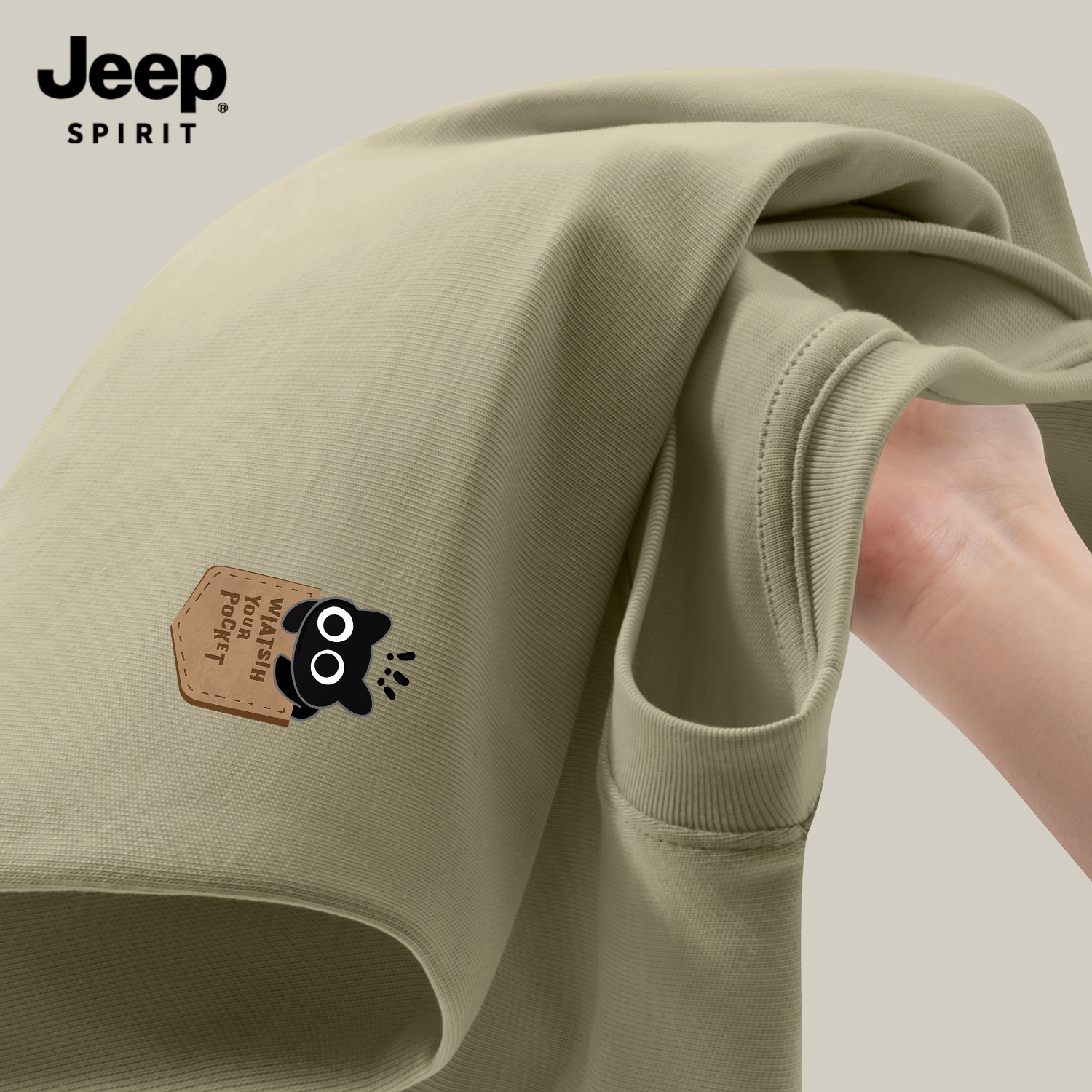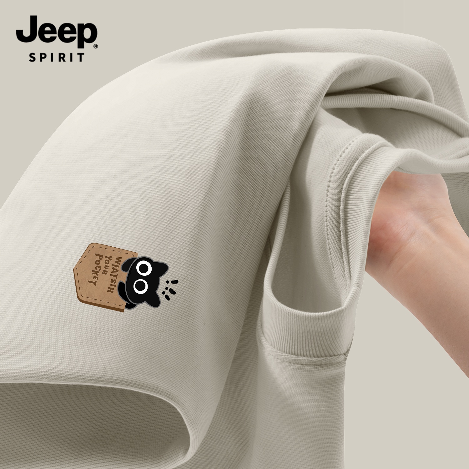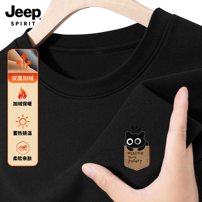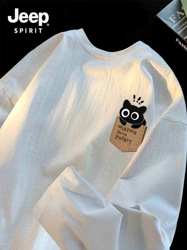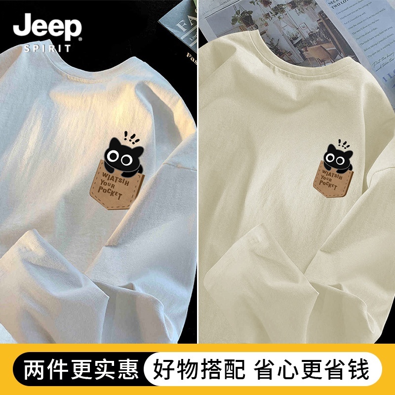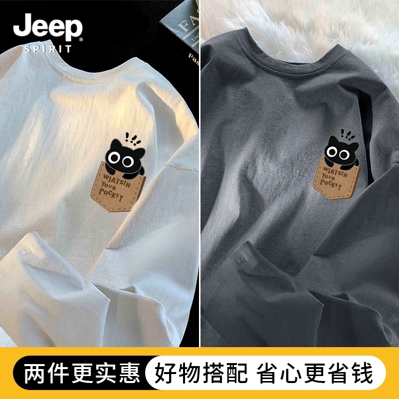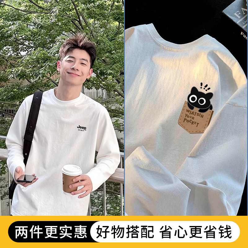 Jeep吉普纯棉男士长袖t恤男2025新款秋季上衣男生白色打底衫男装