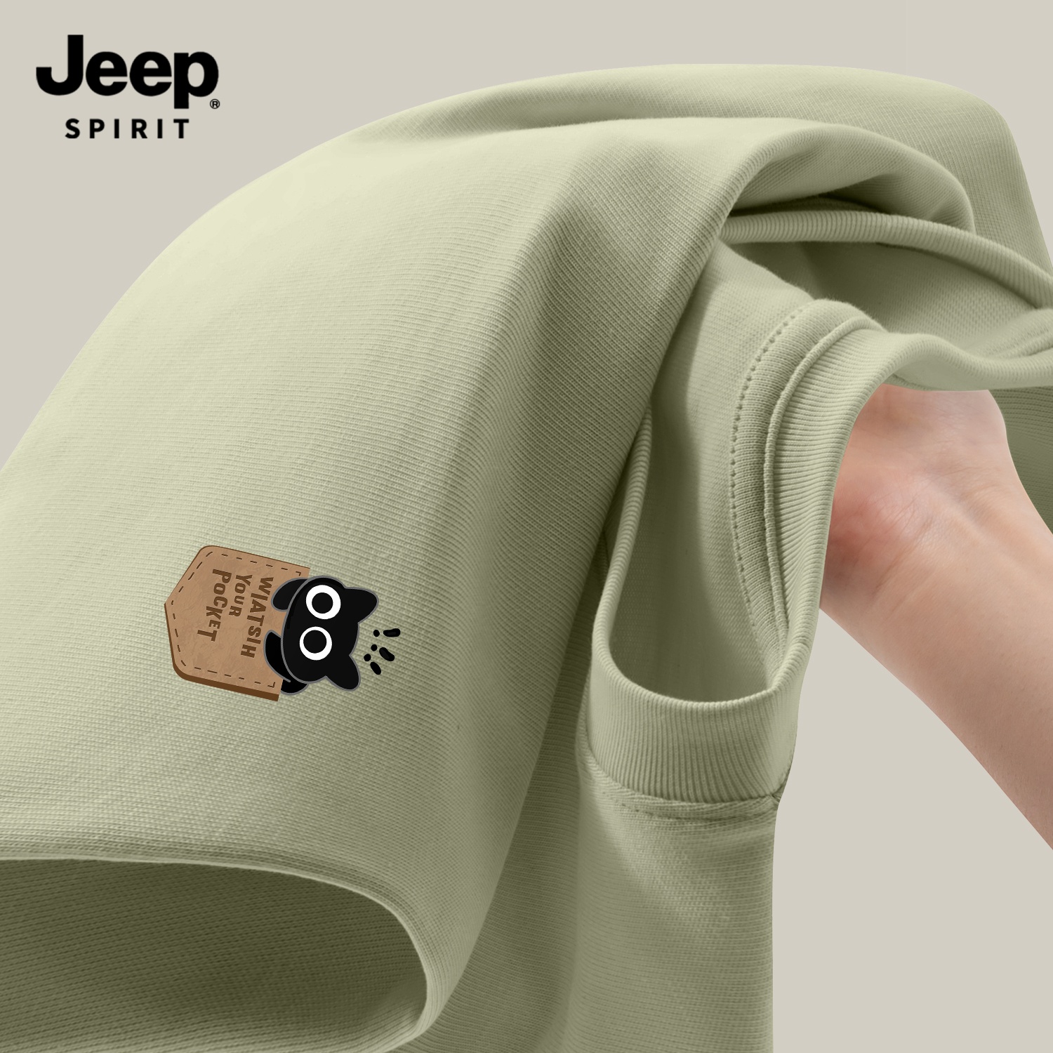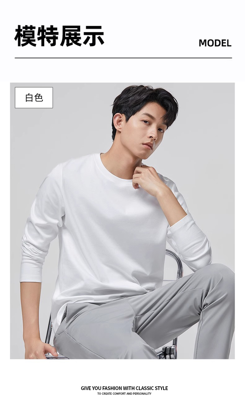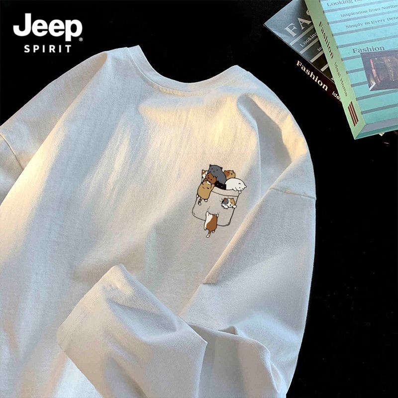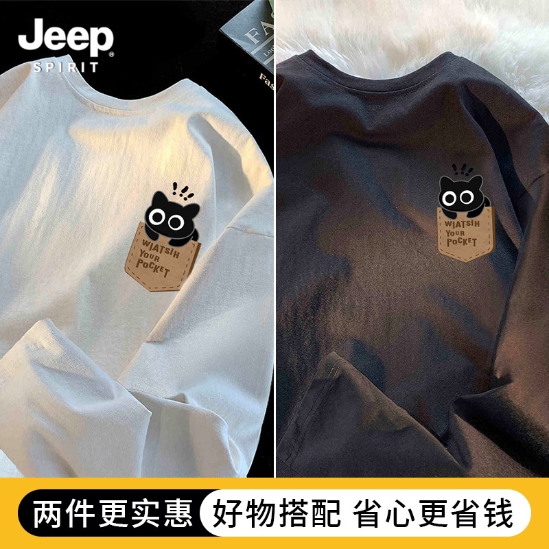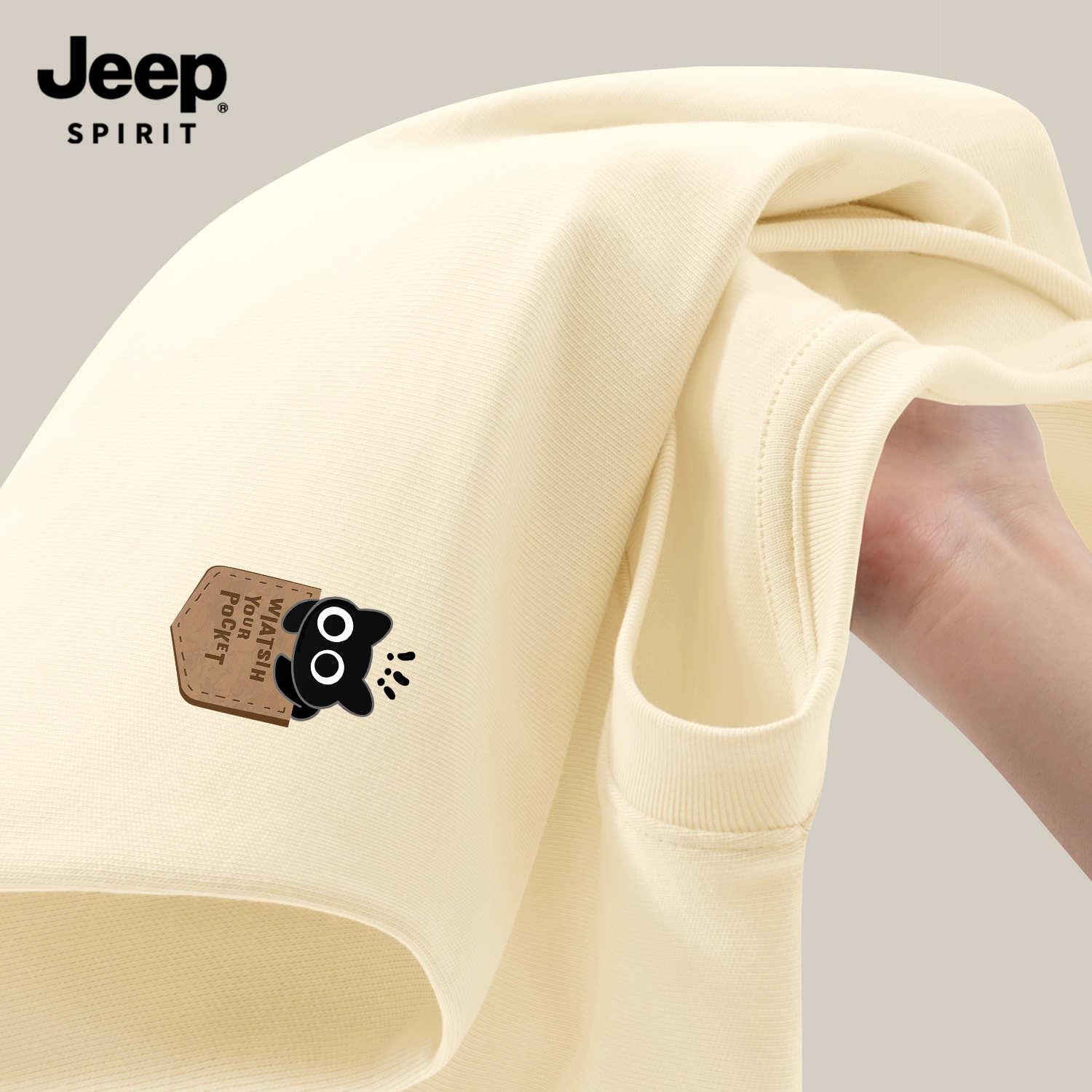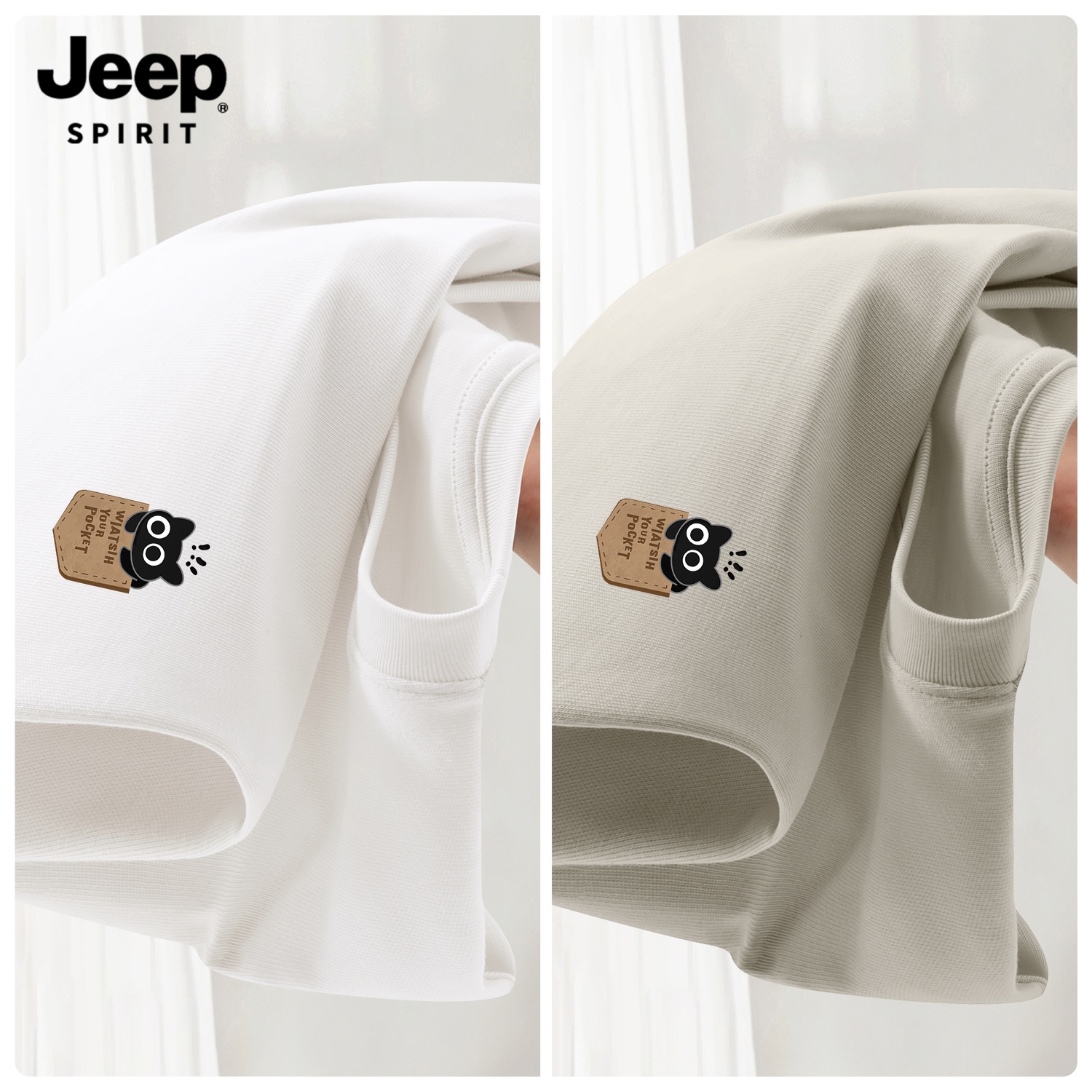 Jeep吉普纯棉男士长袖t恤男2025新款秋季上衣男生白色打底衫男装