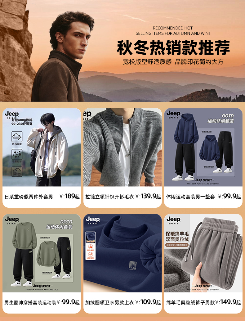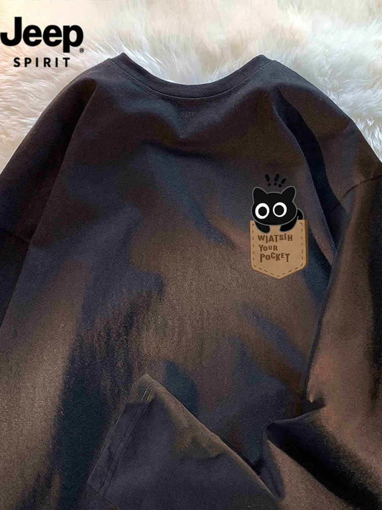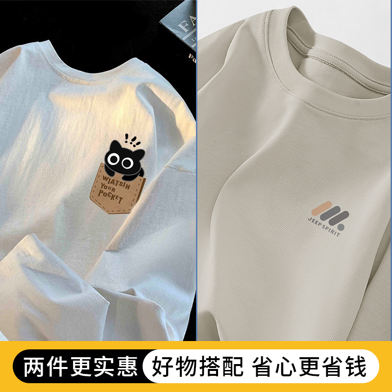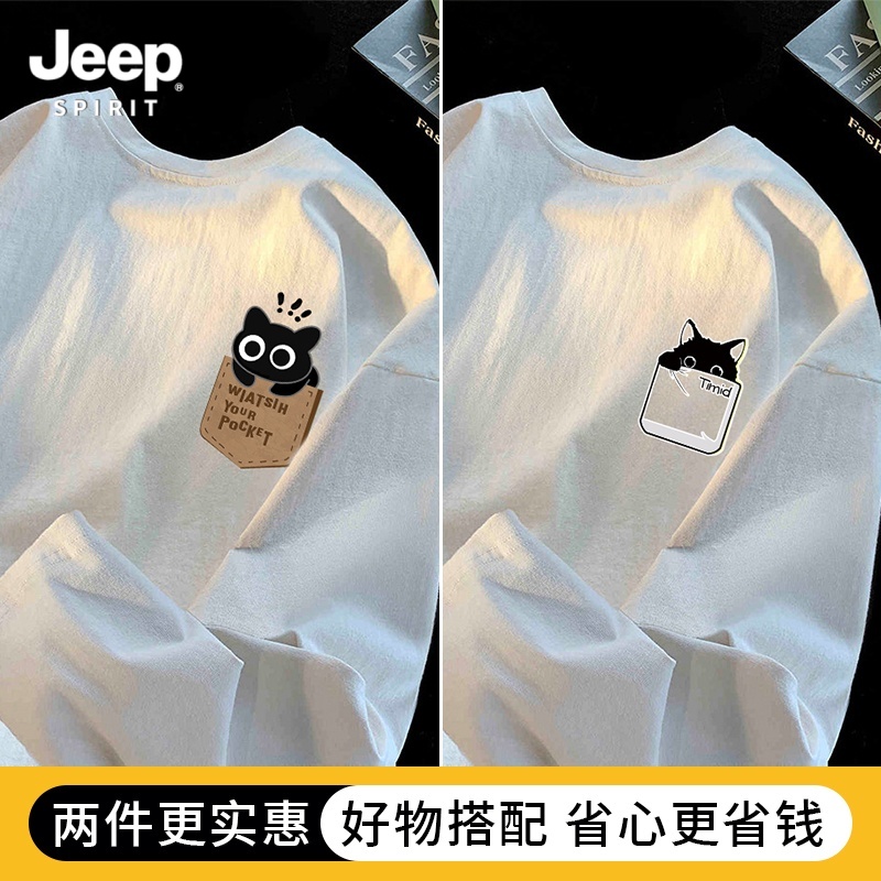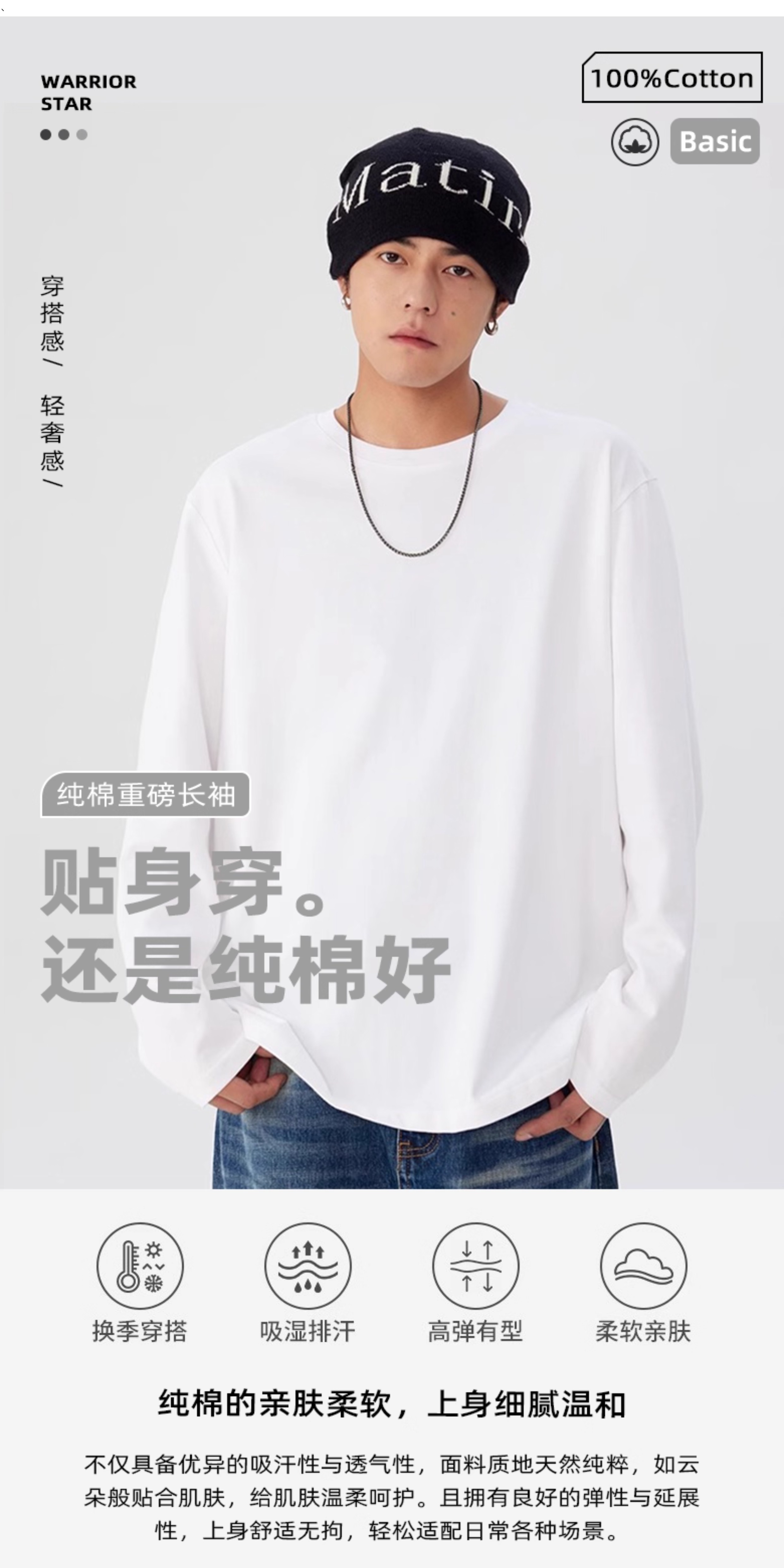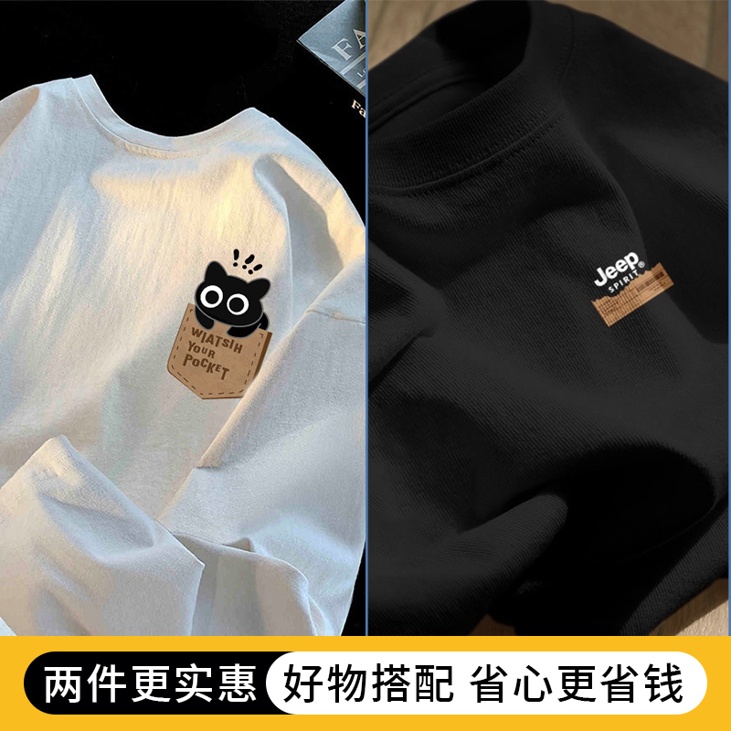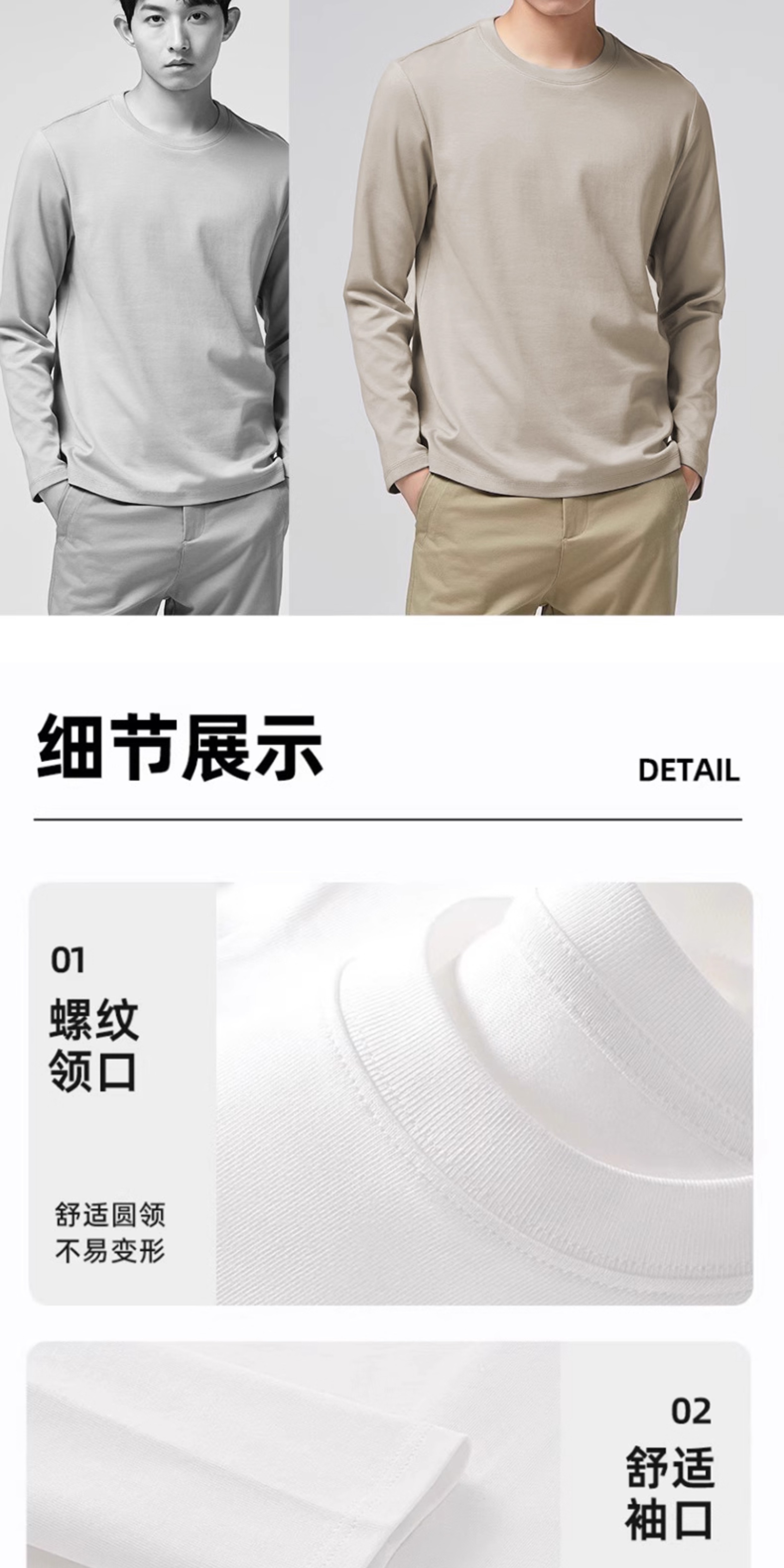 Jeep吉普纯棉男士长袖t恤男2025新款秋季上衣男生白色打底衫男装