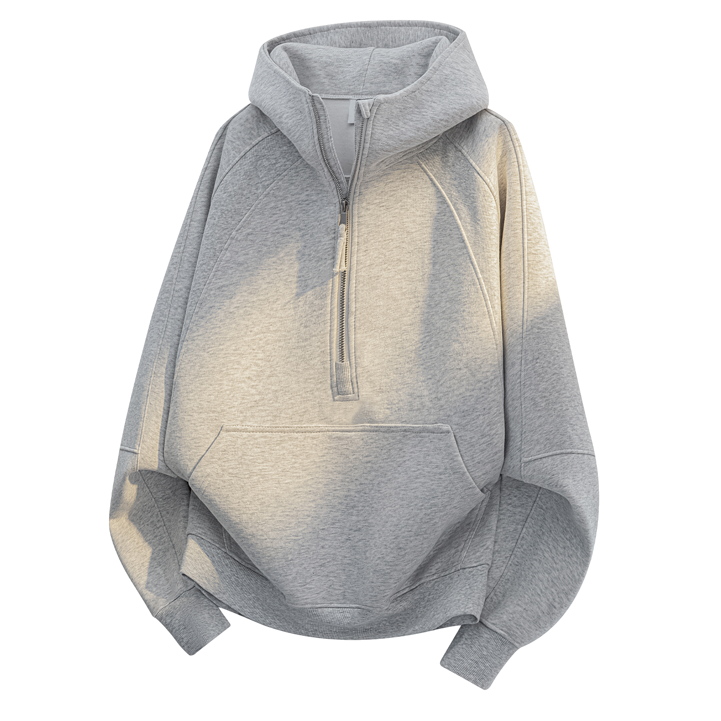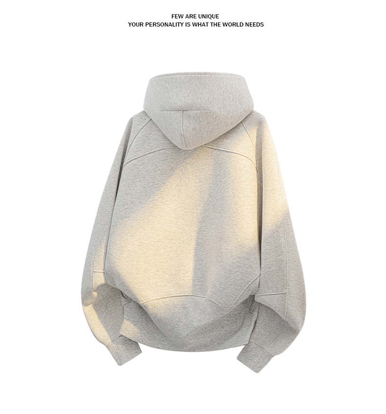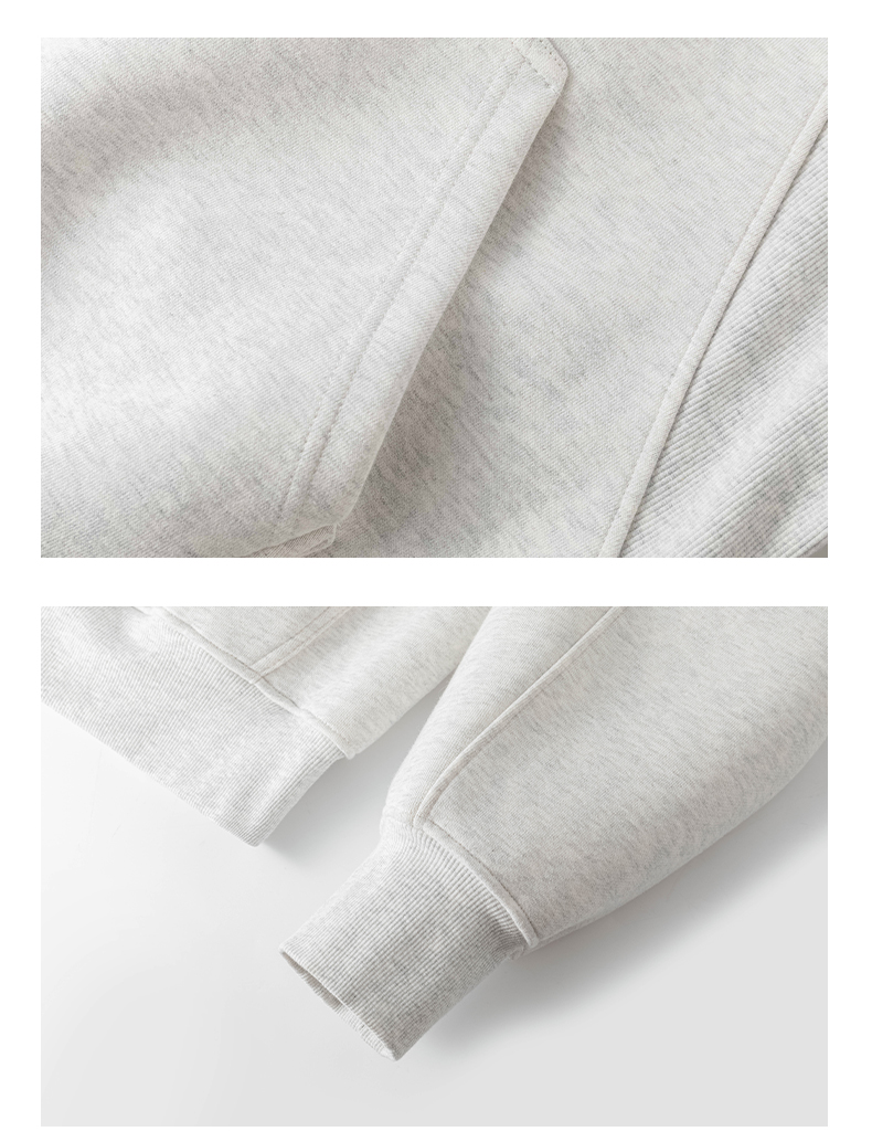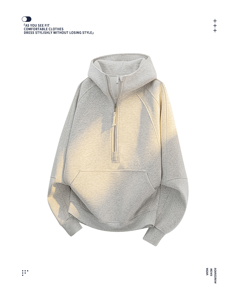 拉夏贝尔重磅半拉链连帽卫衣外套男女秋冬新款廓形简约高级感夹克