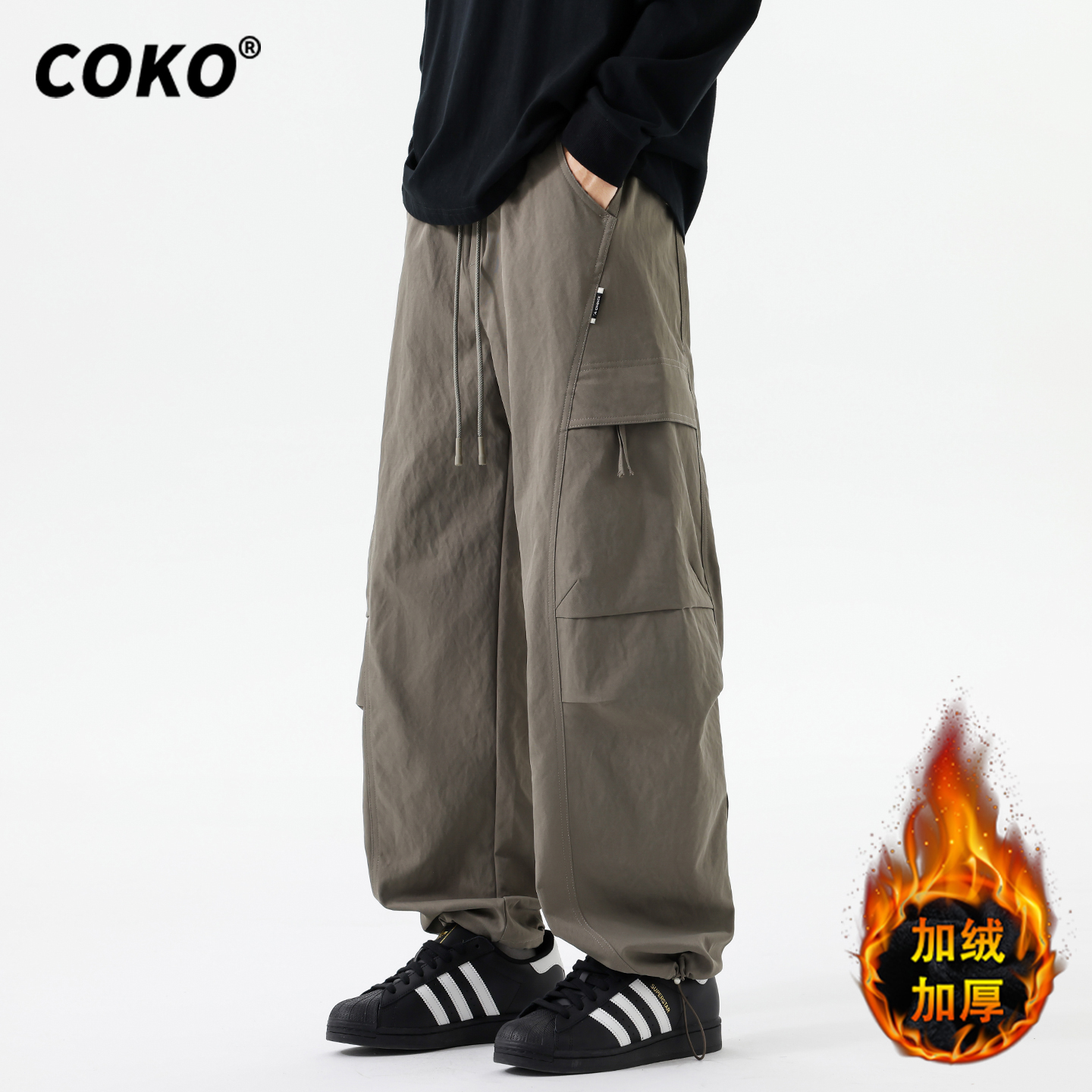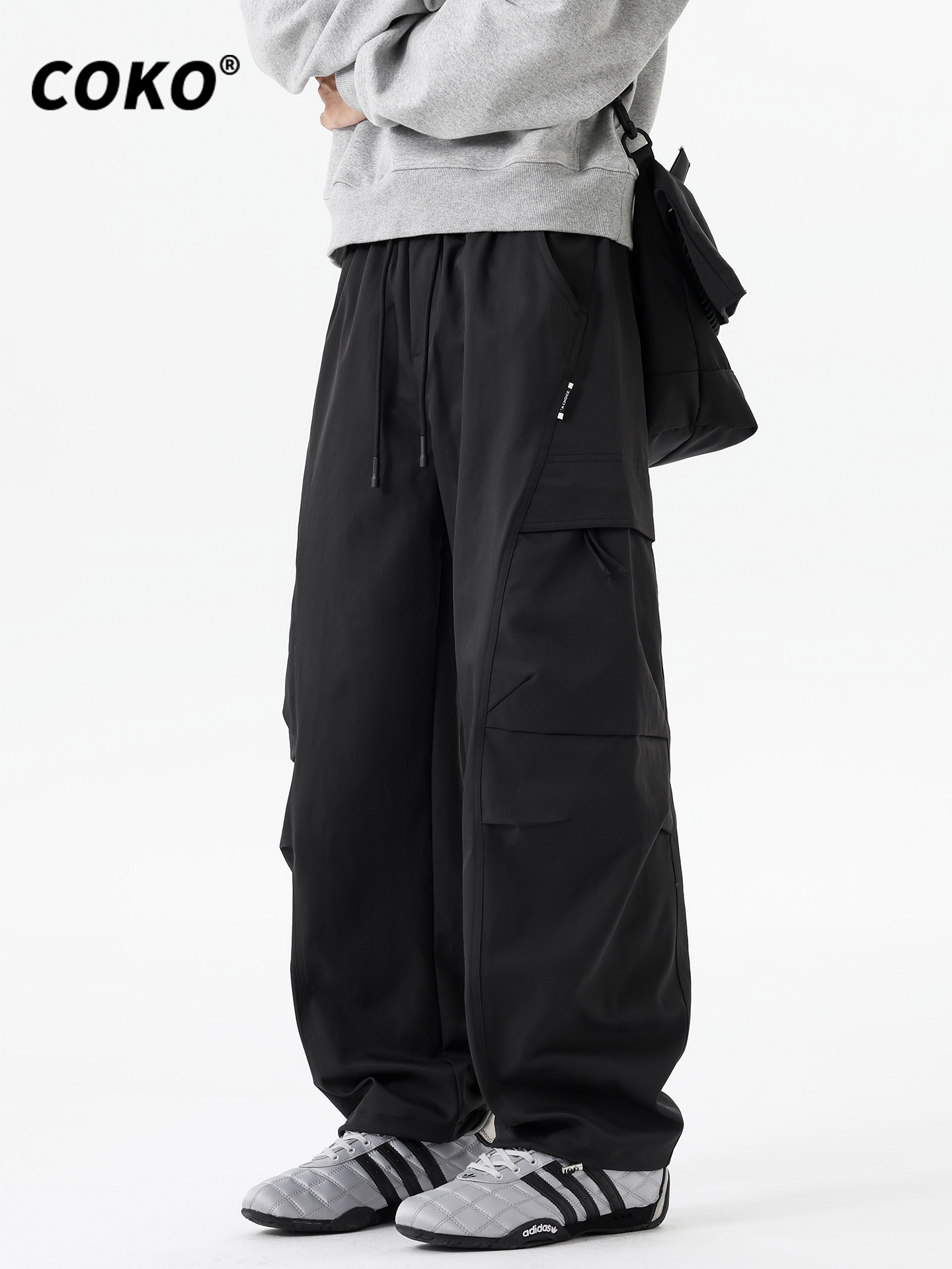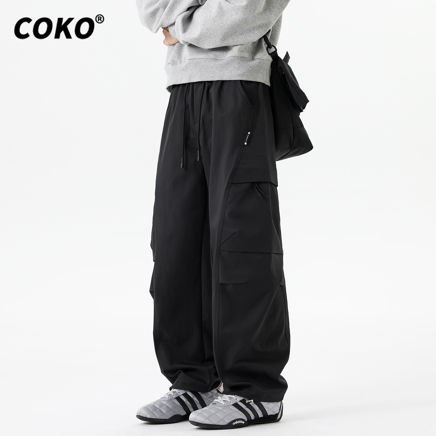 COKO美式复古弯刀裤子工装裤男宽松直筒2025秋冬季潮牌休闲阔腿裤