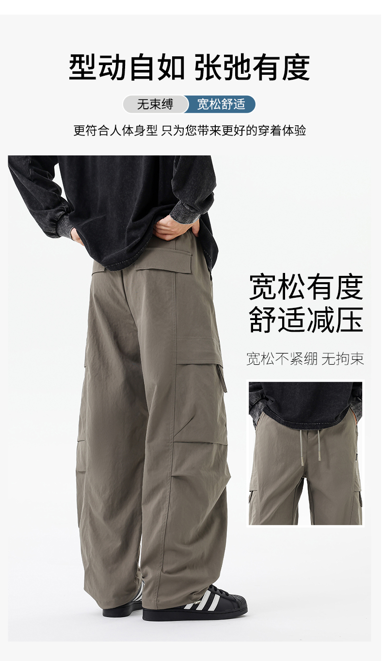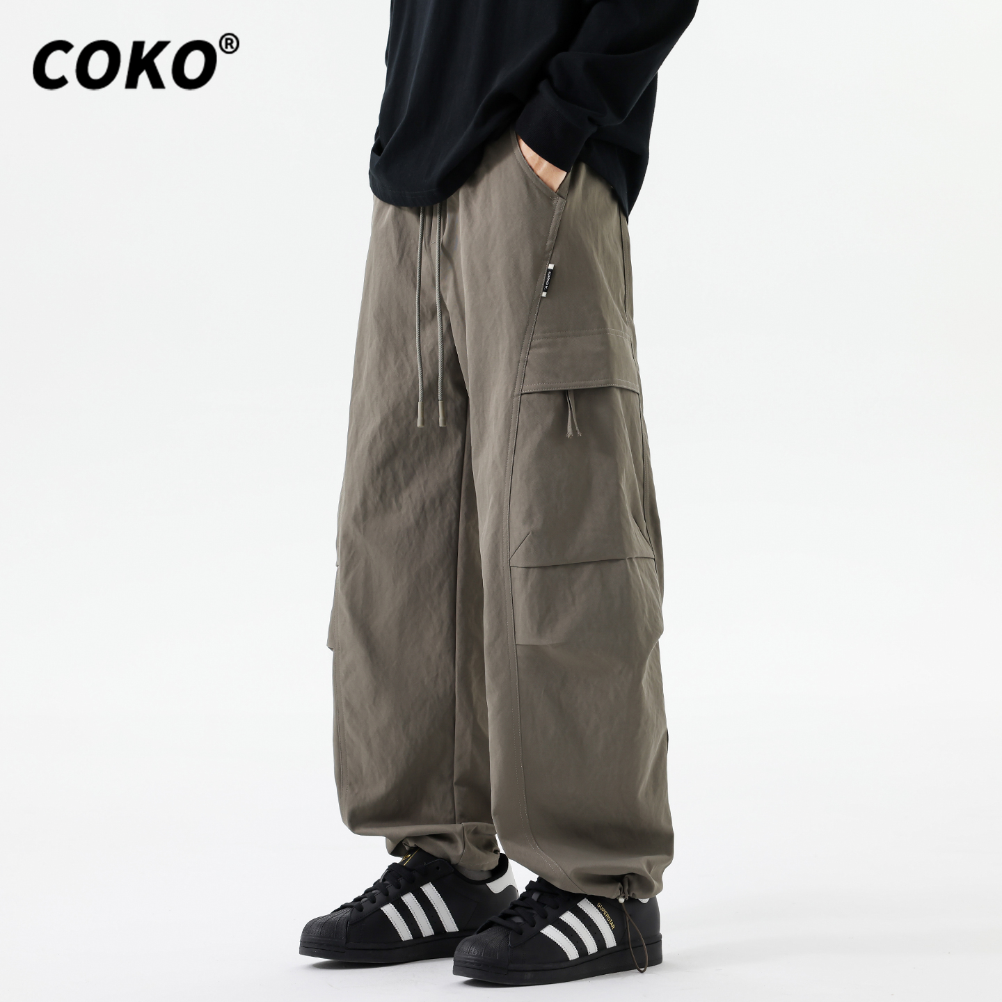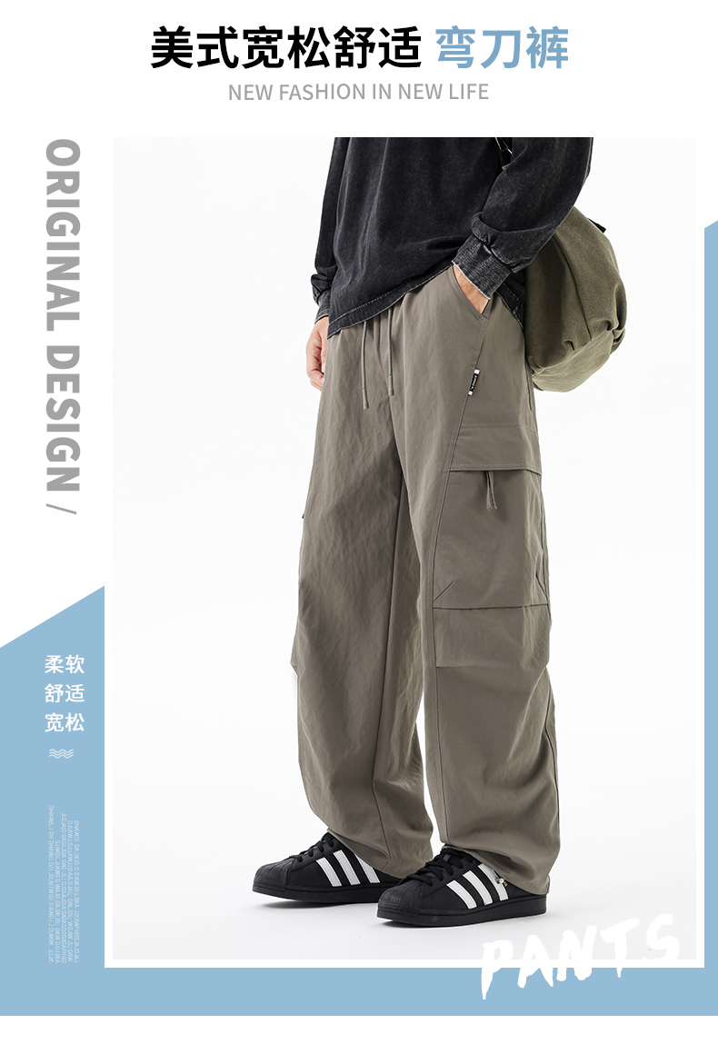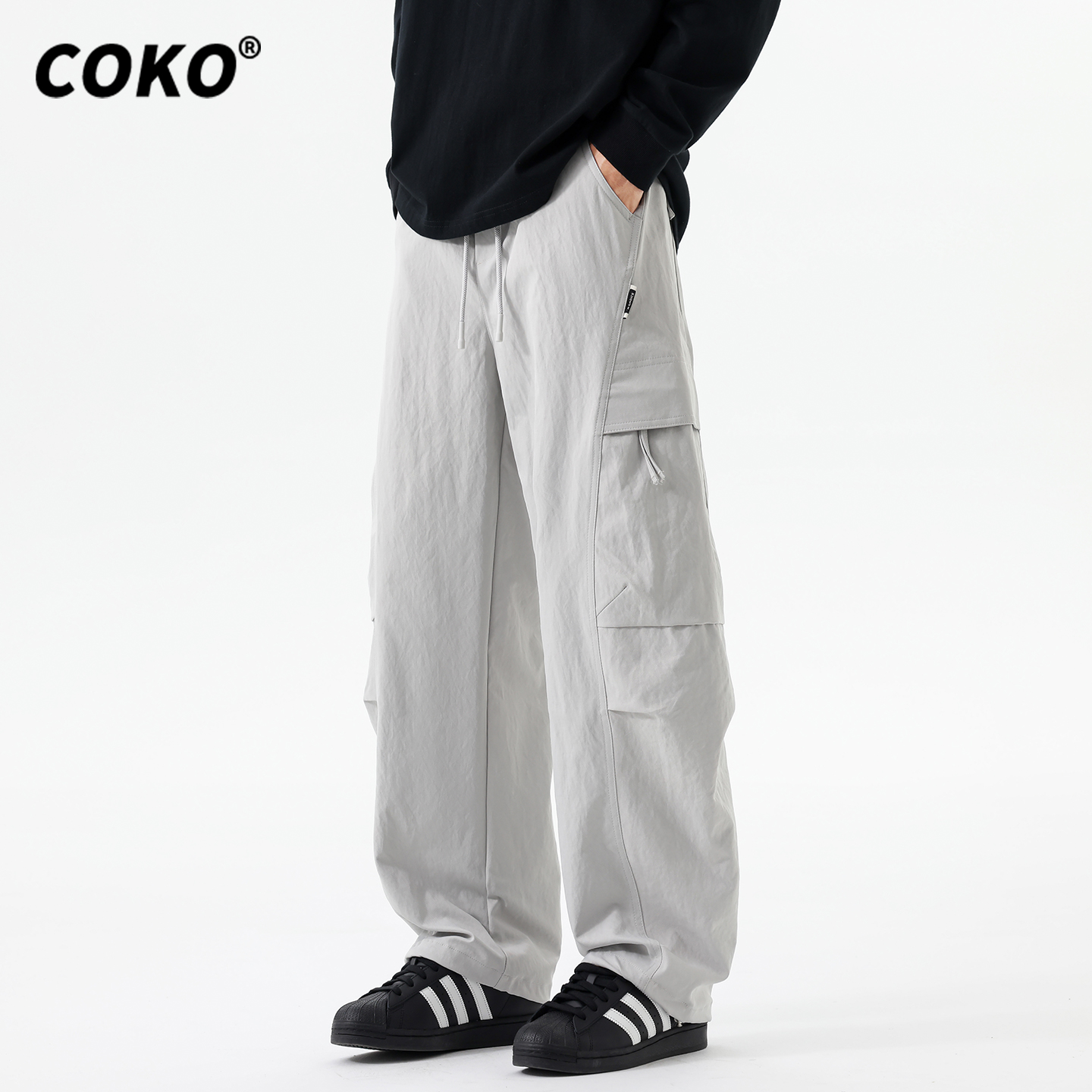 COKO美式复古弯刀裤子工装裤男宽松直筒2025秋冬季潮牌休闲阔腿裤