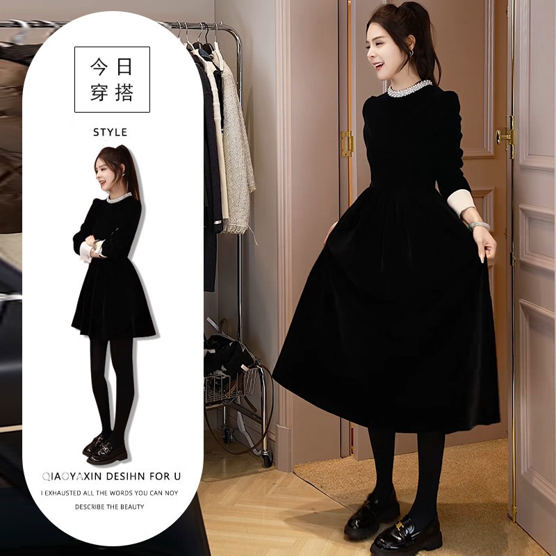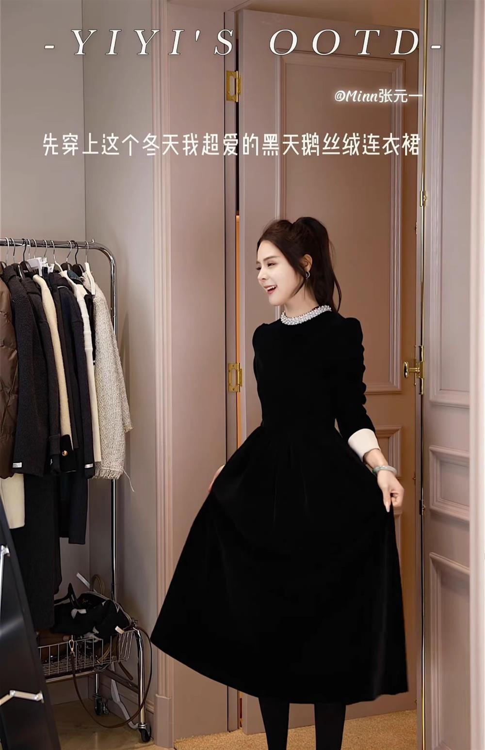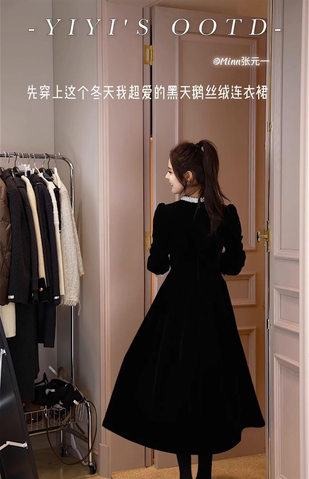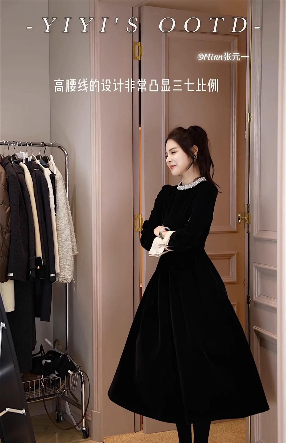 香港赫本风优雅超好看连衣裙2025春秋高级感礼服裙气质长裙小黑裙