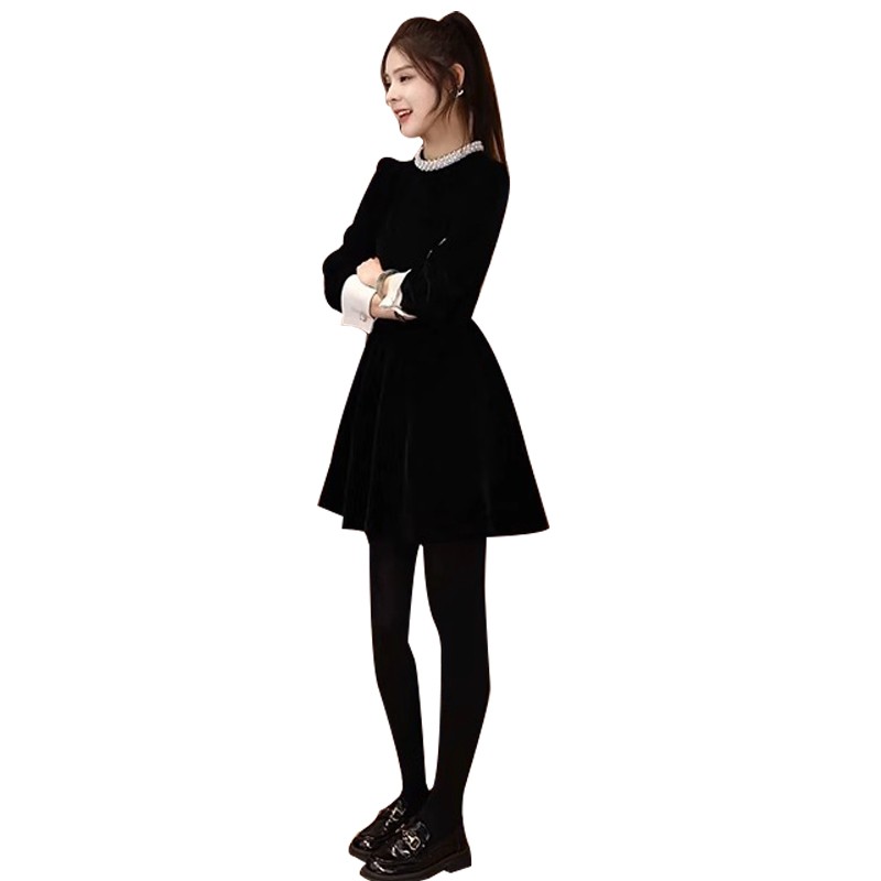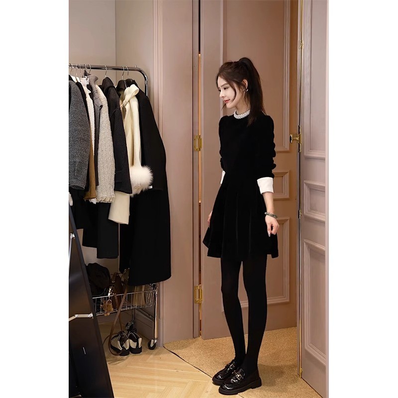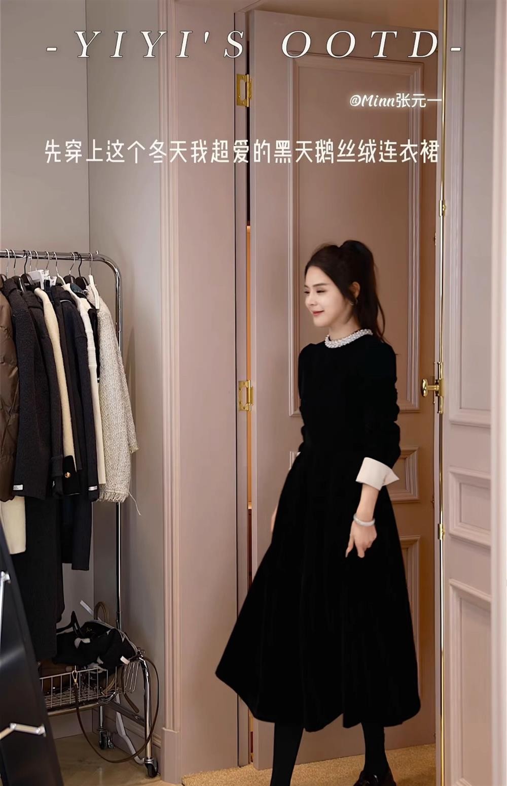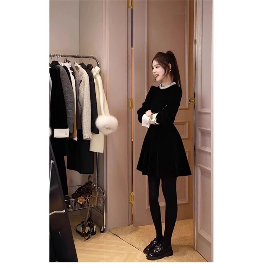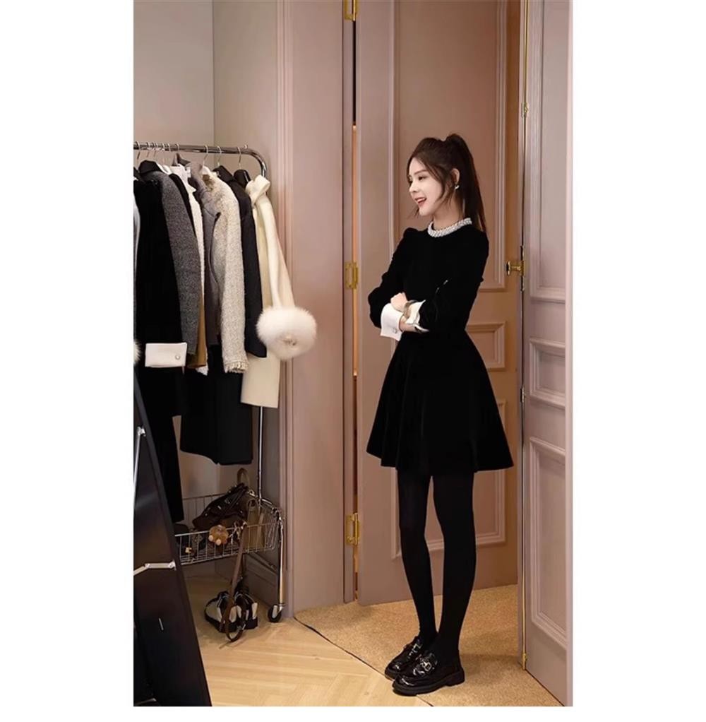 香港赫本风优雅超好看连衣裙2025春秋高级感礼服裙气质长裙小黑裙