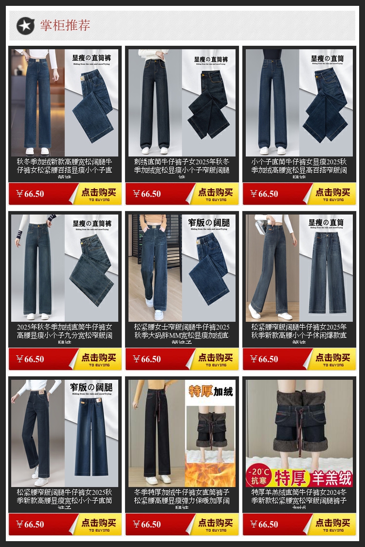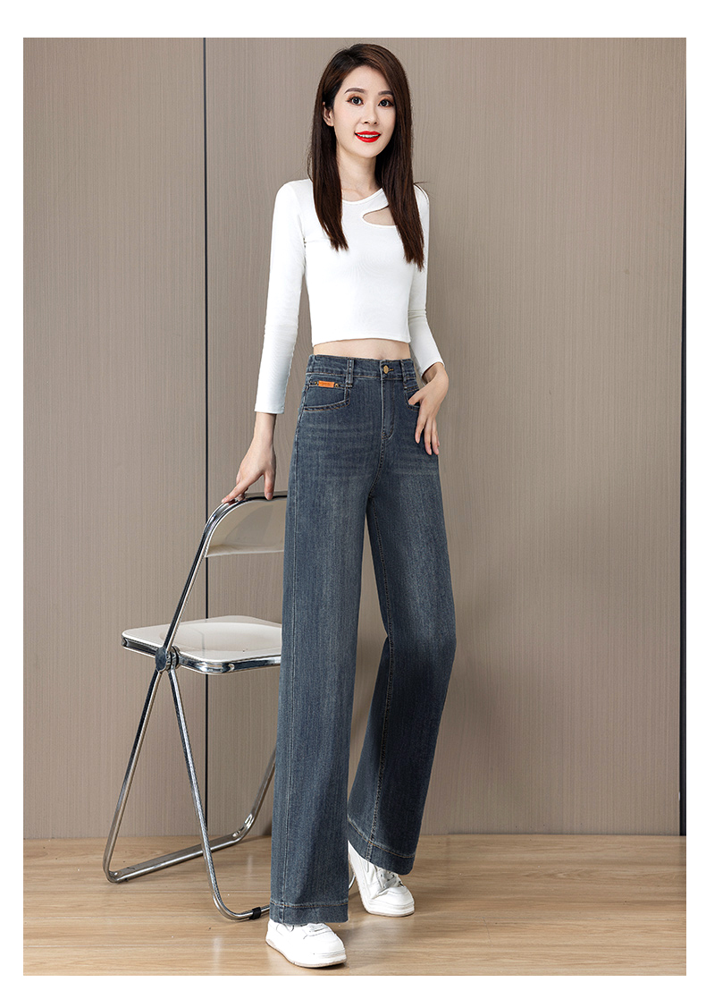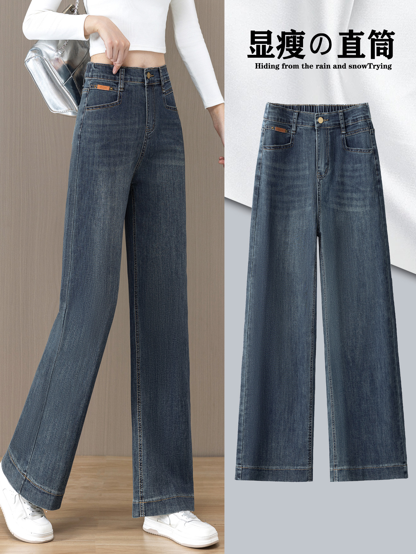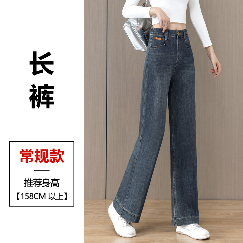 松紧腰窄版阔腿牛仔裤女2025年秋季新款高腰小个子爆款直筒裤加绒