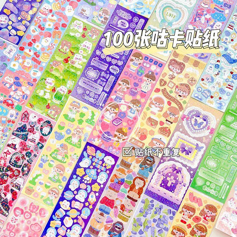 镭射咕卡贴纸500张便宜女孩儿童贴画纸手帐随心配古卡大套装diy