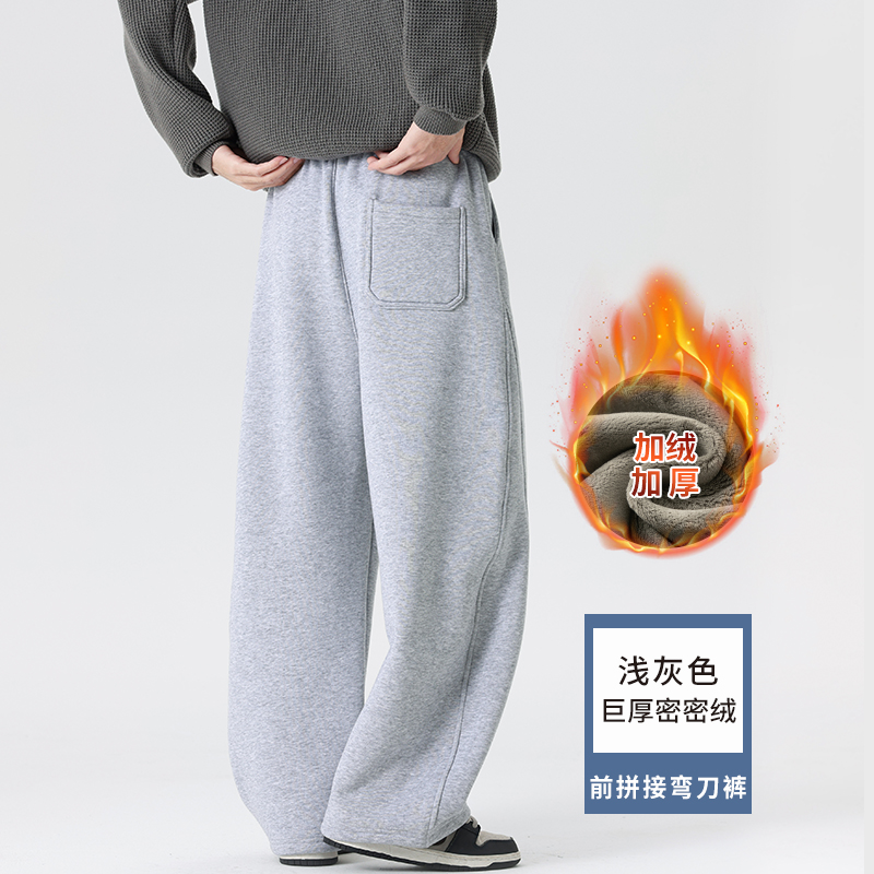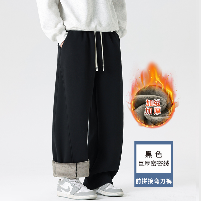 弯刀裤子男款秋冬直筒裤宽松休闲裤男士加绒加厚新款冬季运动裤男