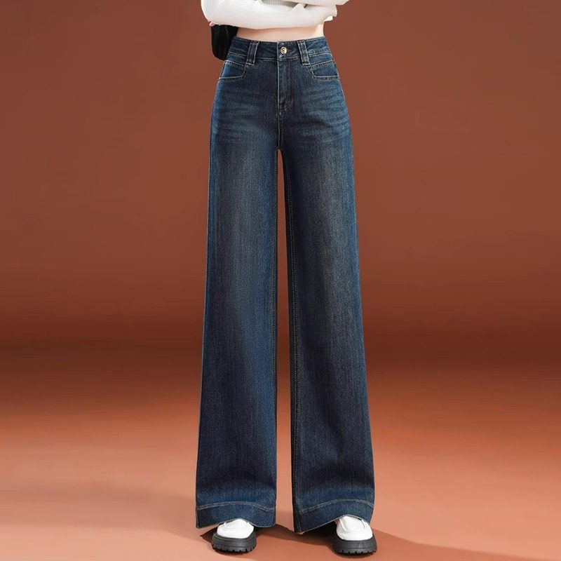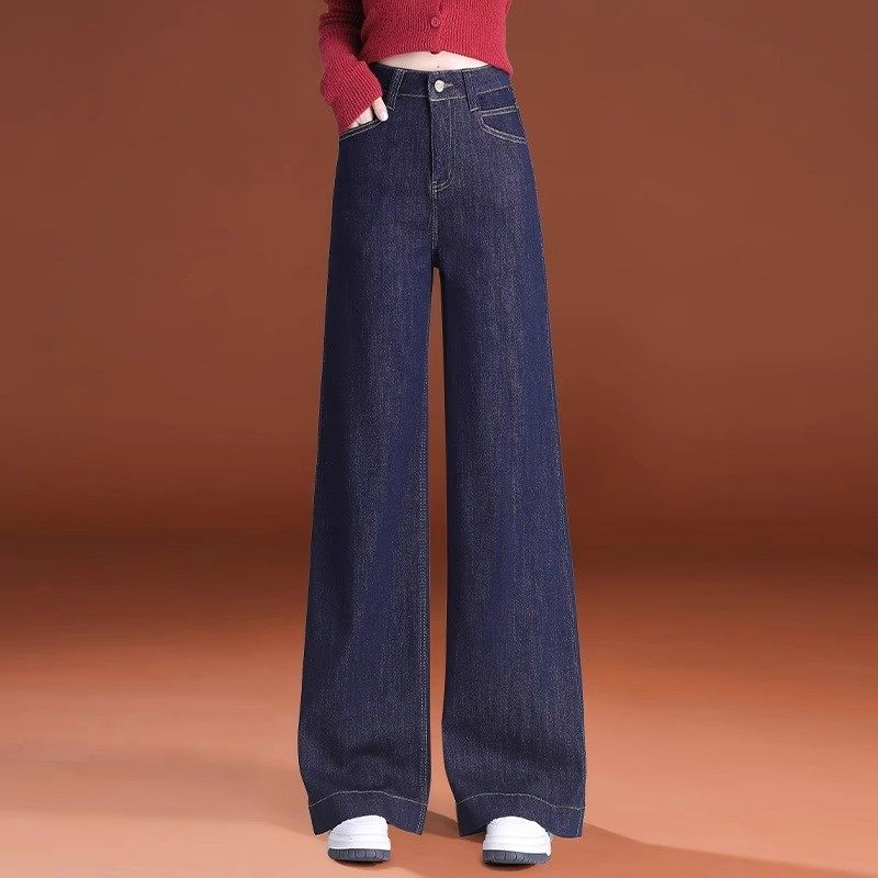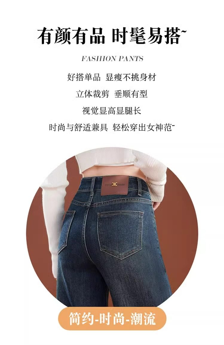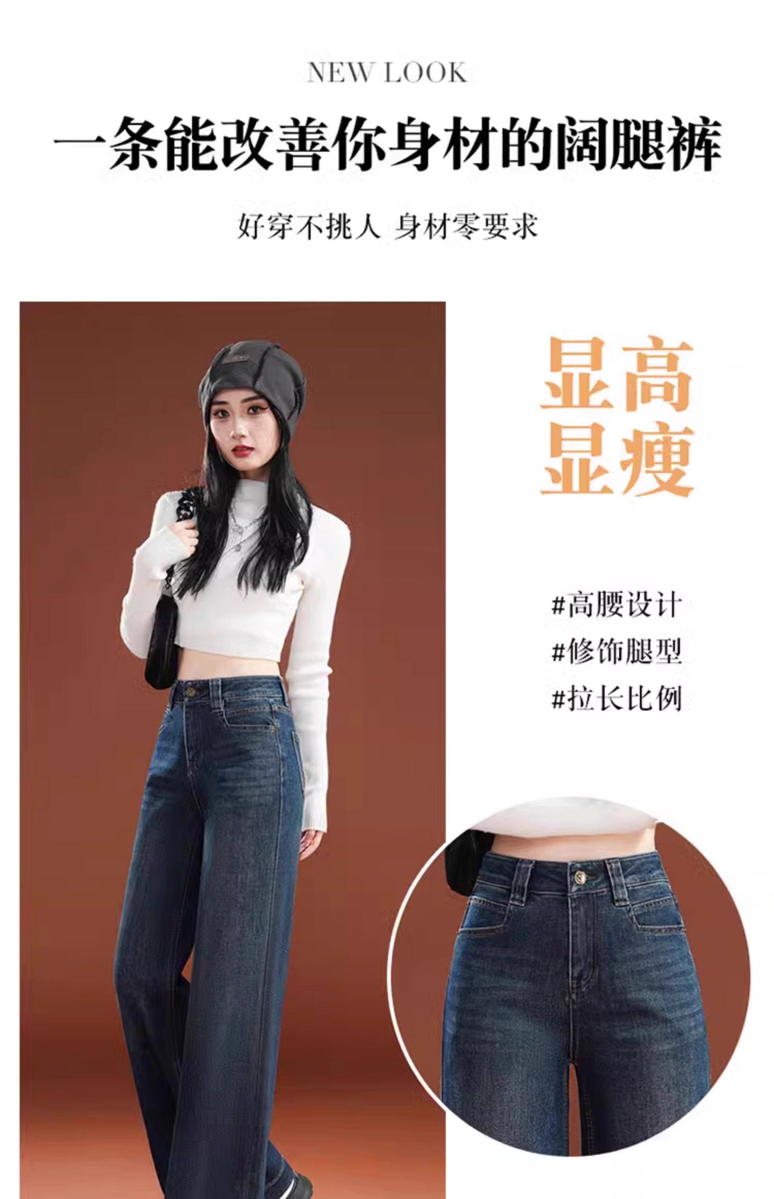 复古蓝牛仔阔腿裤2026年春秋新款高腰显瘦小个子九分窄版直筒裤子