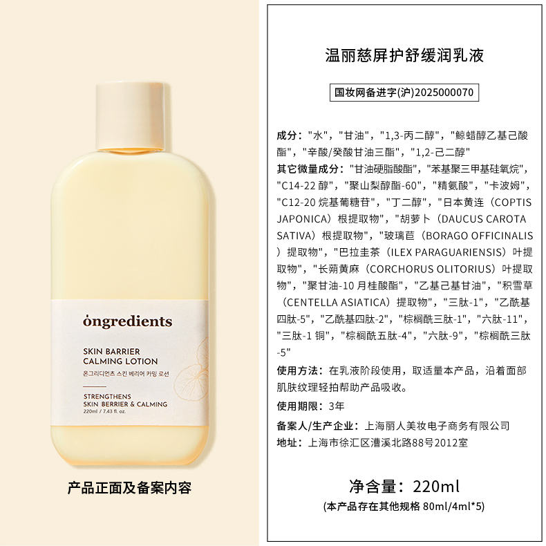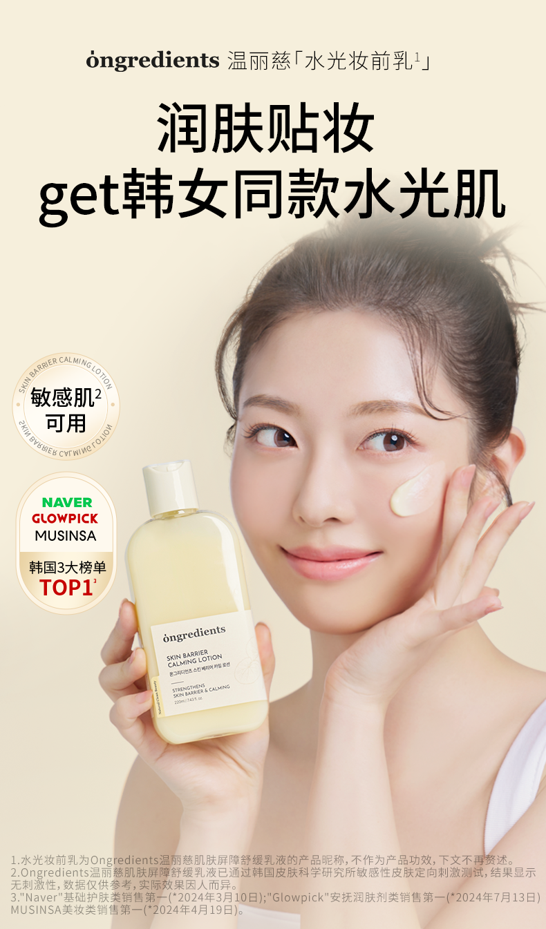 韩国ongredients温丽慈水光妆前乳液温和保湿舒缓修护敏感肌正品