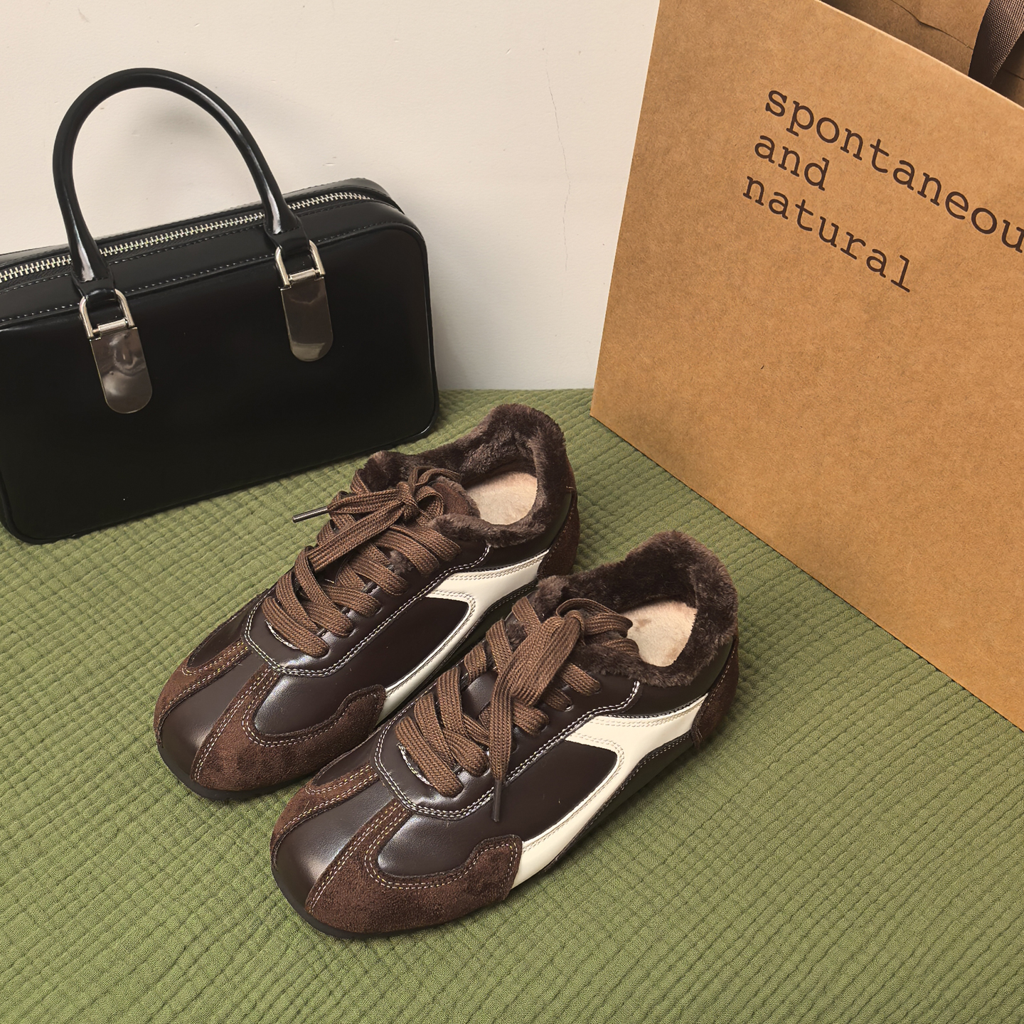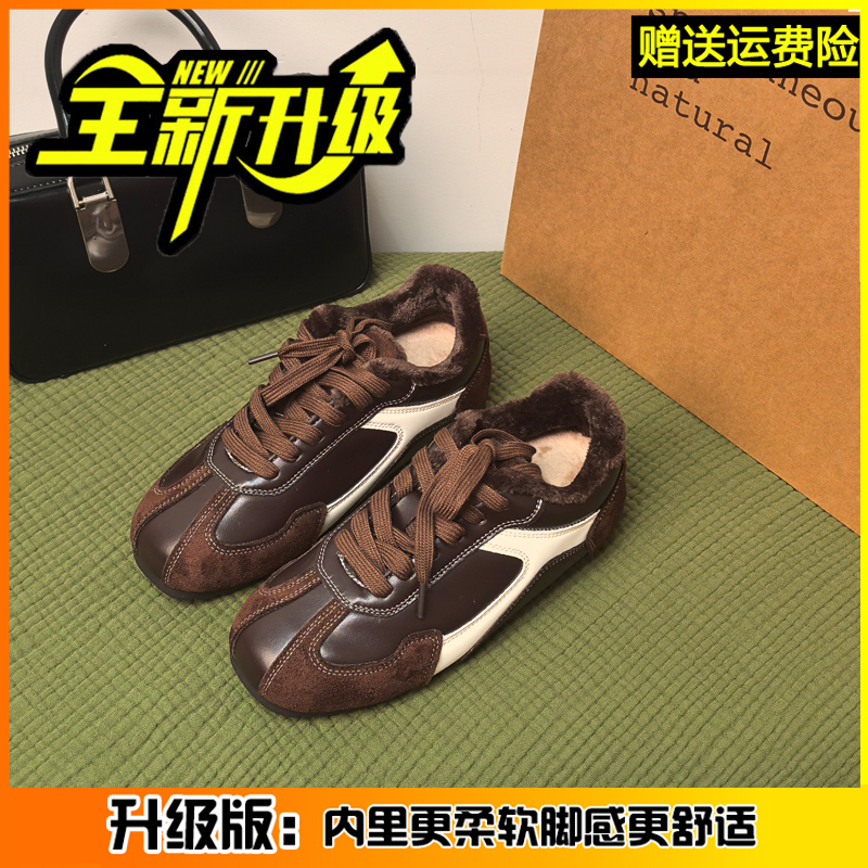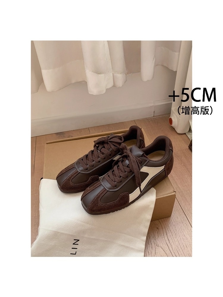 5CM内增高~真皮户外加绒保暖德训鞋女秋季复古轻便休闲运动阿甘鞋