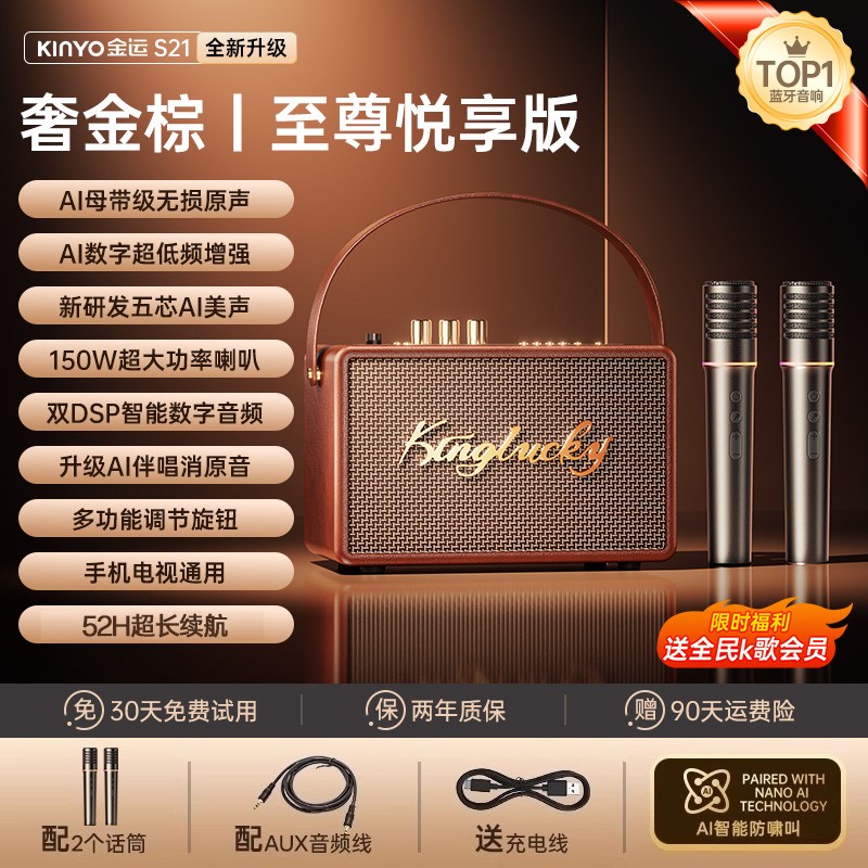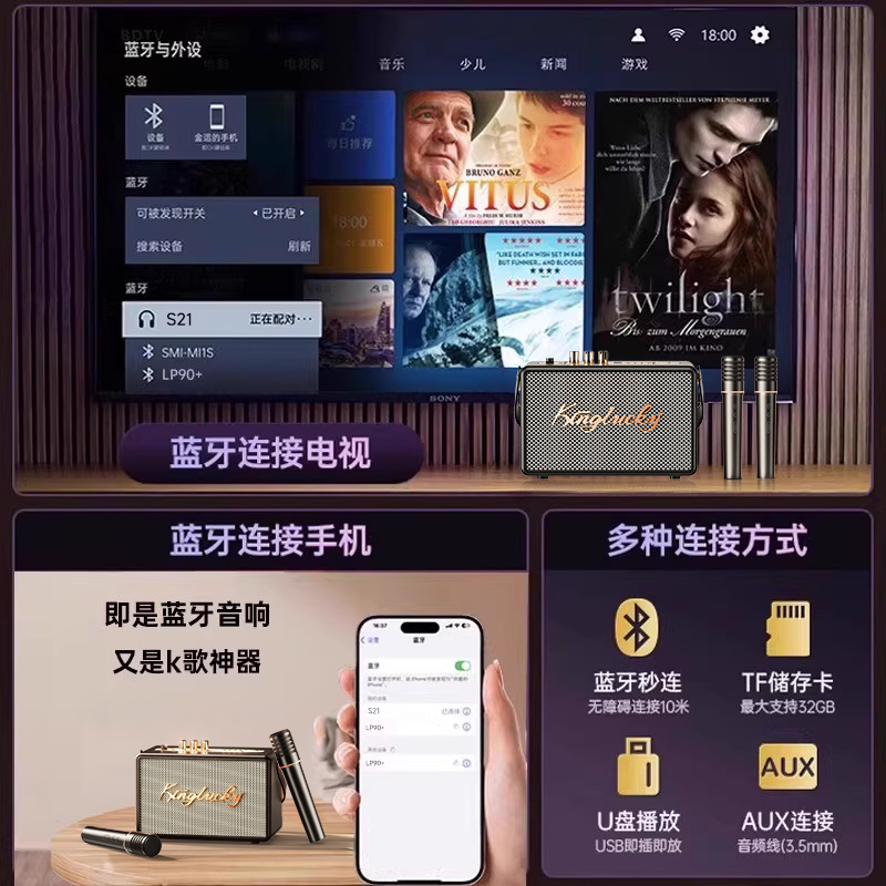 蓝牙音箱家用2025客厅环绕话筒音响一体机麦克风无线低音炮卡拉OK