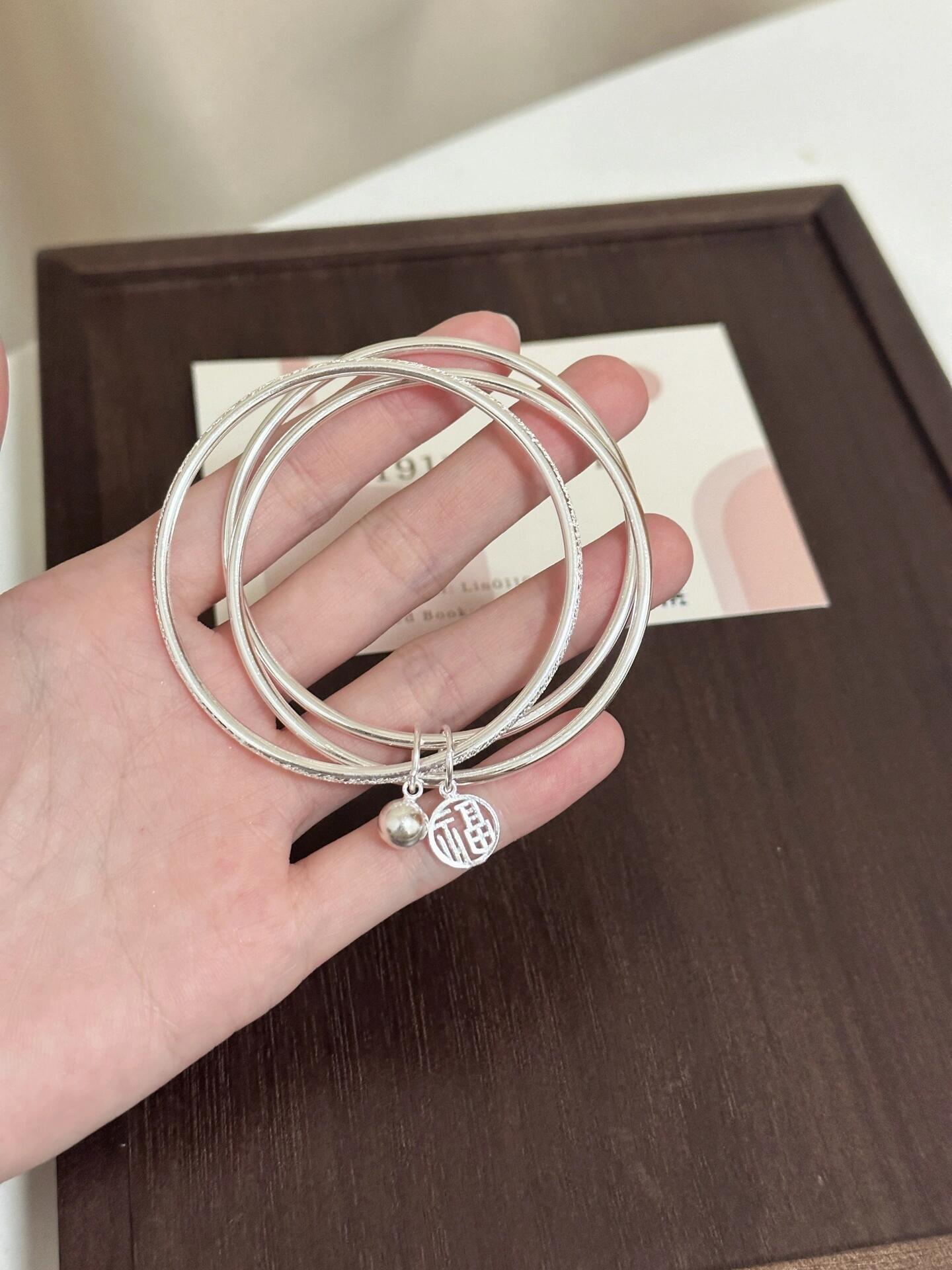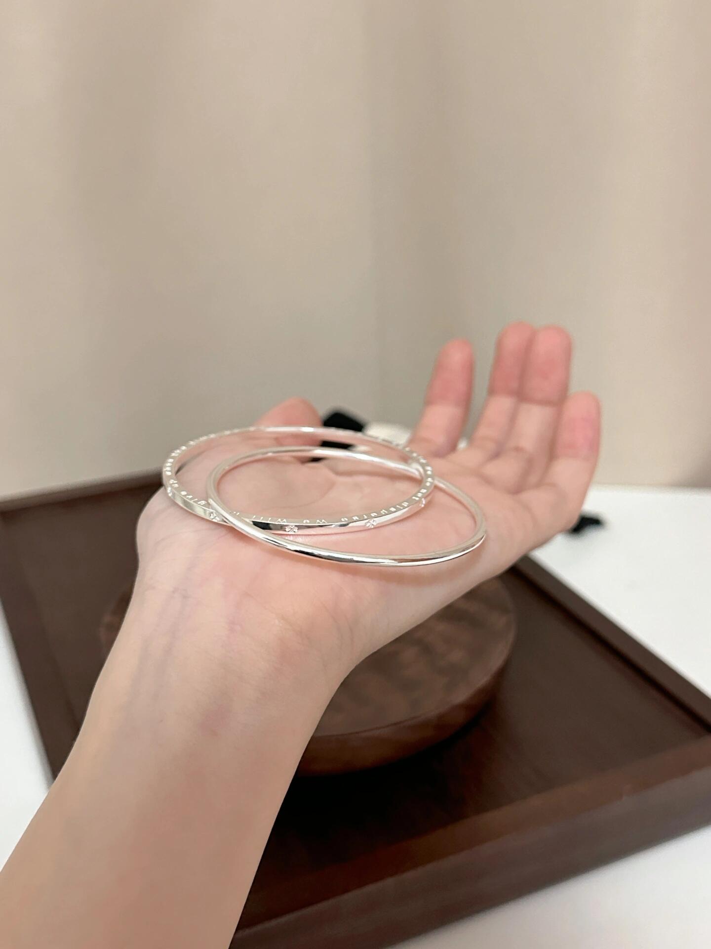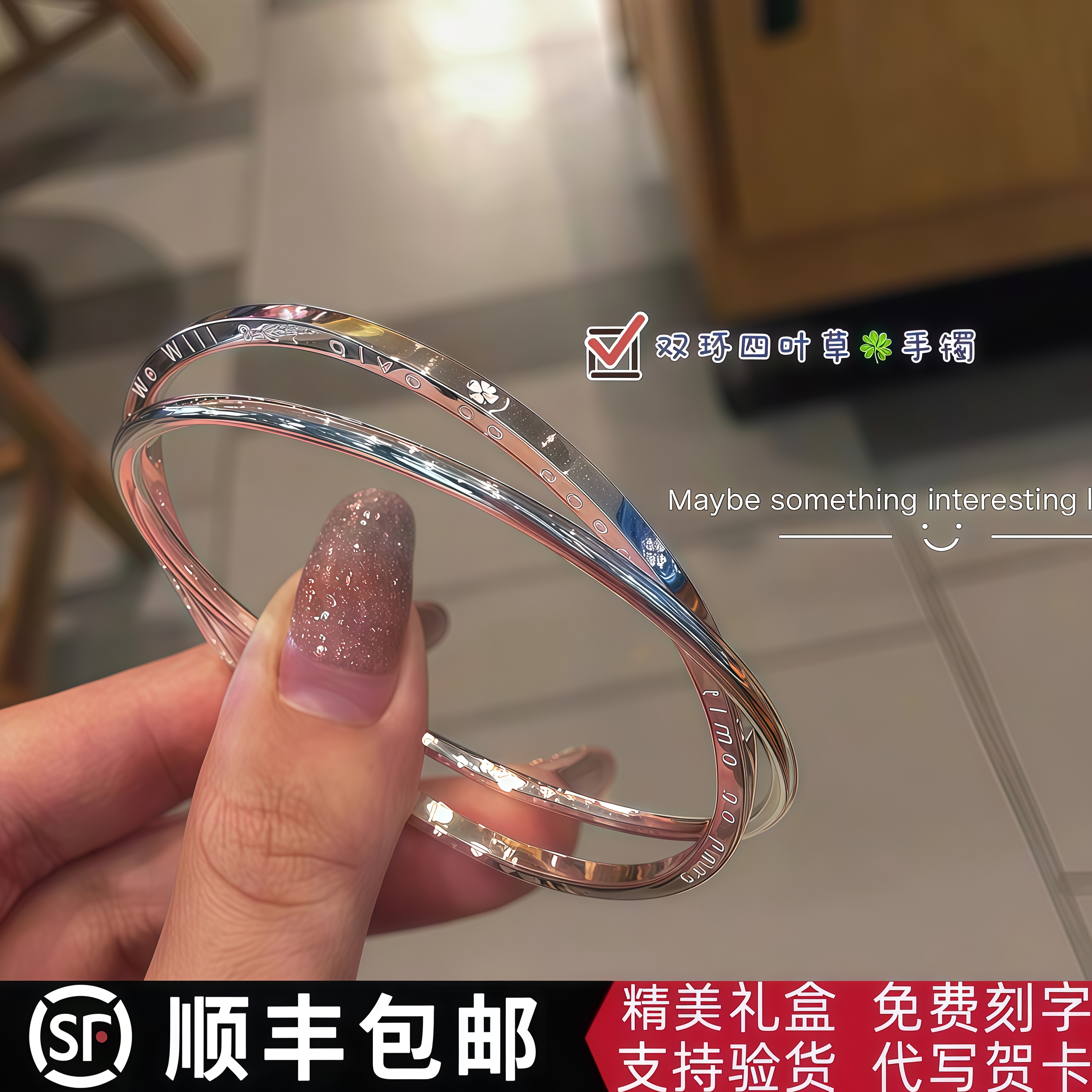 双环四叶草银手镯女足银999实心闭口手环轻奢送女友闺蜜生日礼物