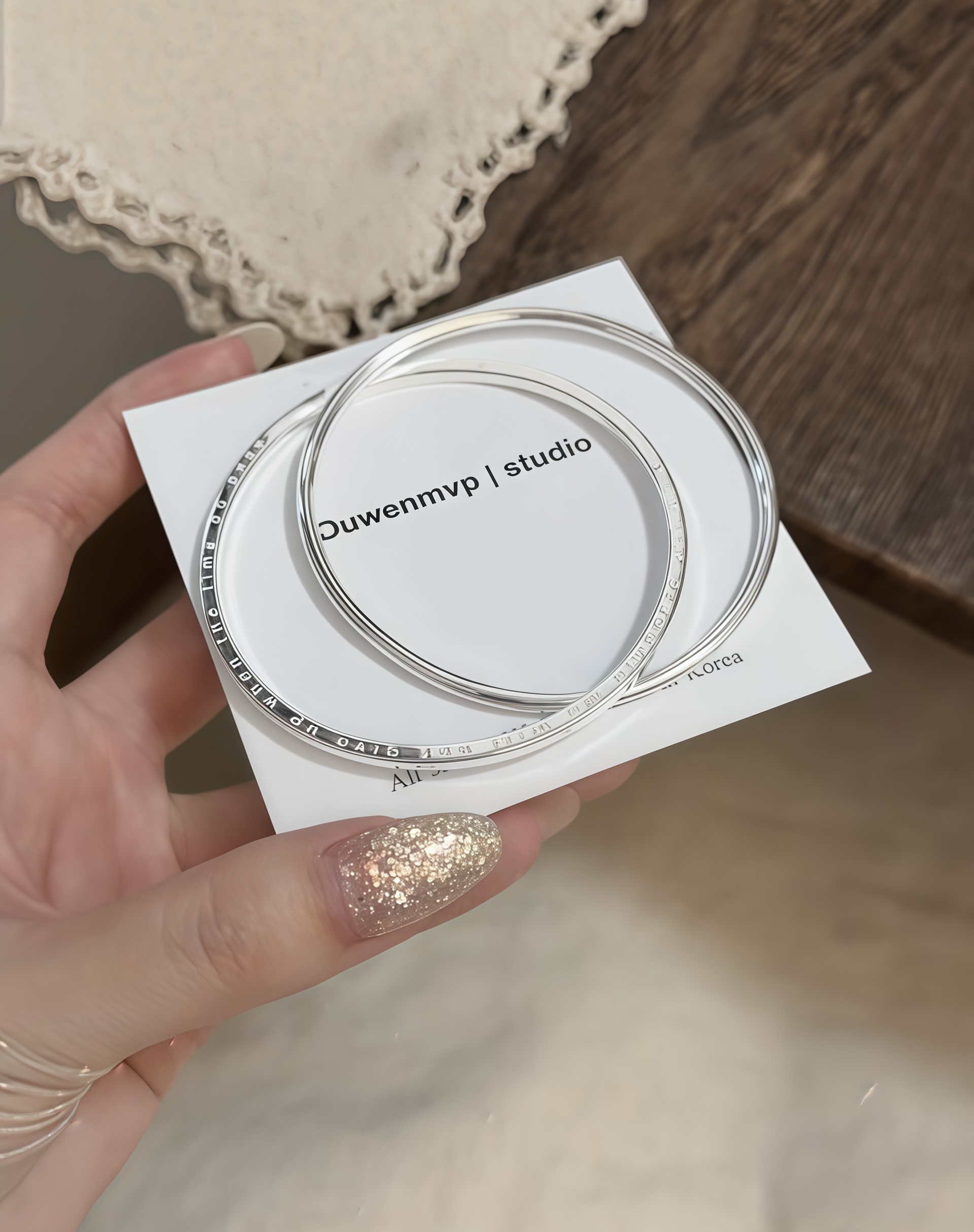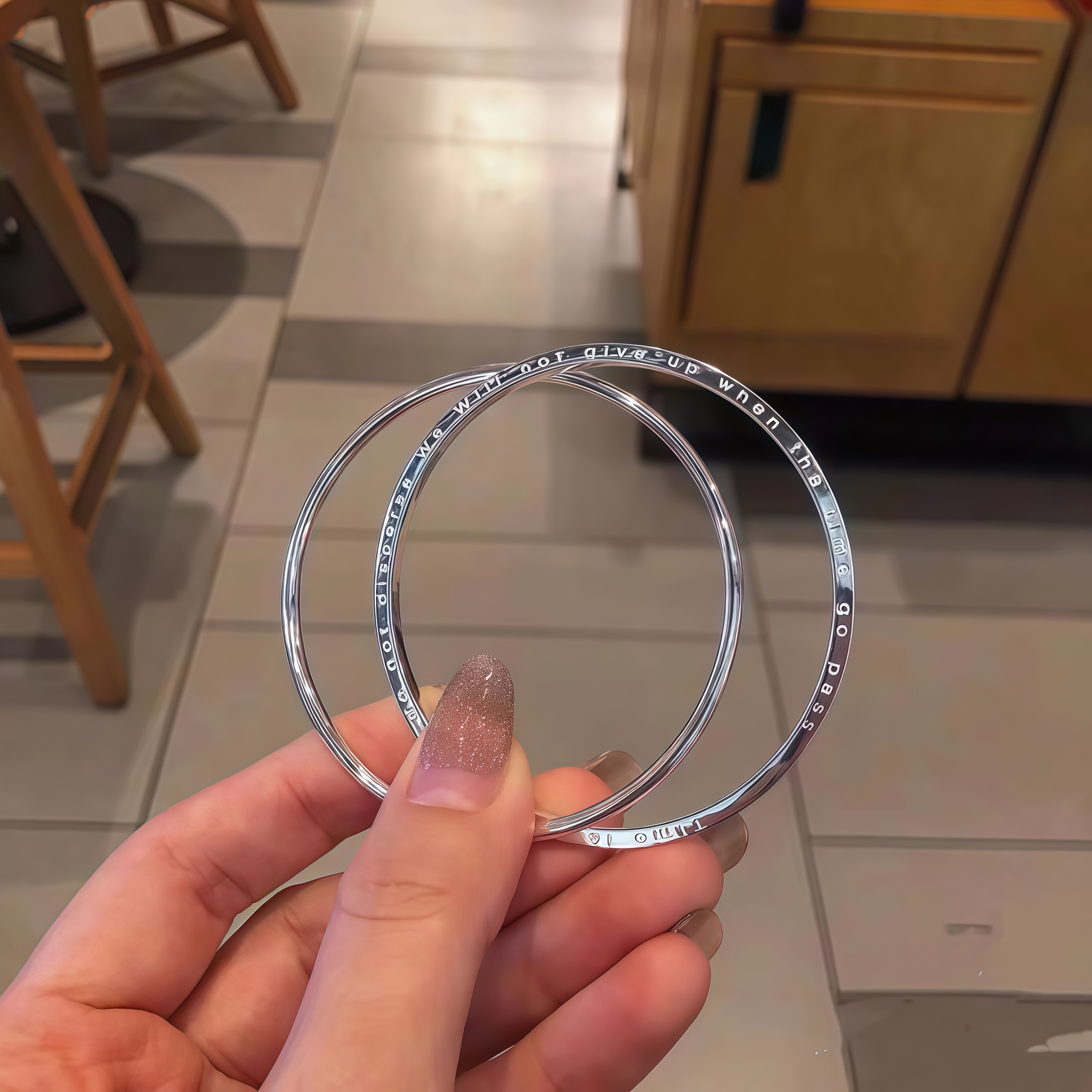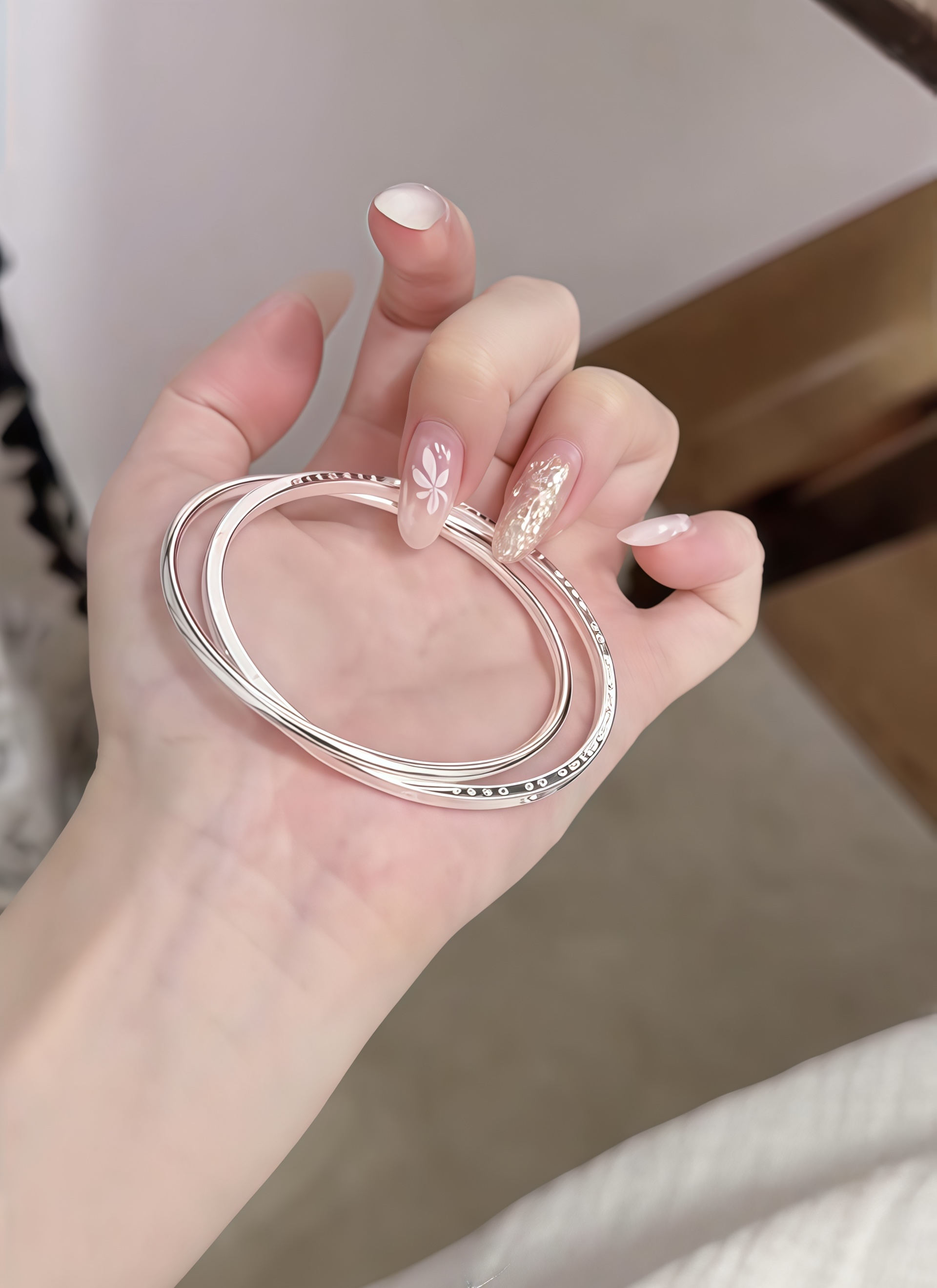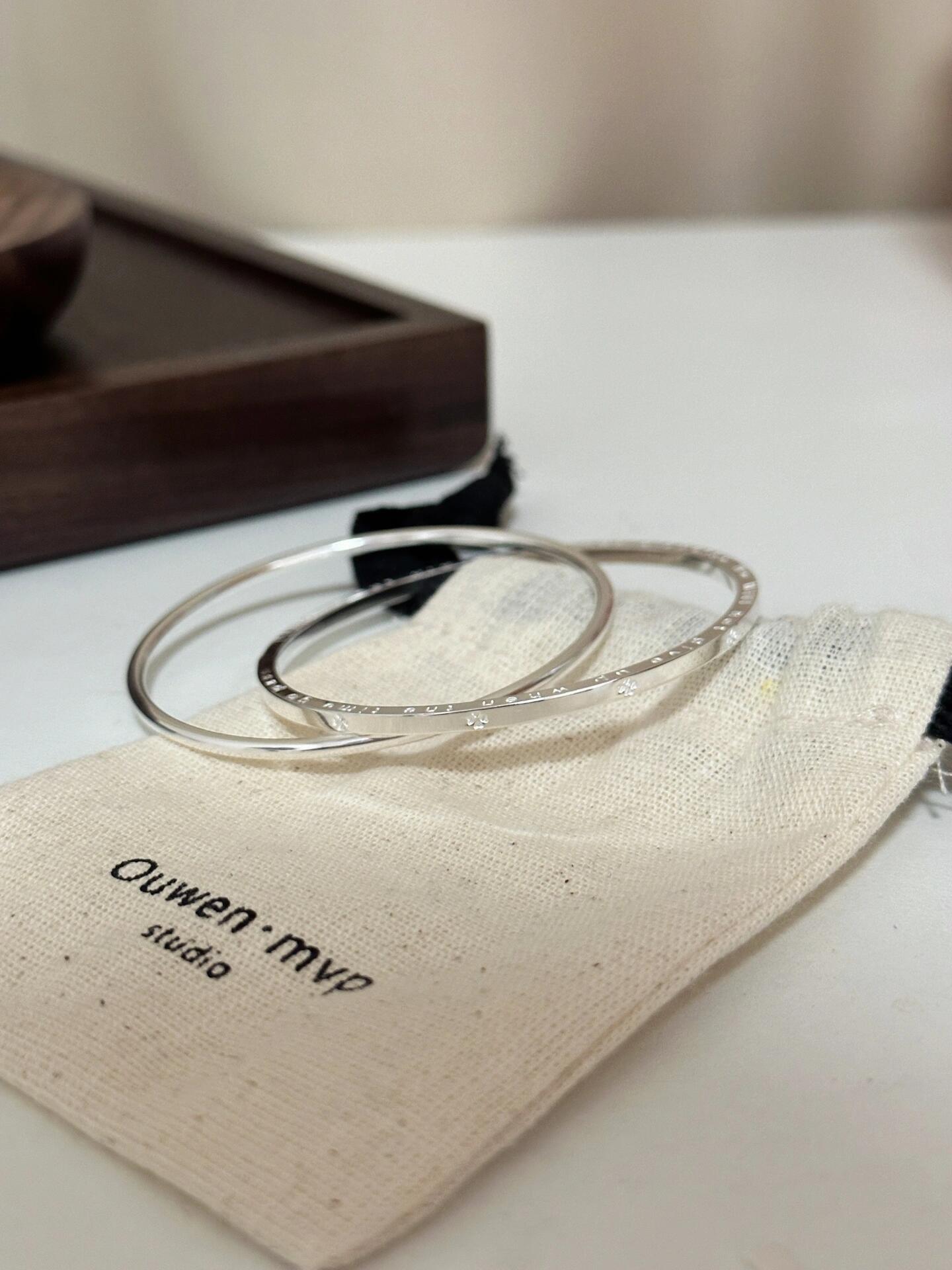 双环四叶草银手镯女足银999实心闭口手环轻奢送女友闺蜜生日礼物