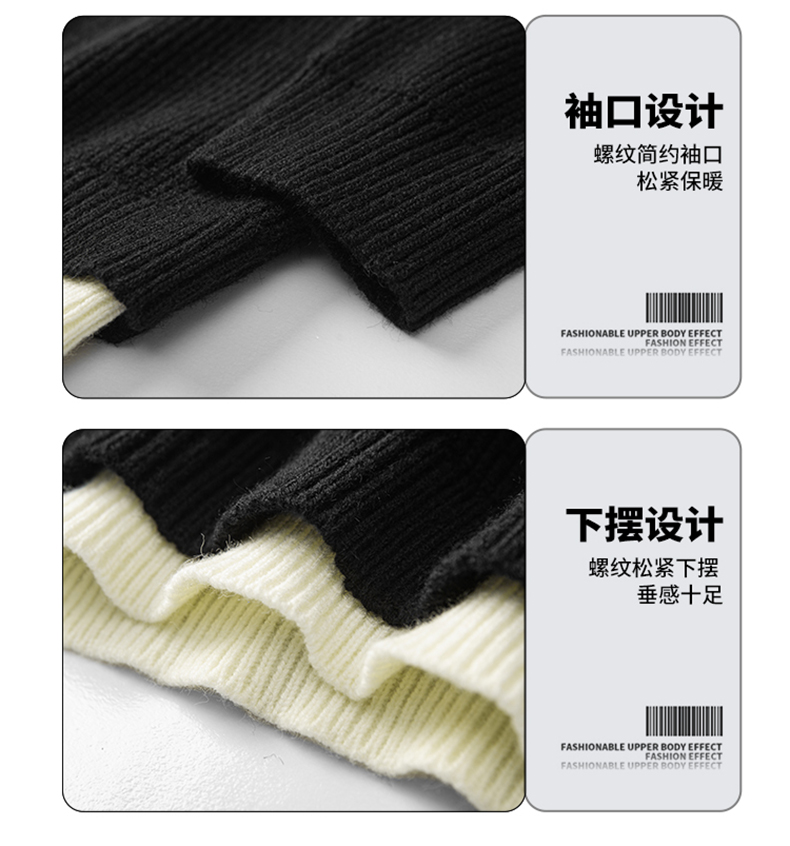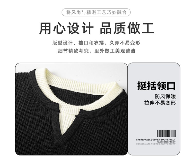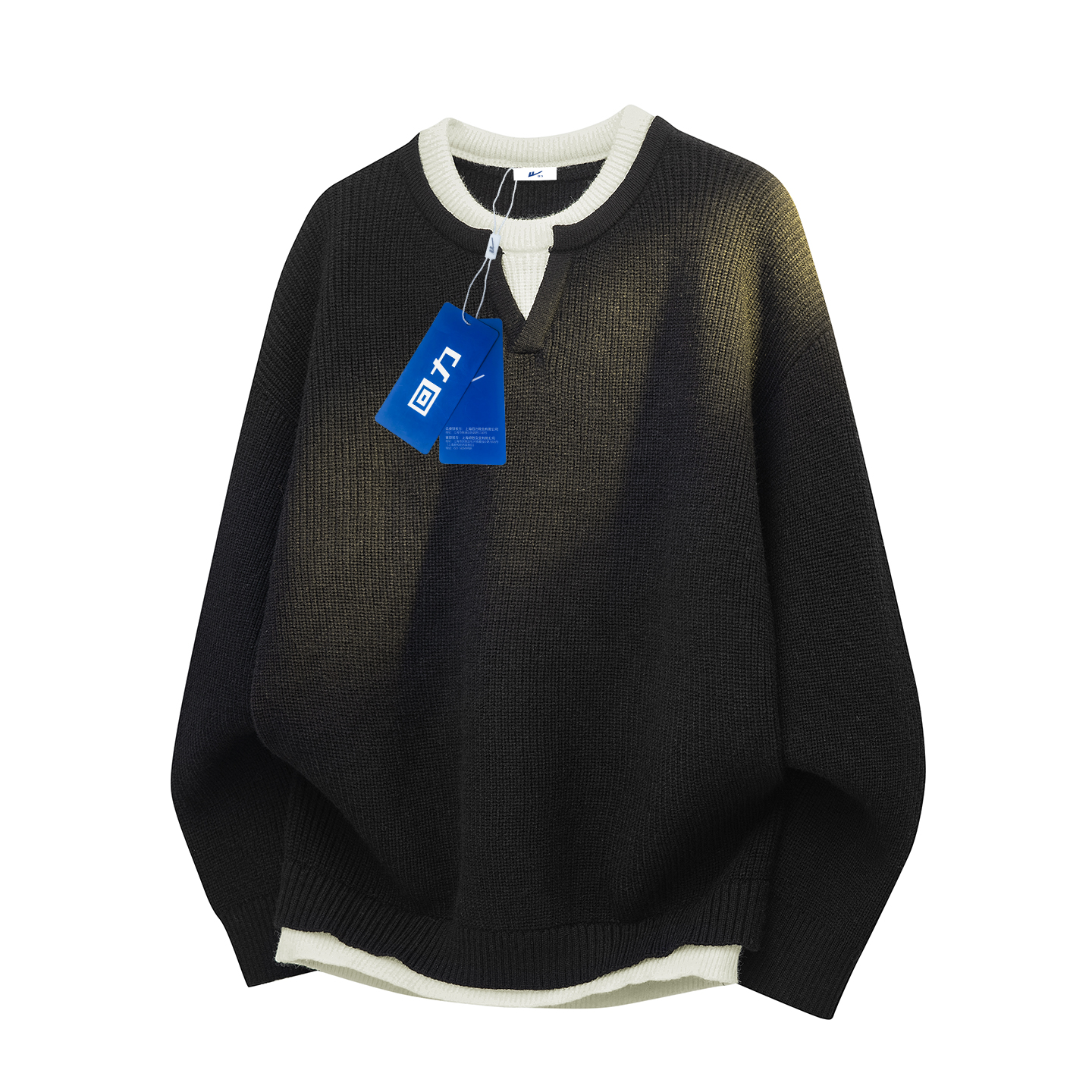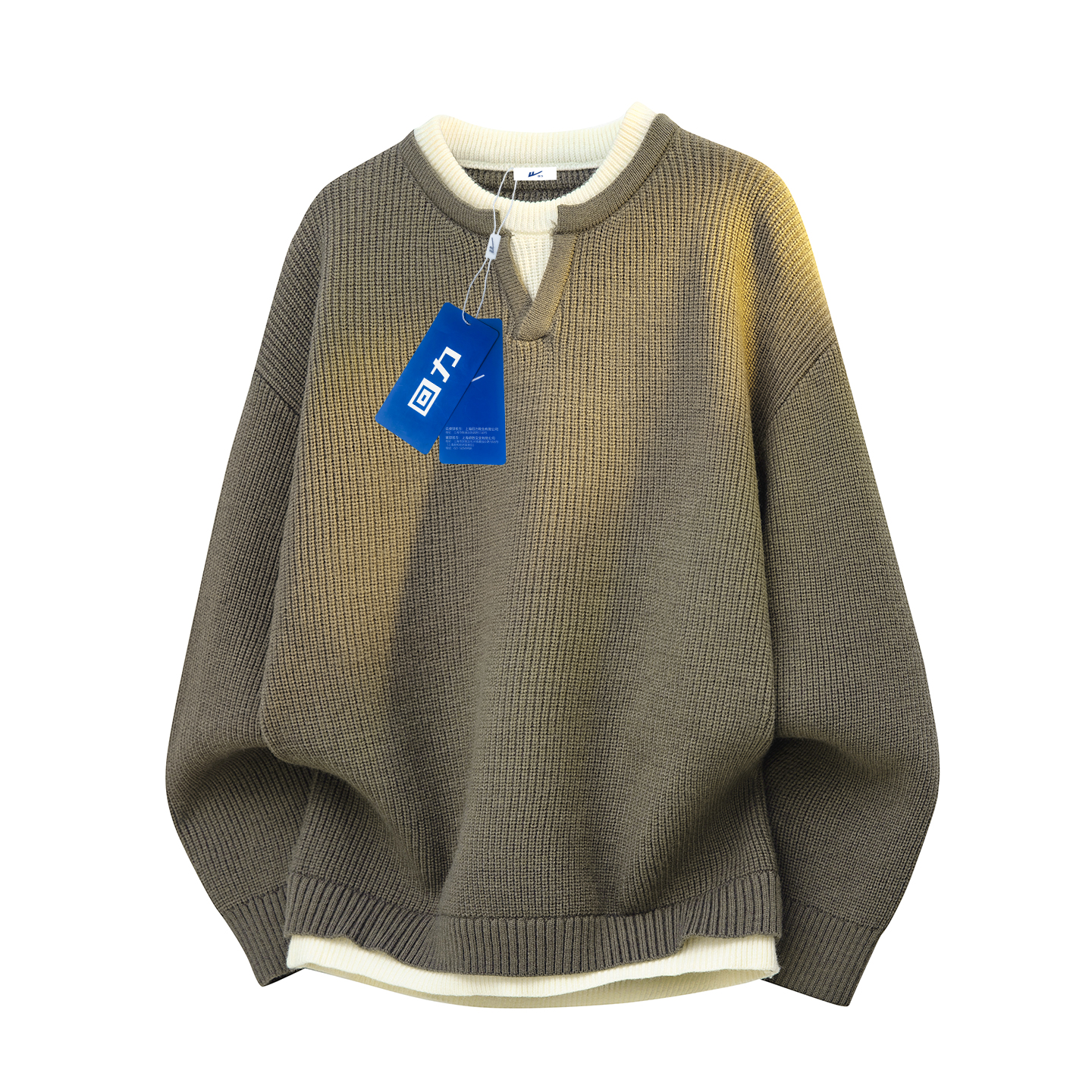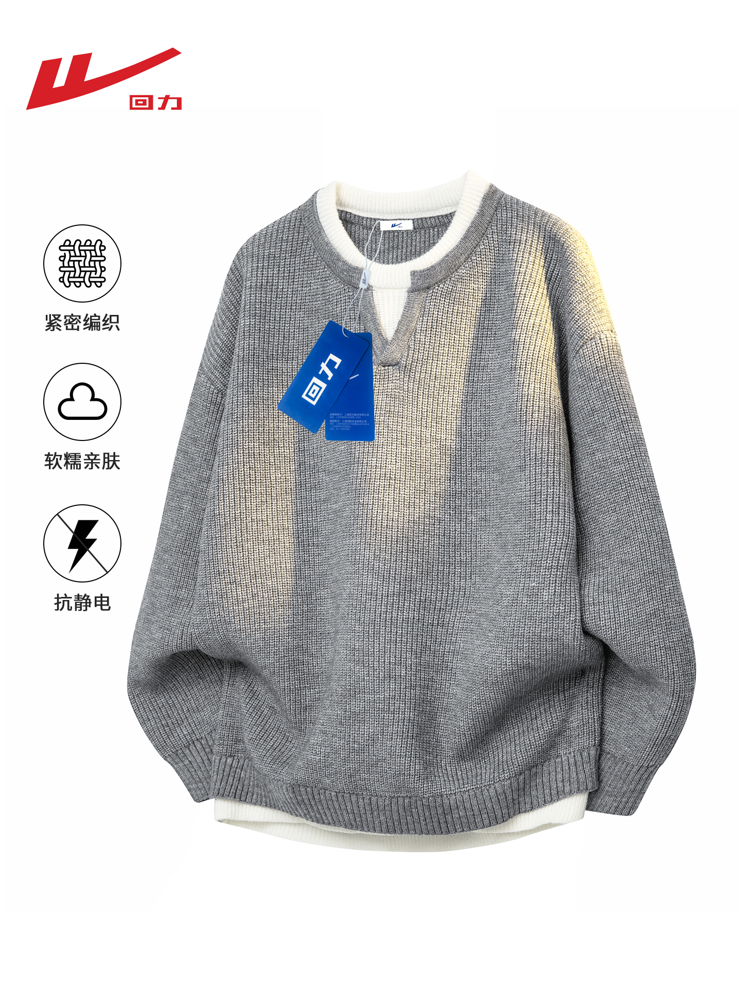 回力圆领毛衣男士秋冬季新款美式假两件针织衫男生内搭打底衫上衣