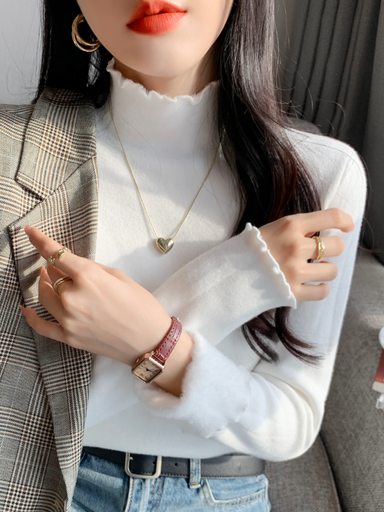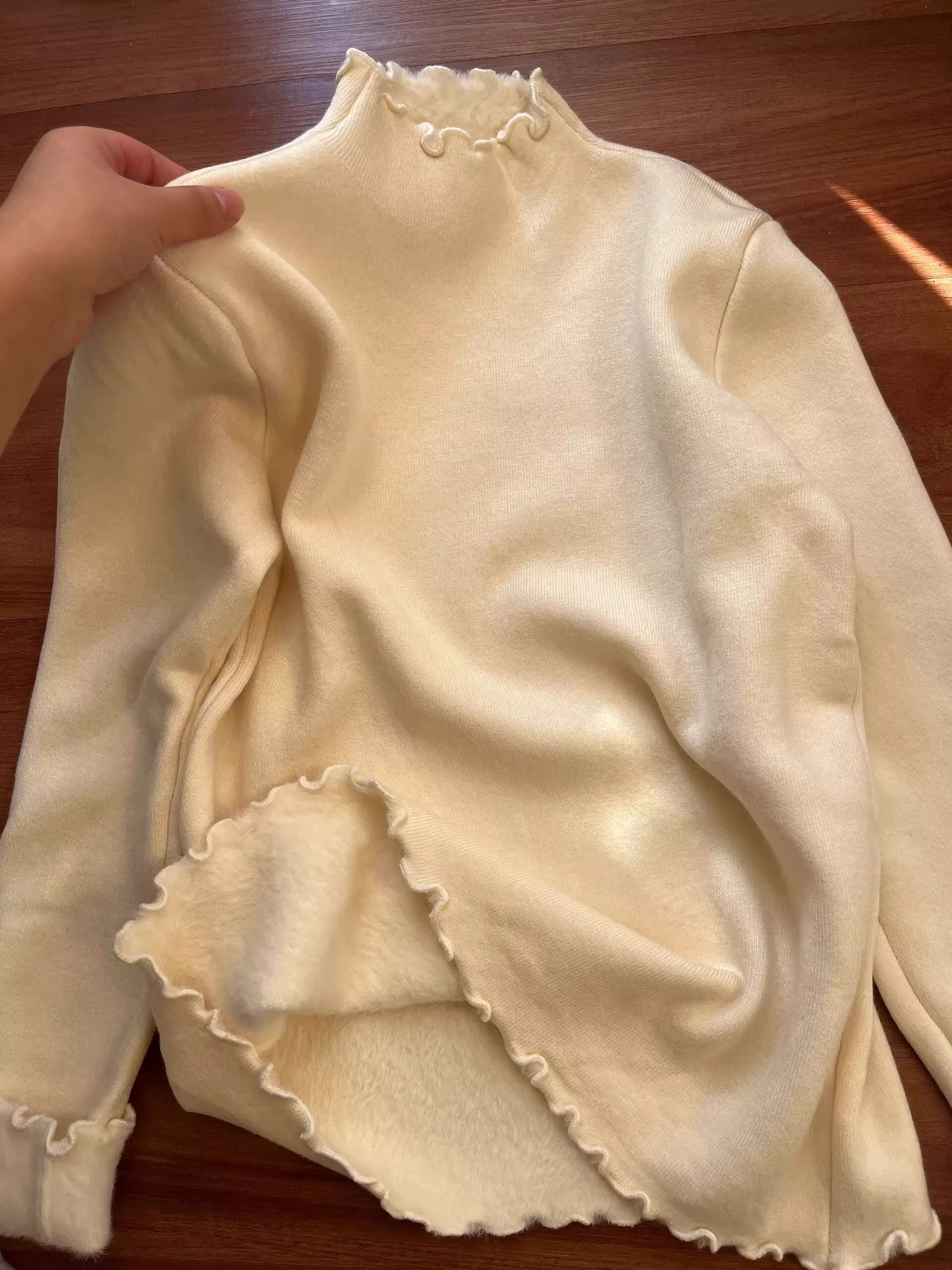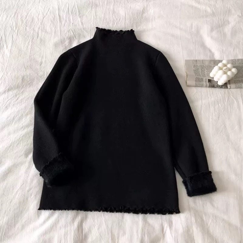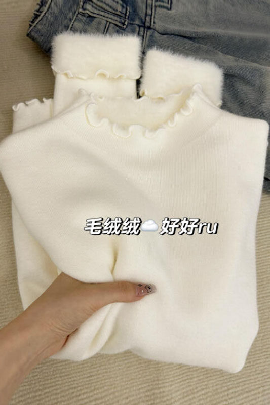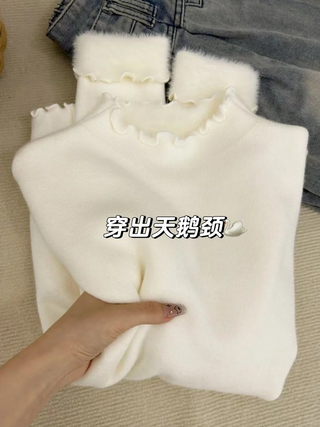 半高领木耳边加绒内搭毛衣女秋冬新款修身软糯一体绒打底衫上衣厚