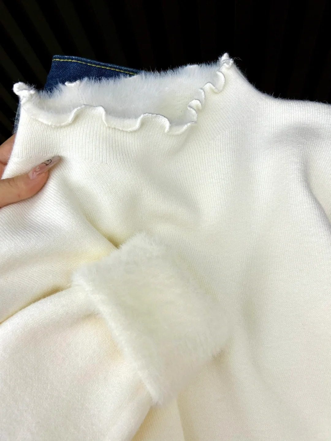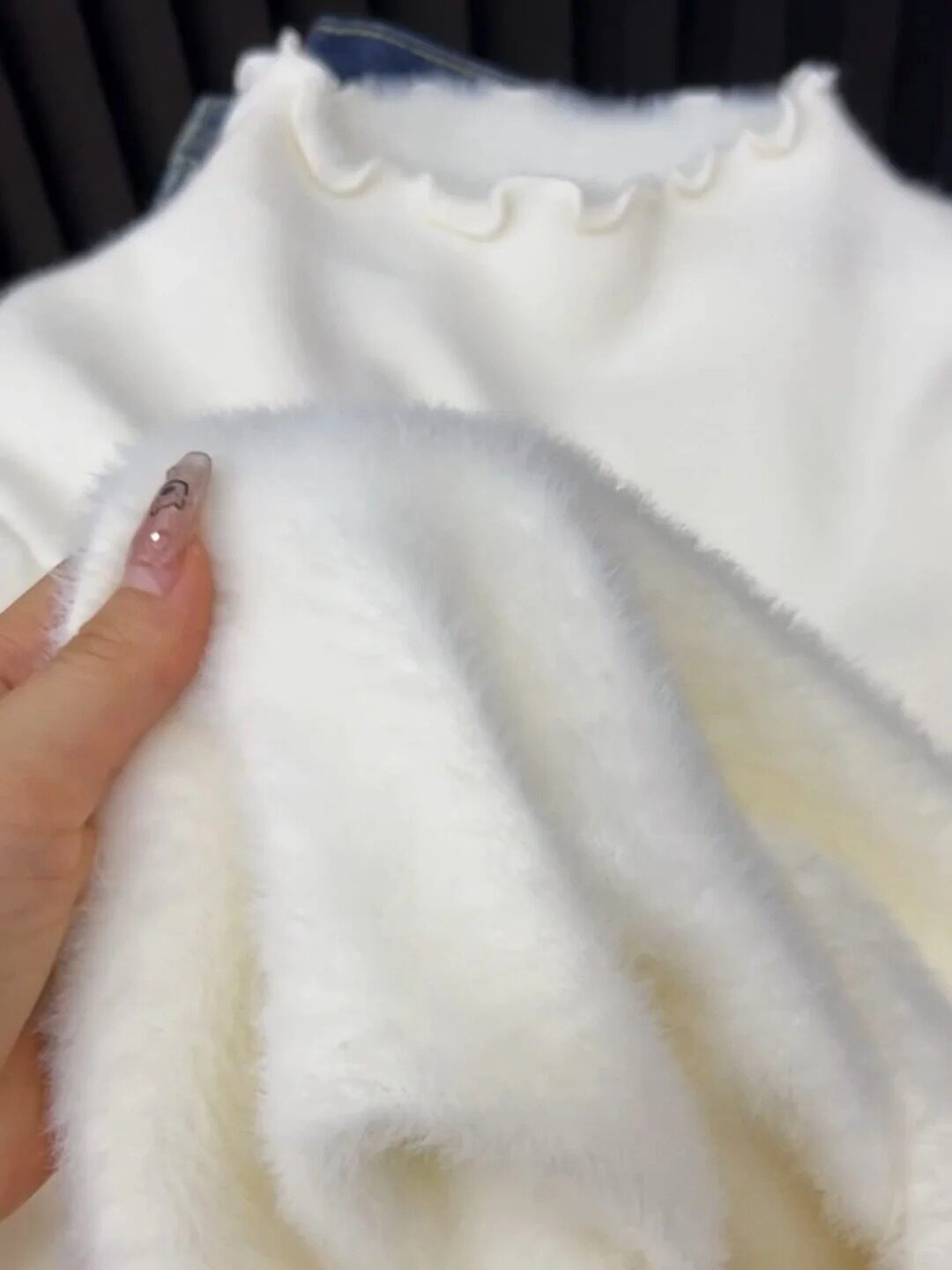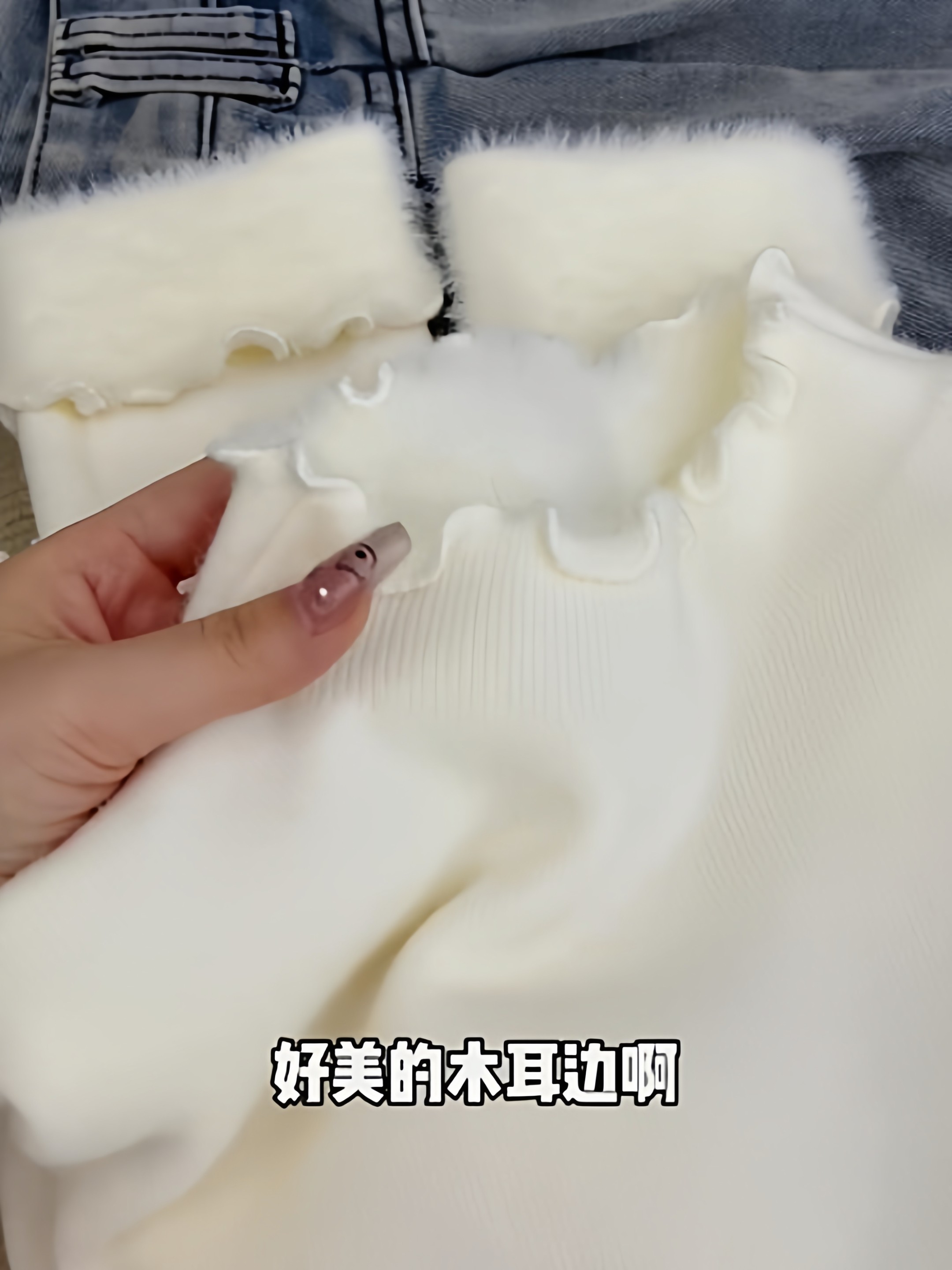 半高领木耳边加绒内搭毛衣女秋冬新款修身软糯一体绒打底衫上衣厚