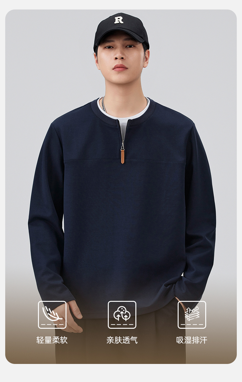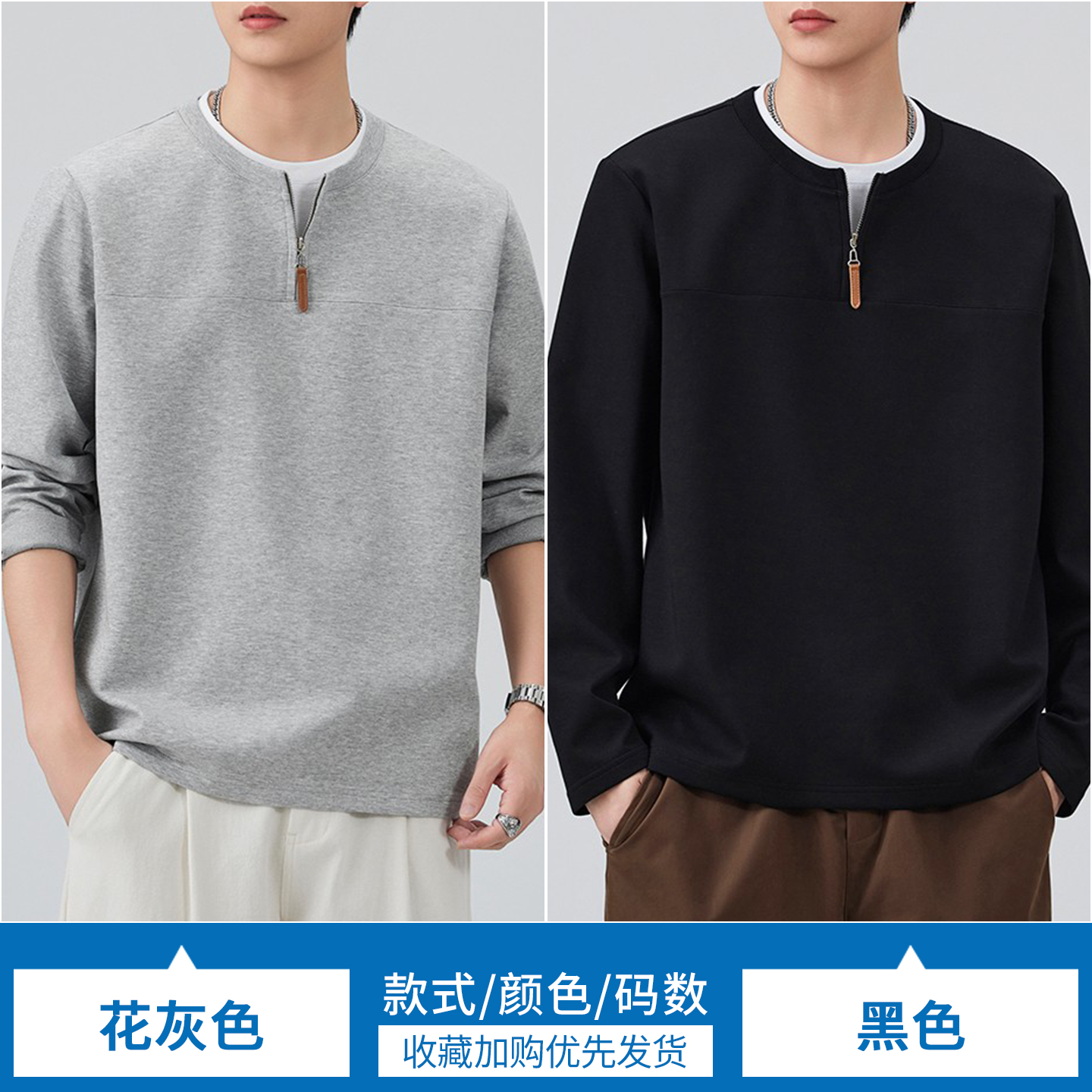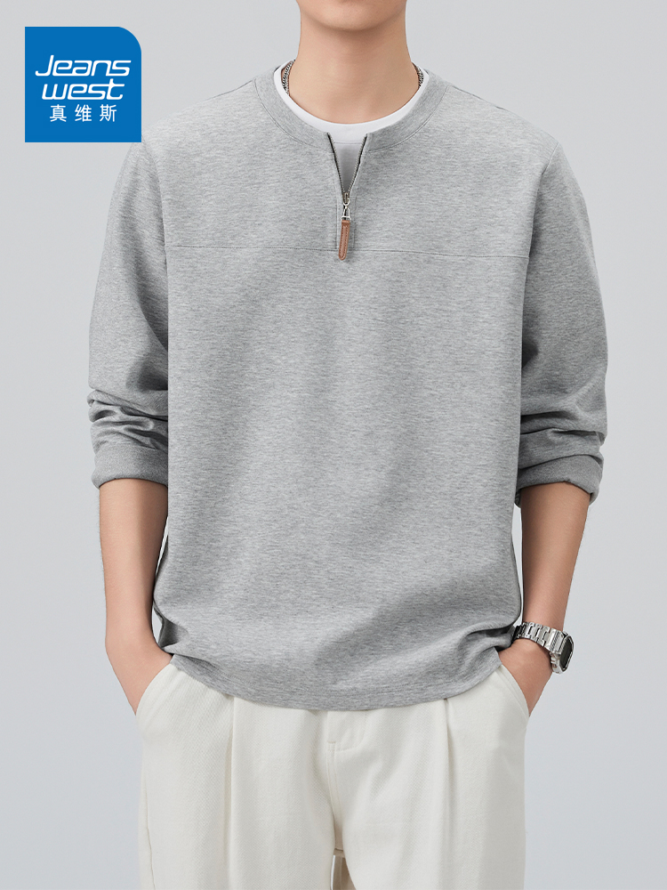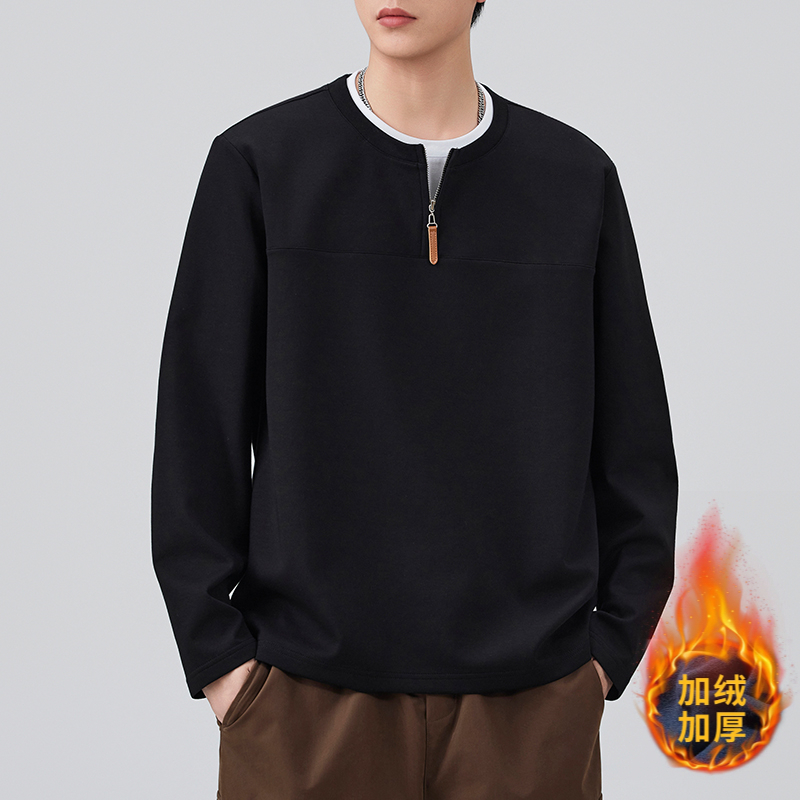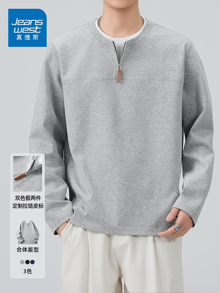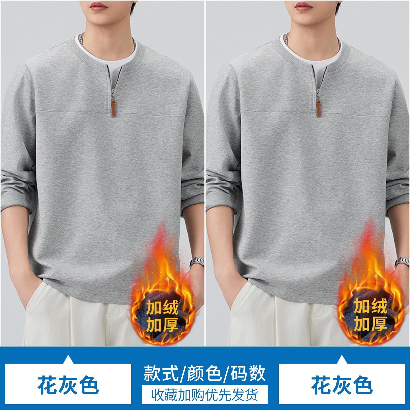 真维斯长袖t恤男2025新款半拉链秋冬季加绒上衣男假两件卫衣宽松
