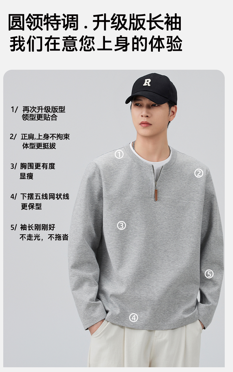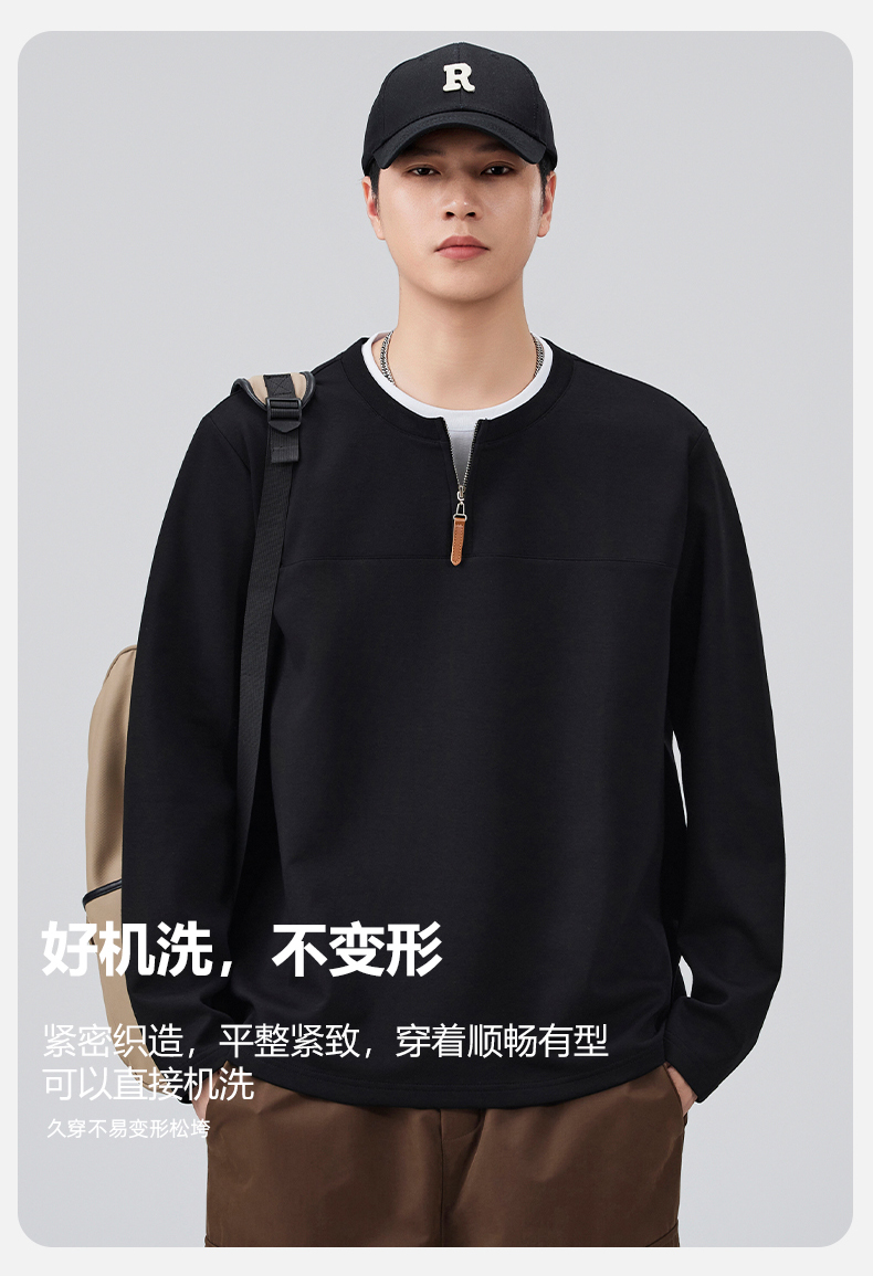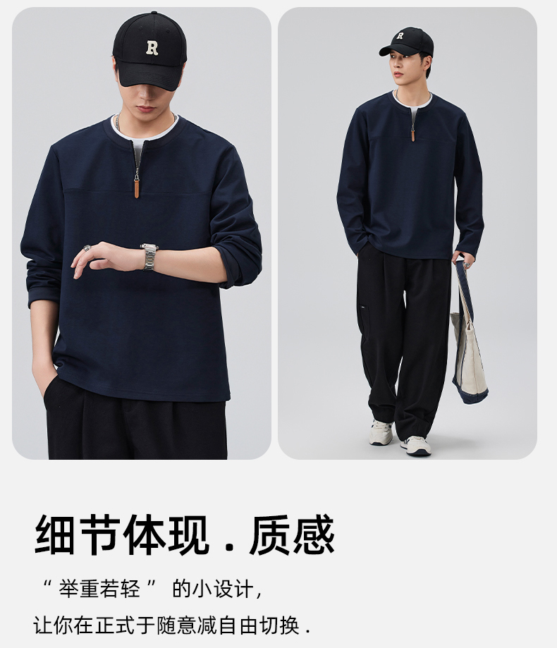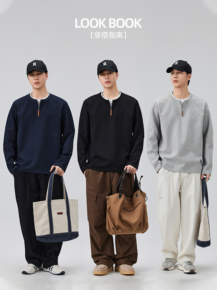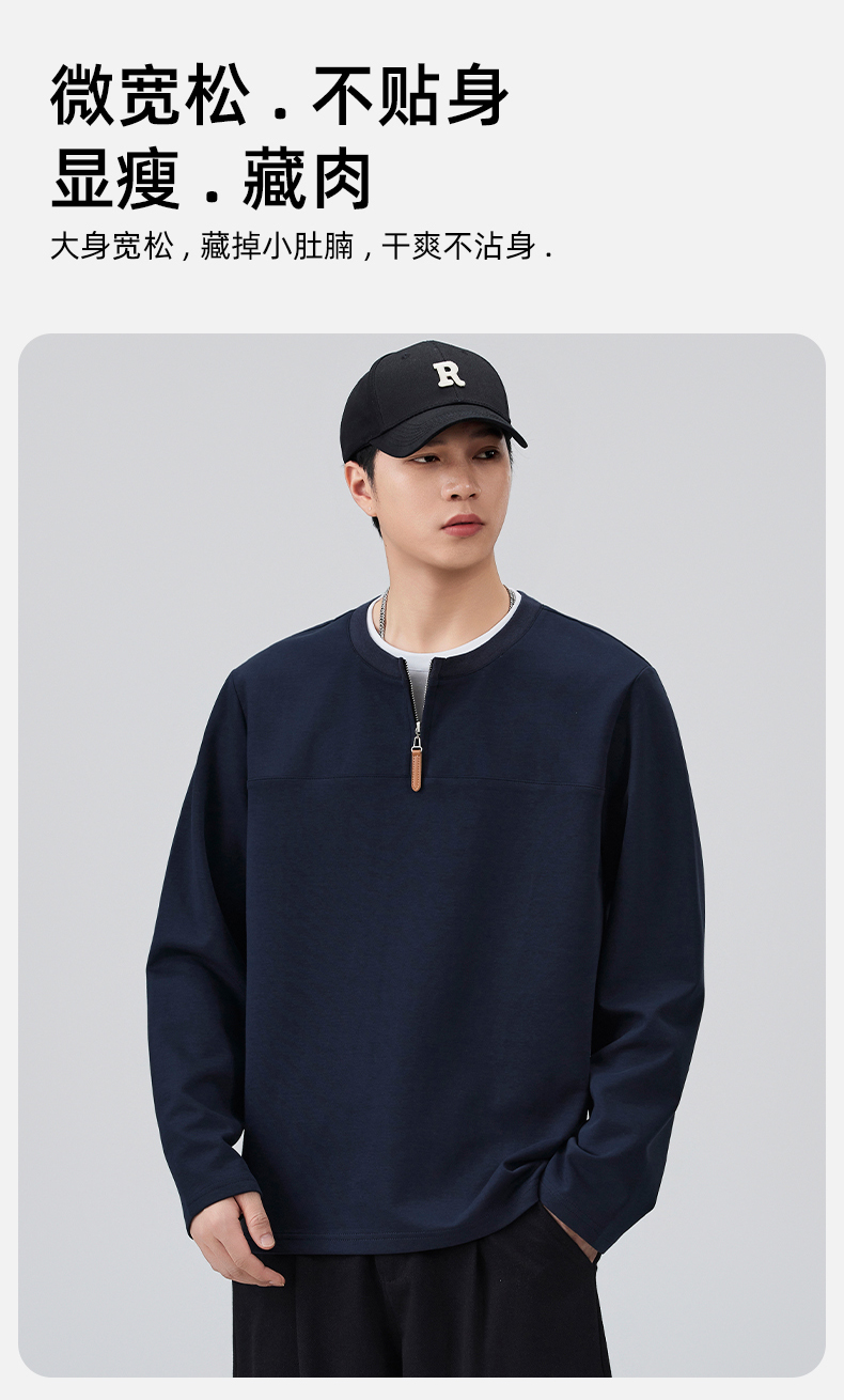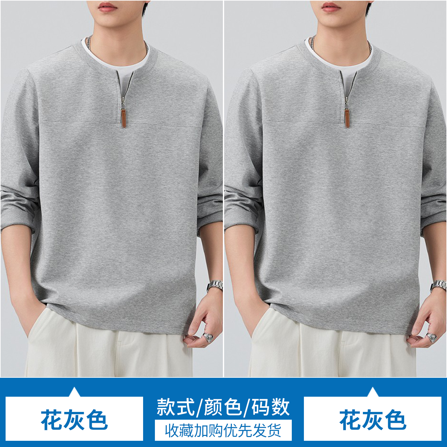 真维斯长袖t恤男2025新款半拉链秋冬季加绒上衣男假两件卫衣宽松
