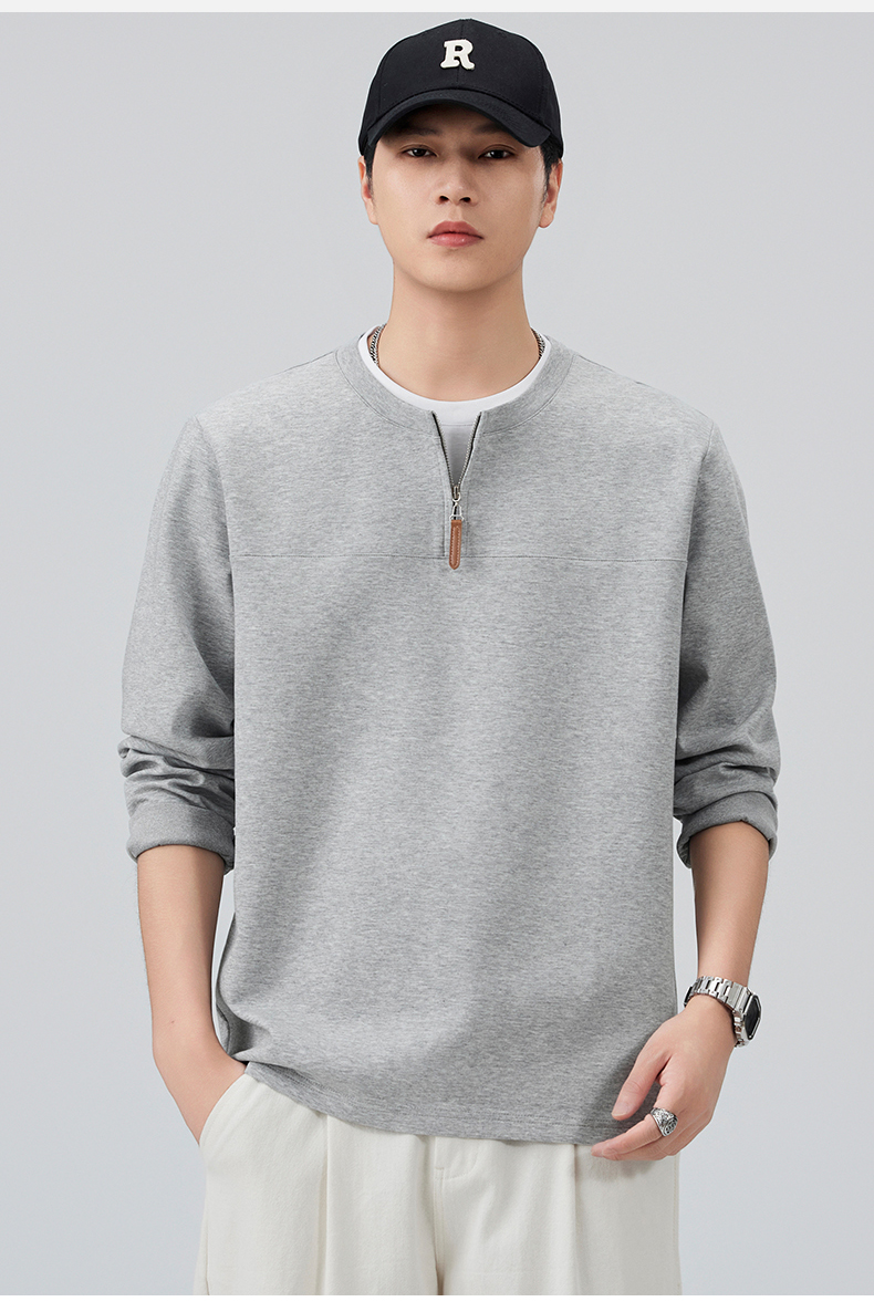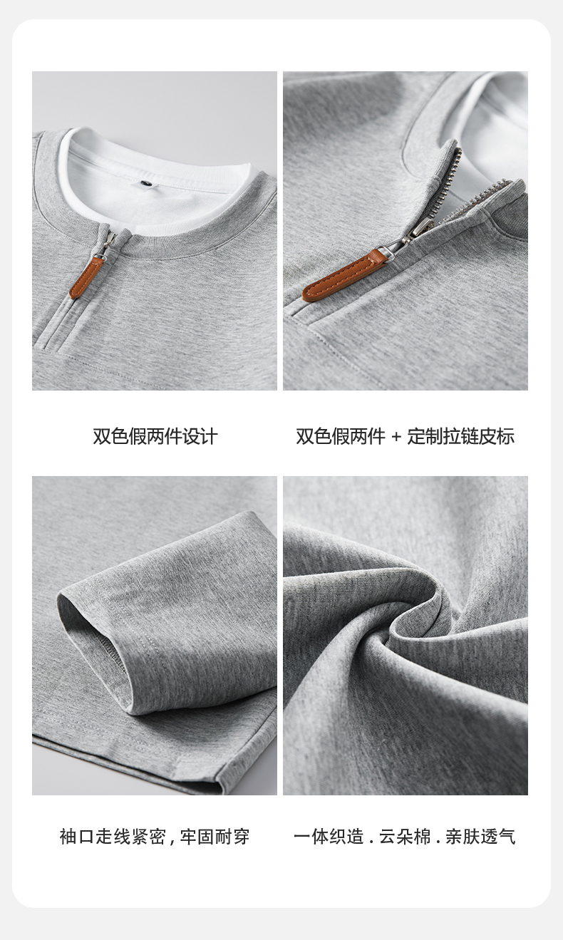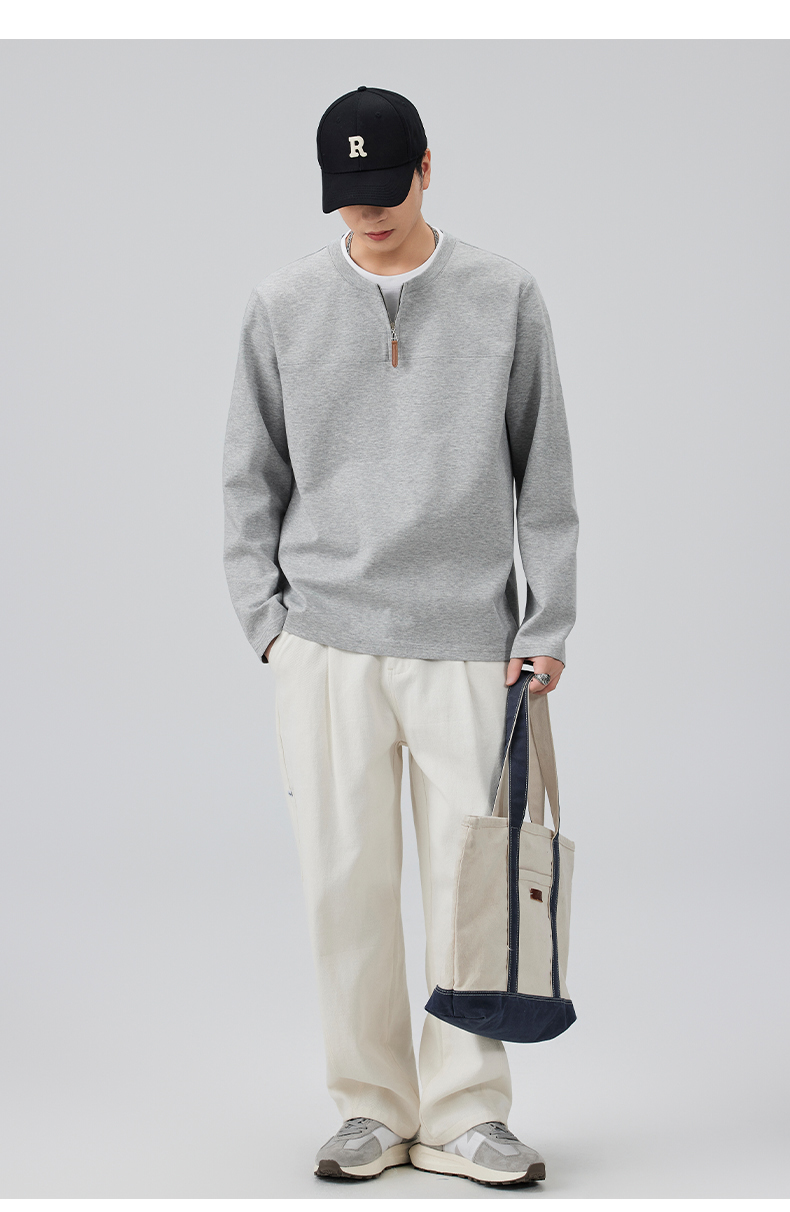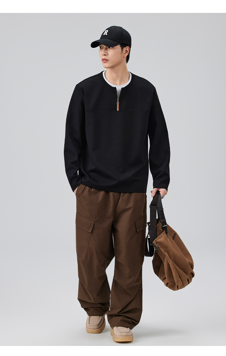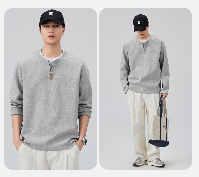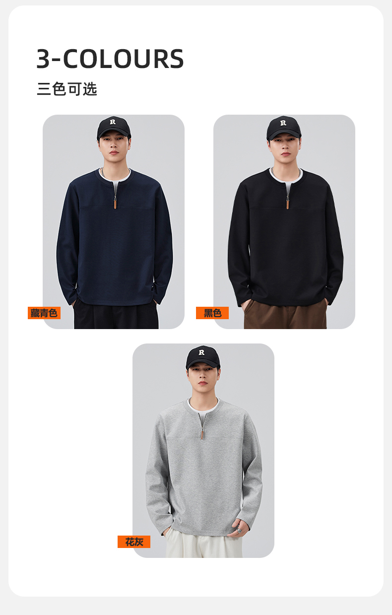 真维斯长袖t恤男2025新款半拉链秋冬季加绒上衣男假两件卫衣宽松