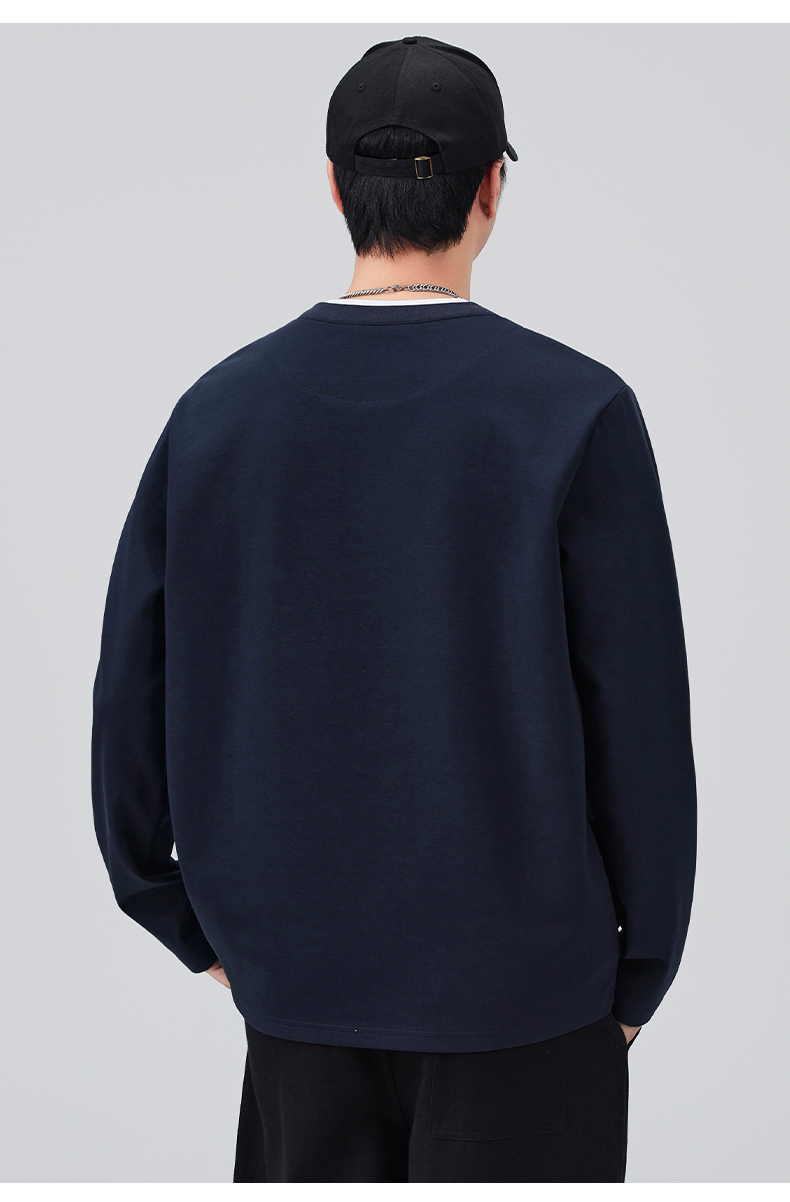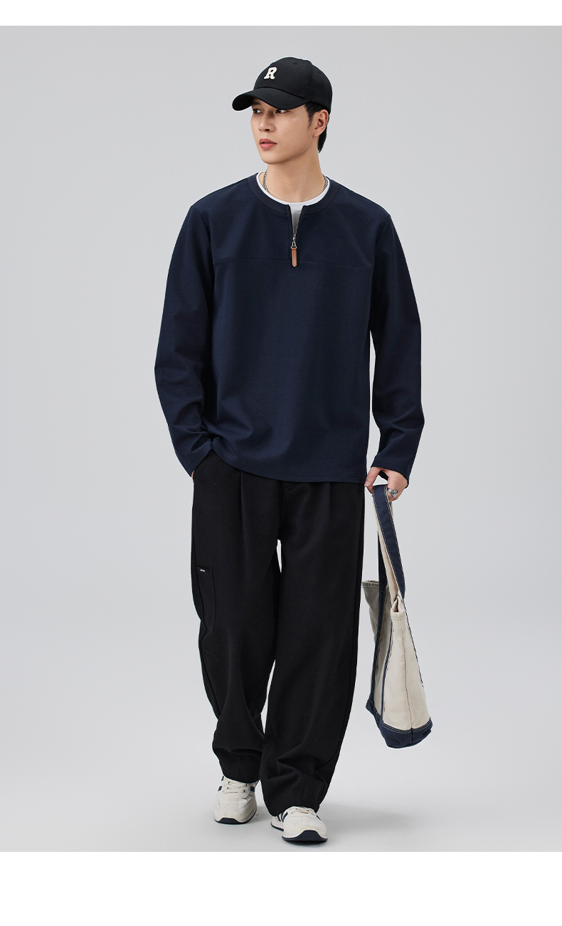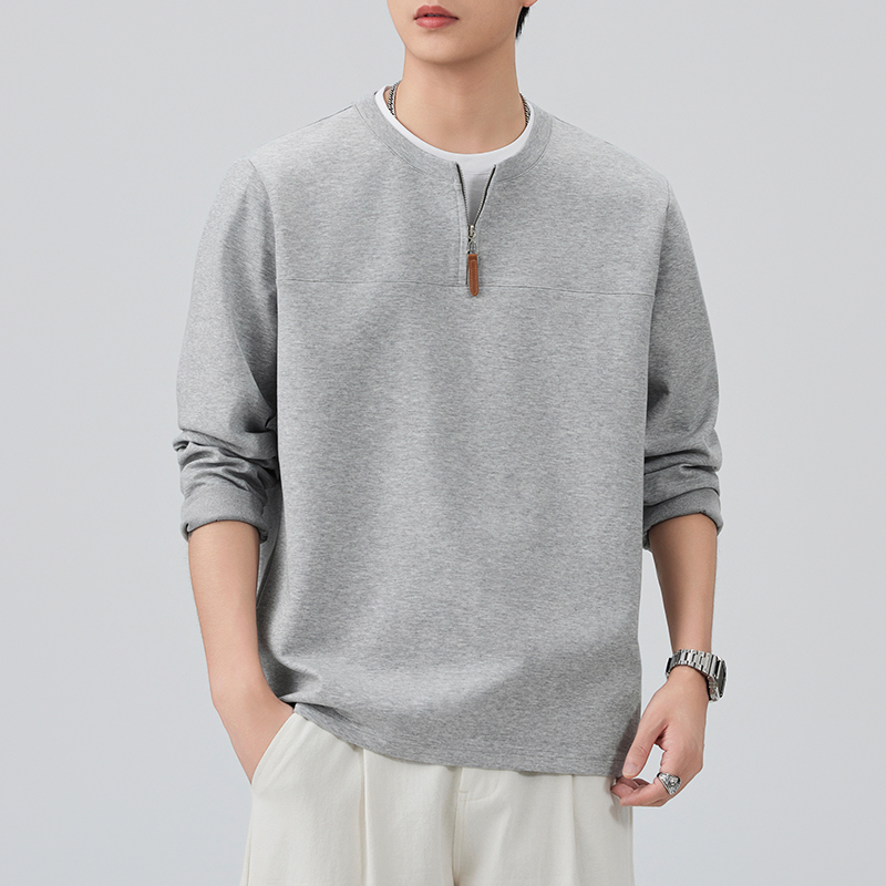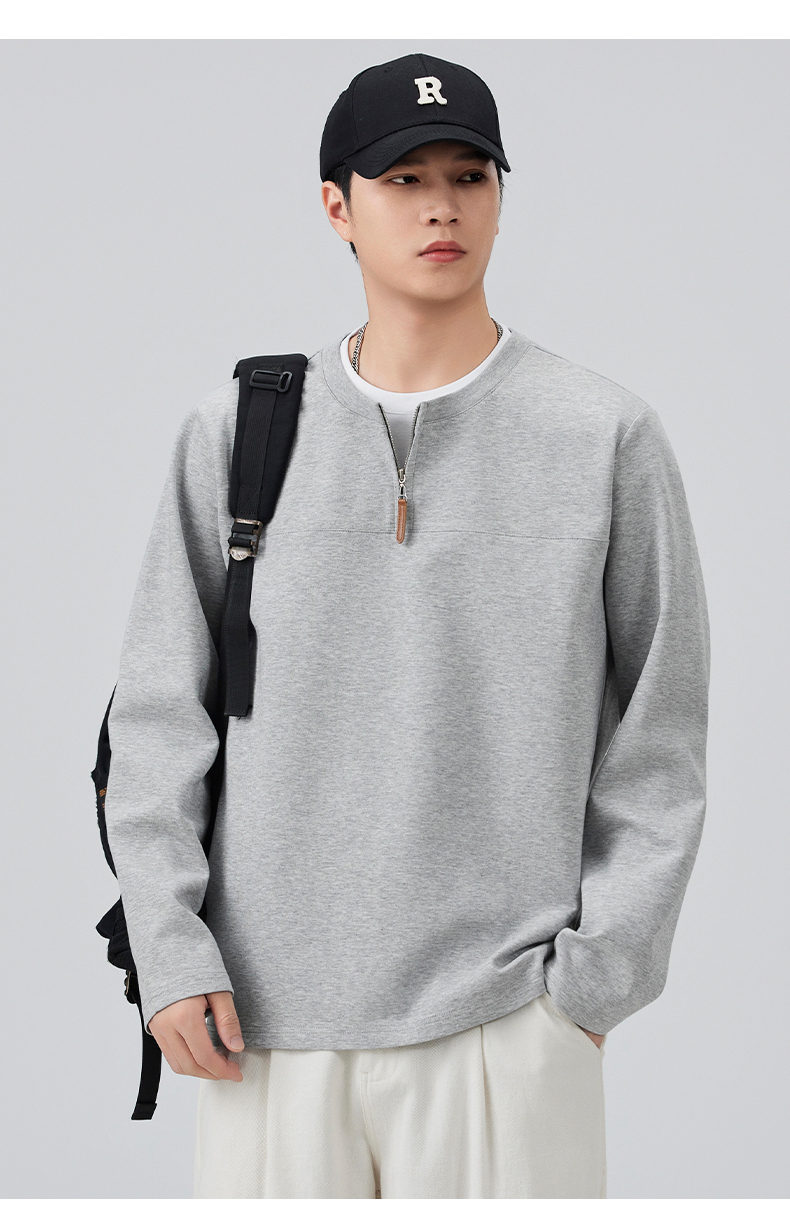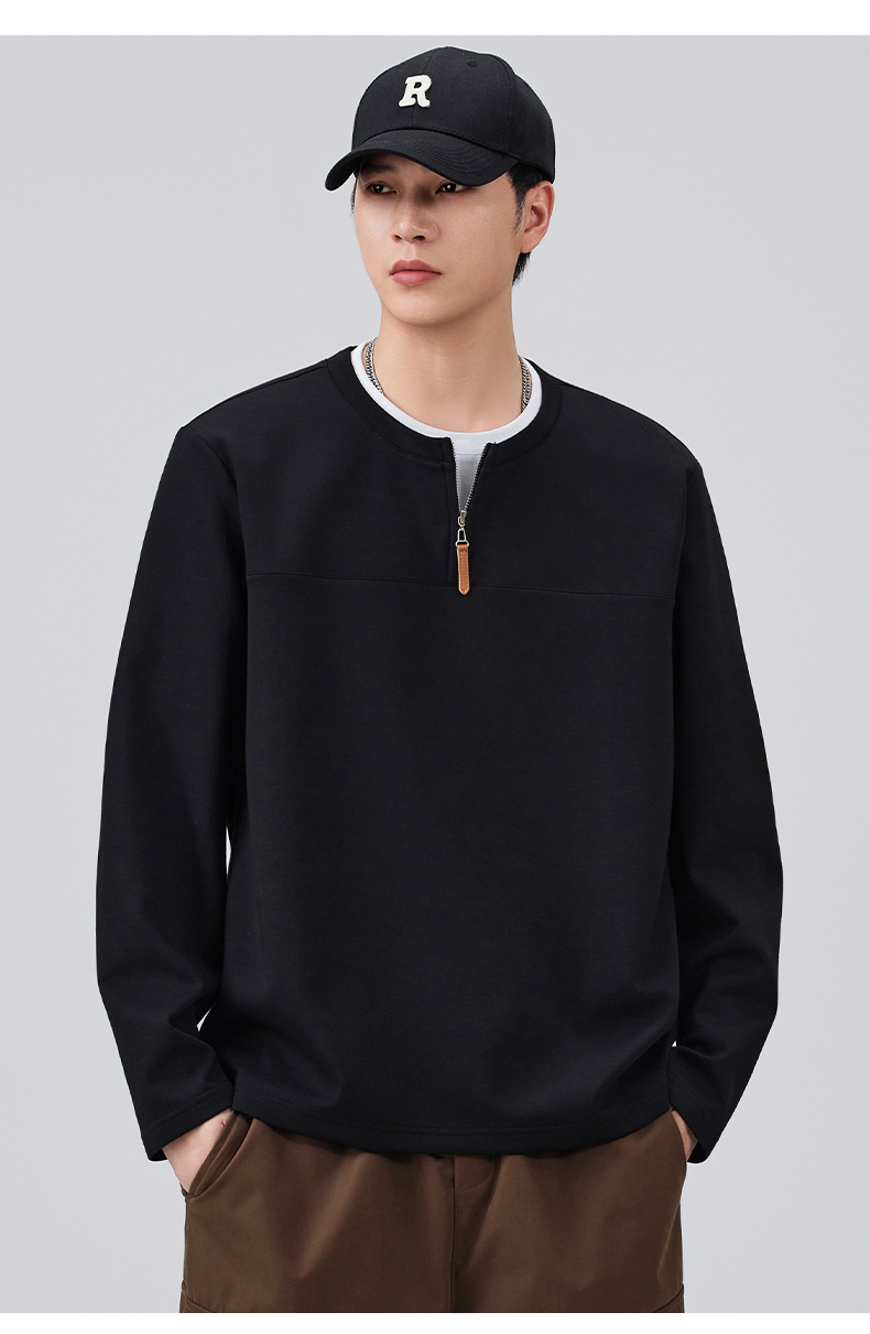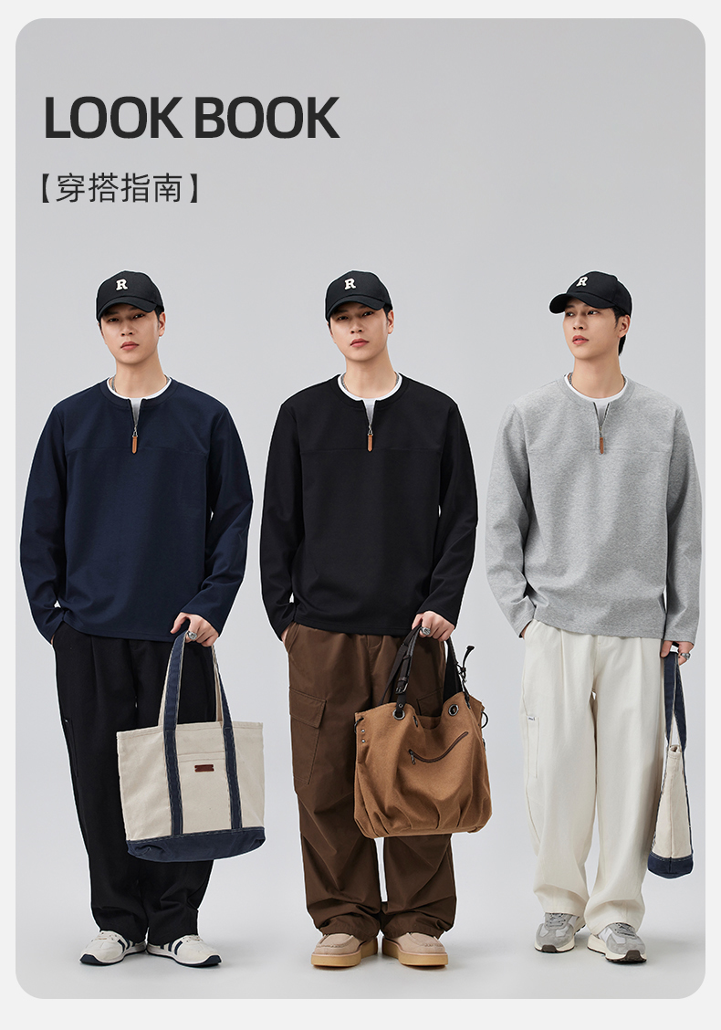真维斯长袖t恤男2025新款半拉链秋冬季加绒上衣男假两件卫衣宽松