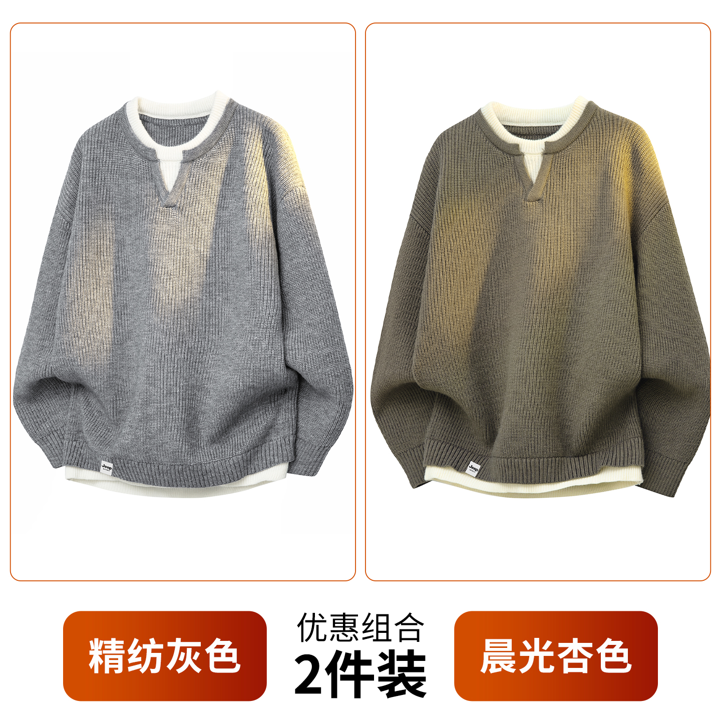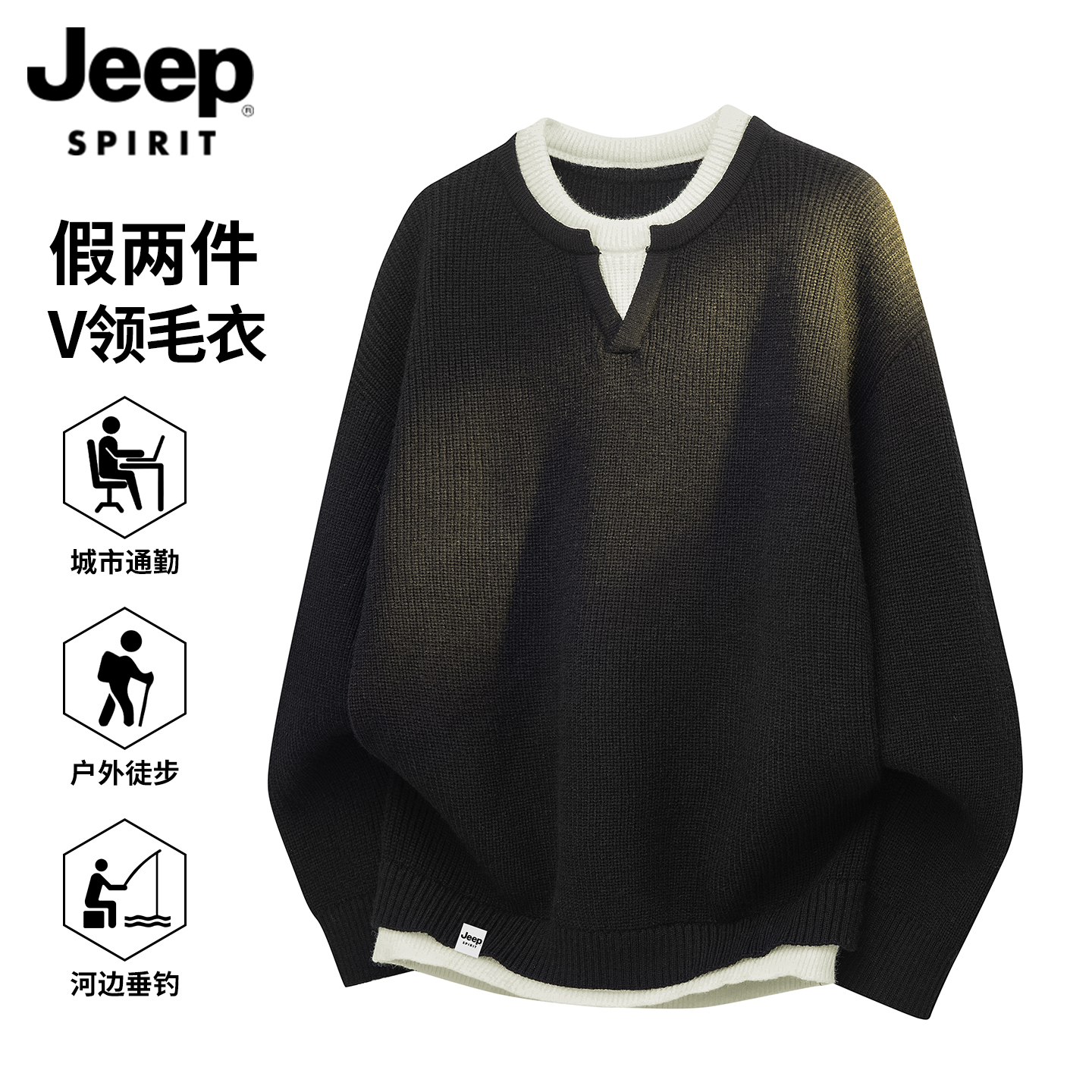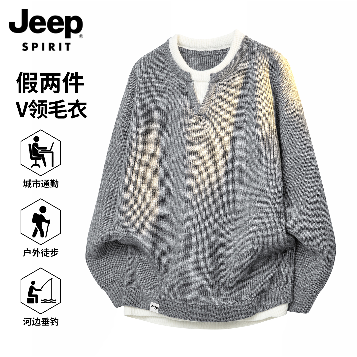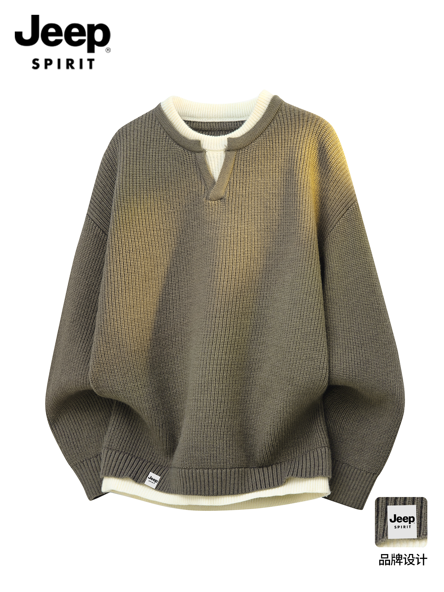 吉普假两件毛衣男款秋冬季新款男士卫衣男生上衣服男装针织衫冬装