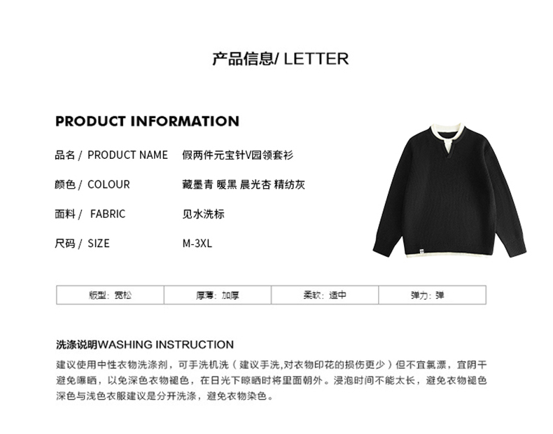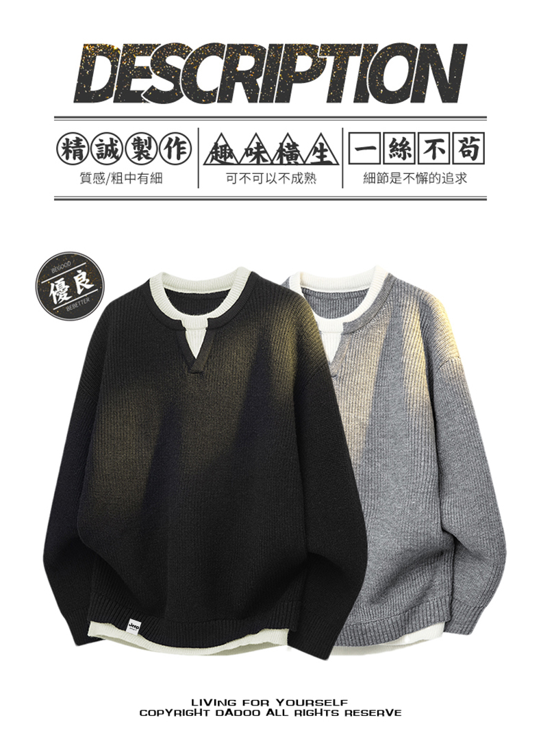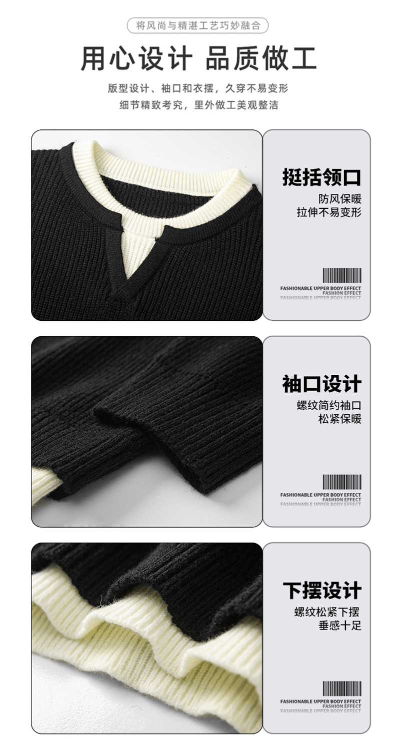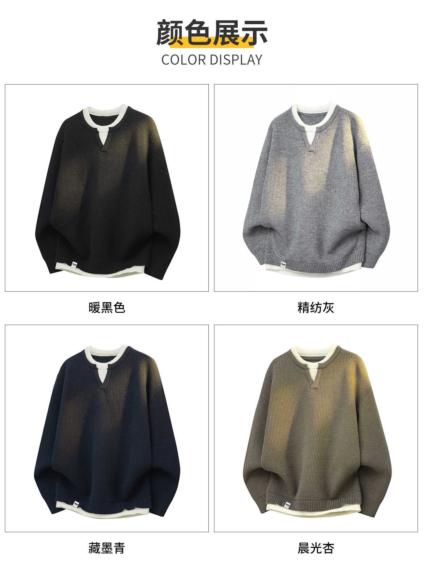吉普假两件毛衣男款秋冬季新款男士卫衣男生上衣服男装针织衫冬装
