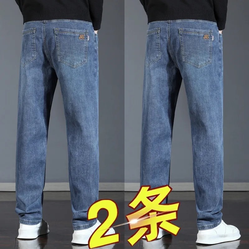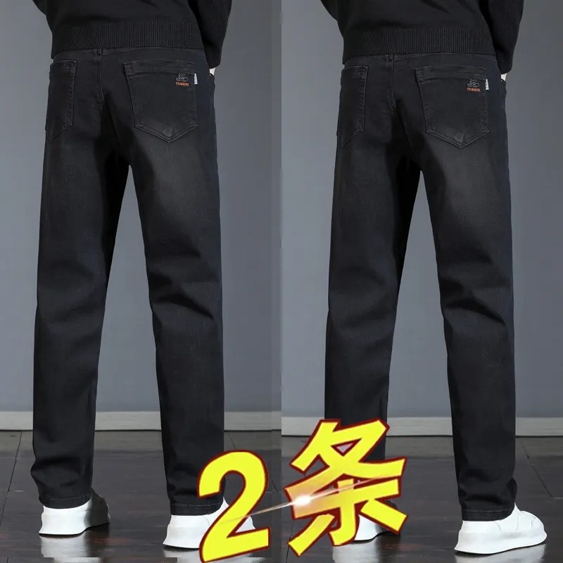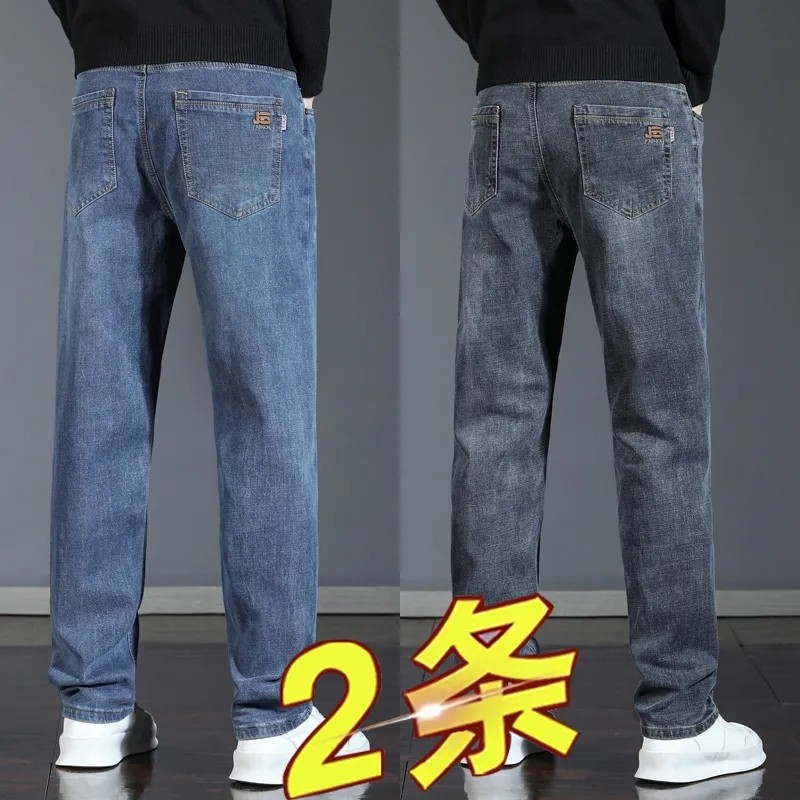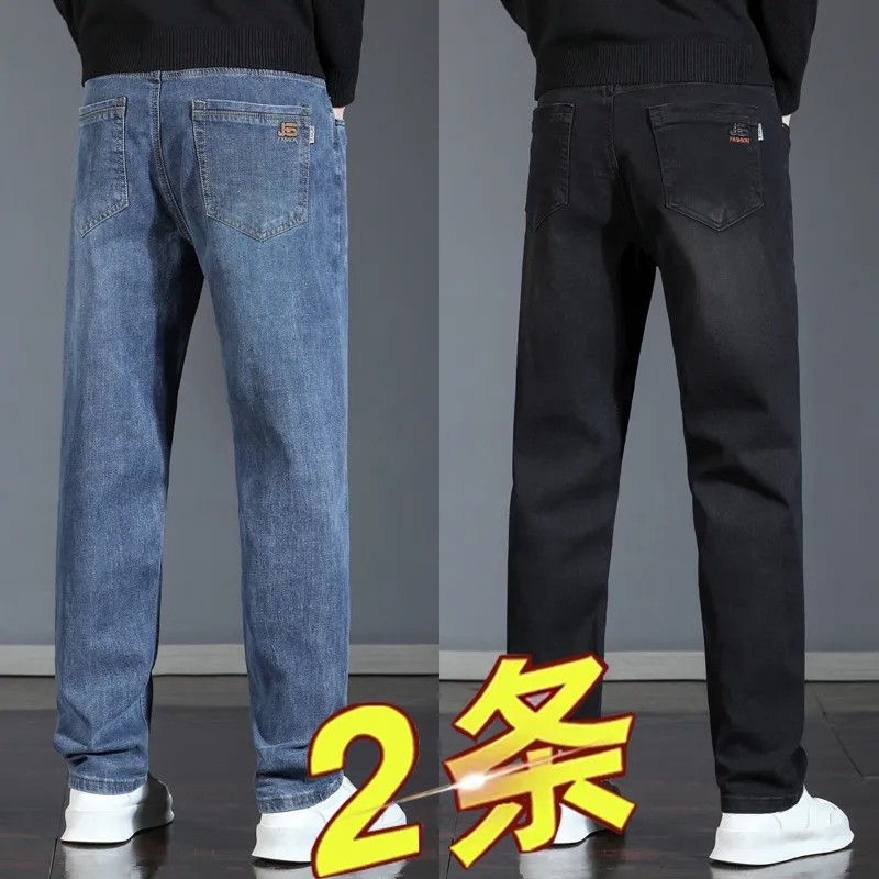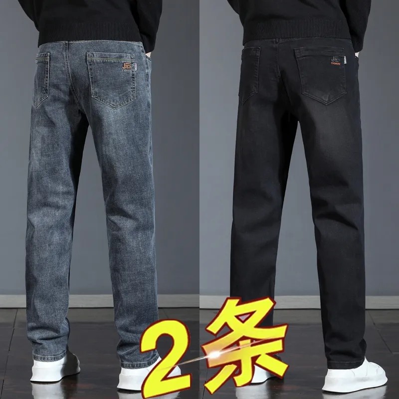 春秋款男士牛仔裤弹力直筒宽松潮牌百搭冬季新品加绒加厚休闲长裤
