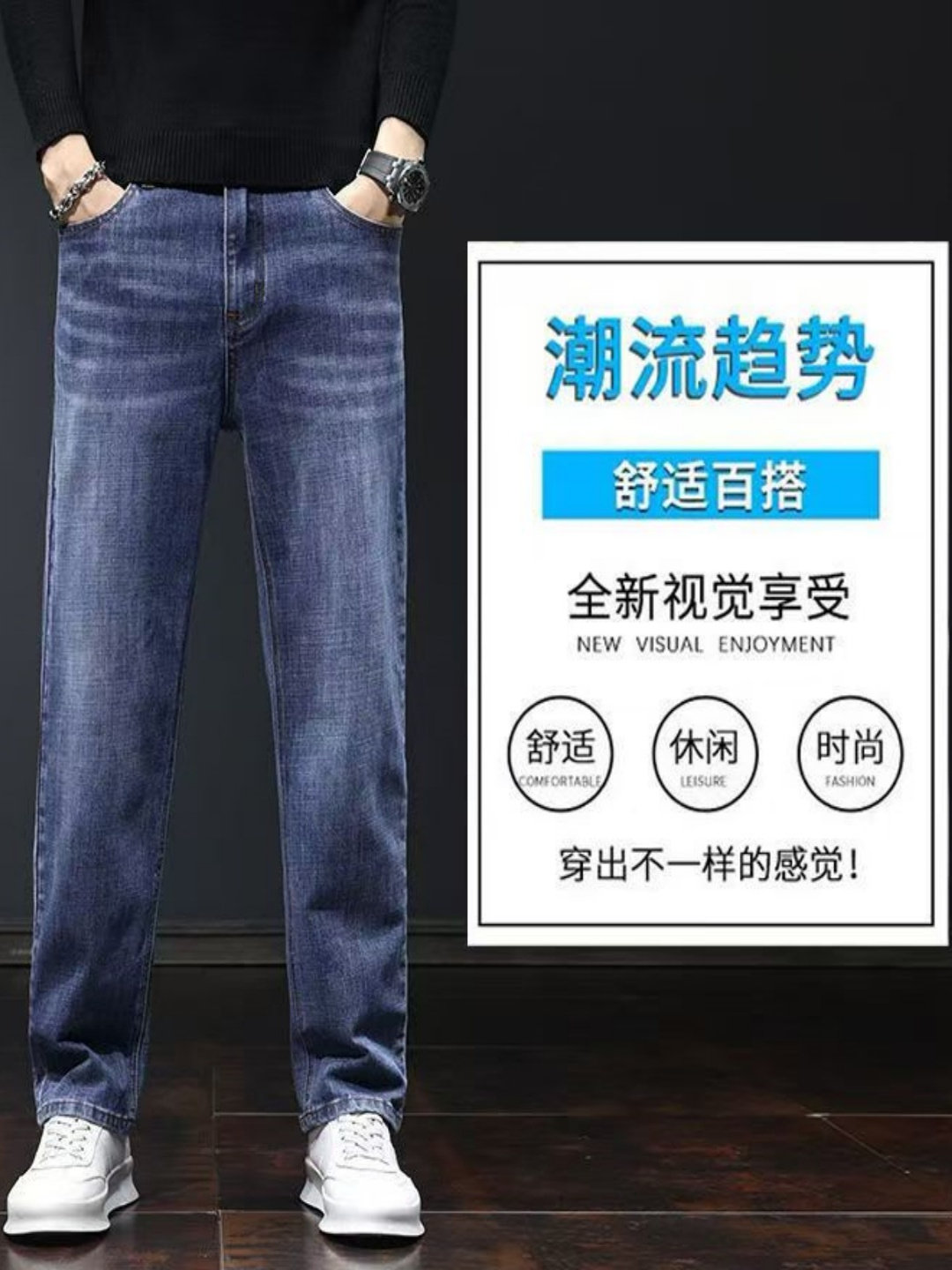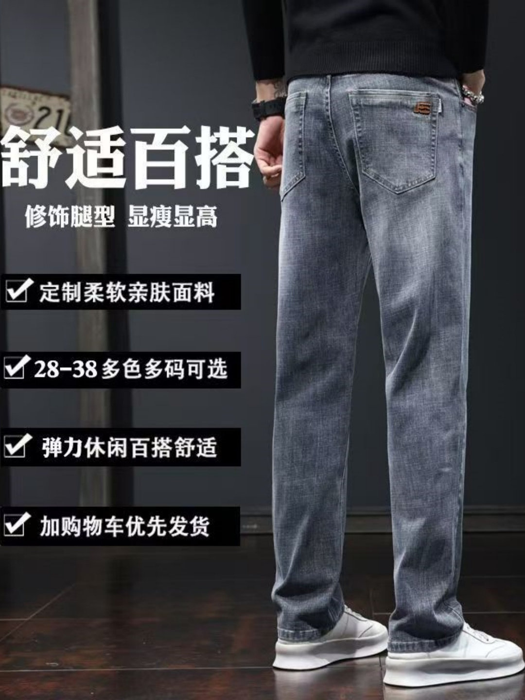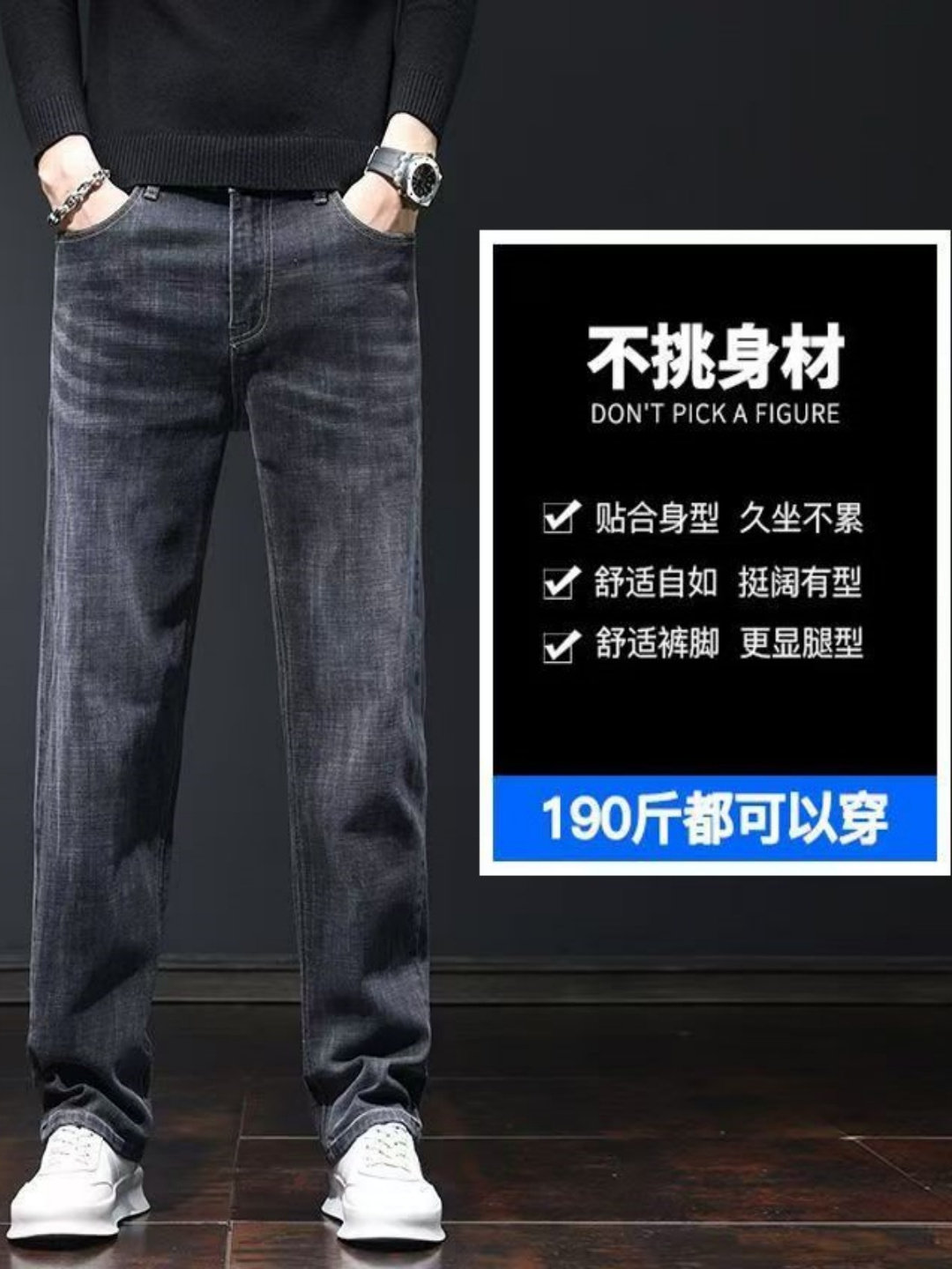 春秋款男士牛仔裤弹力直筒宽松潮牌百搭冬季新品加绒加厚休闲长裤