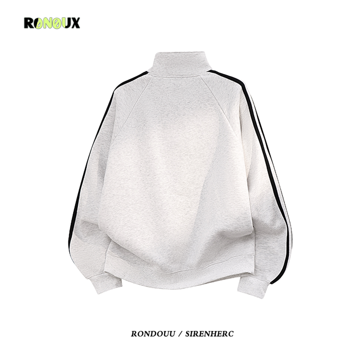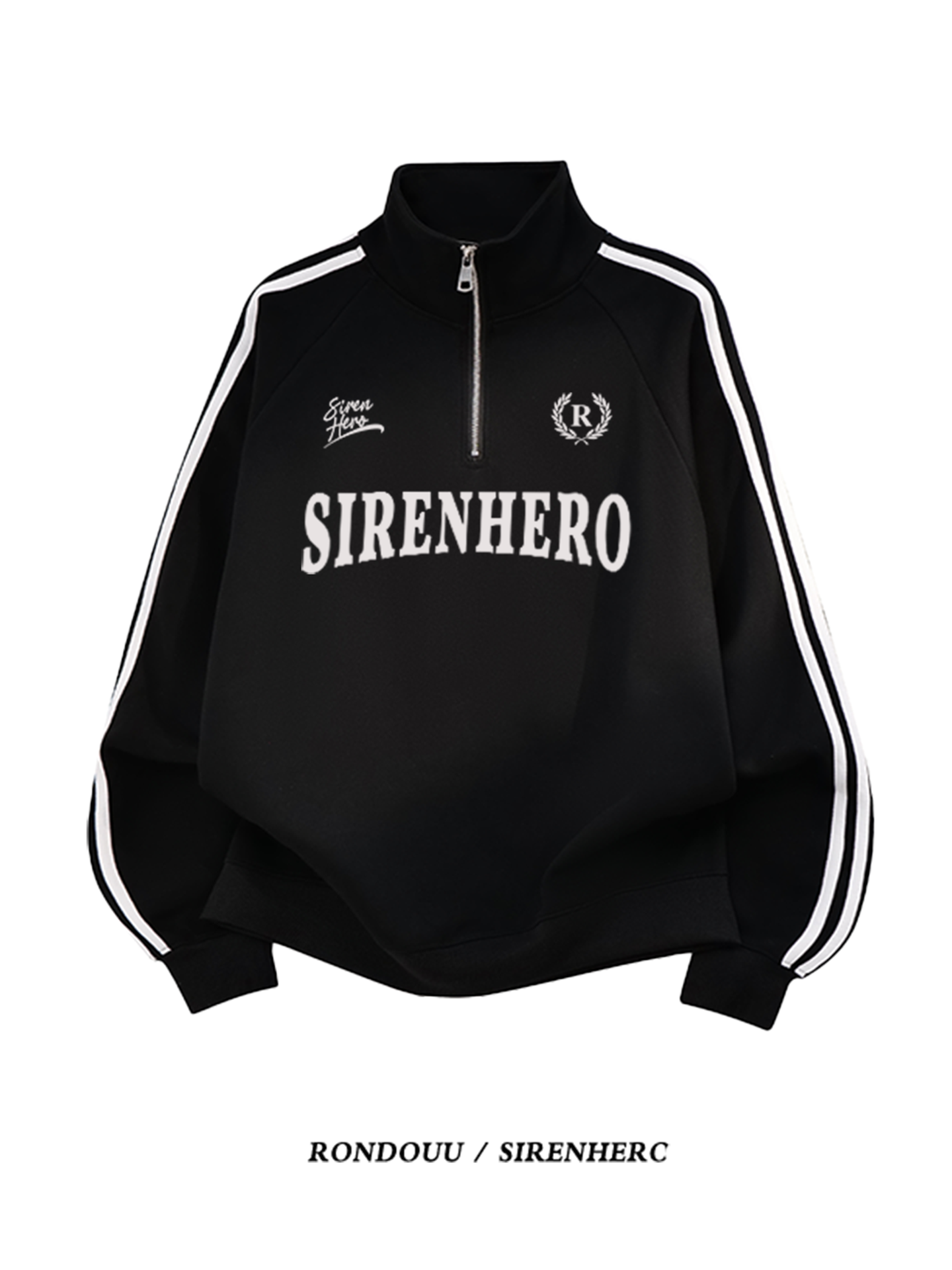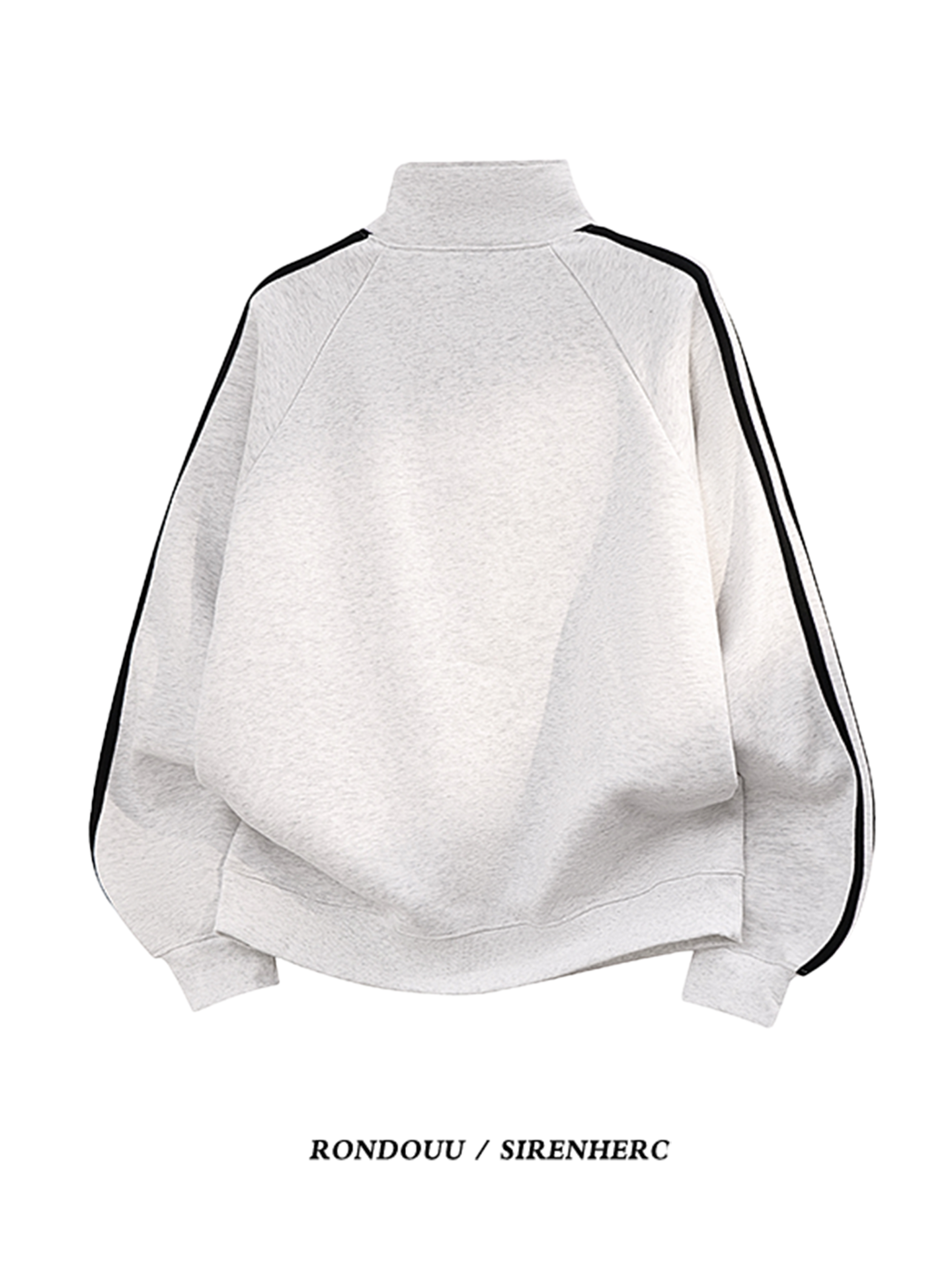 美式复古oversize潮牌三条杠半拉链立领卫衣男女宽松运动情侣外套