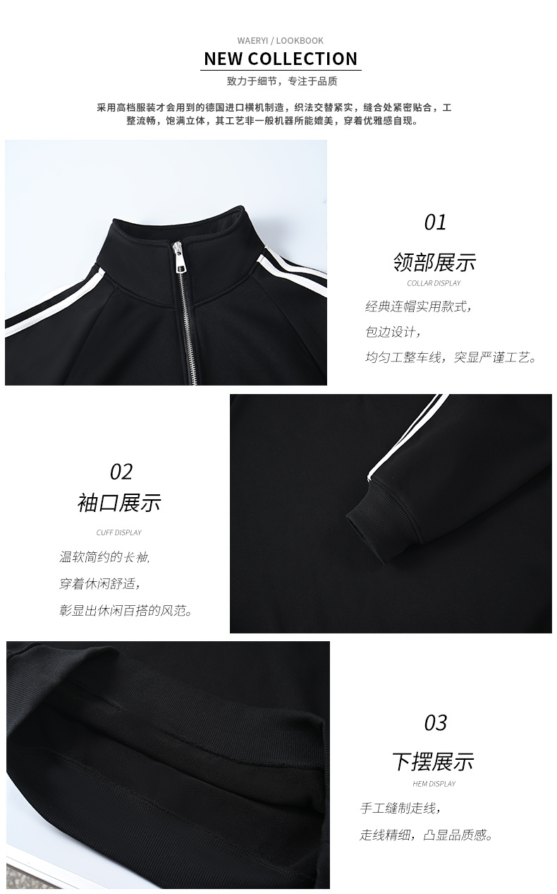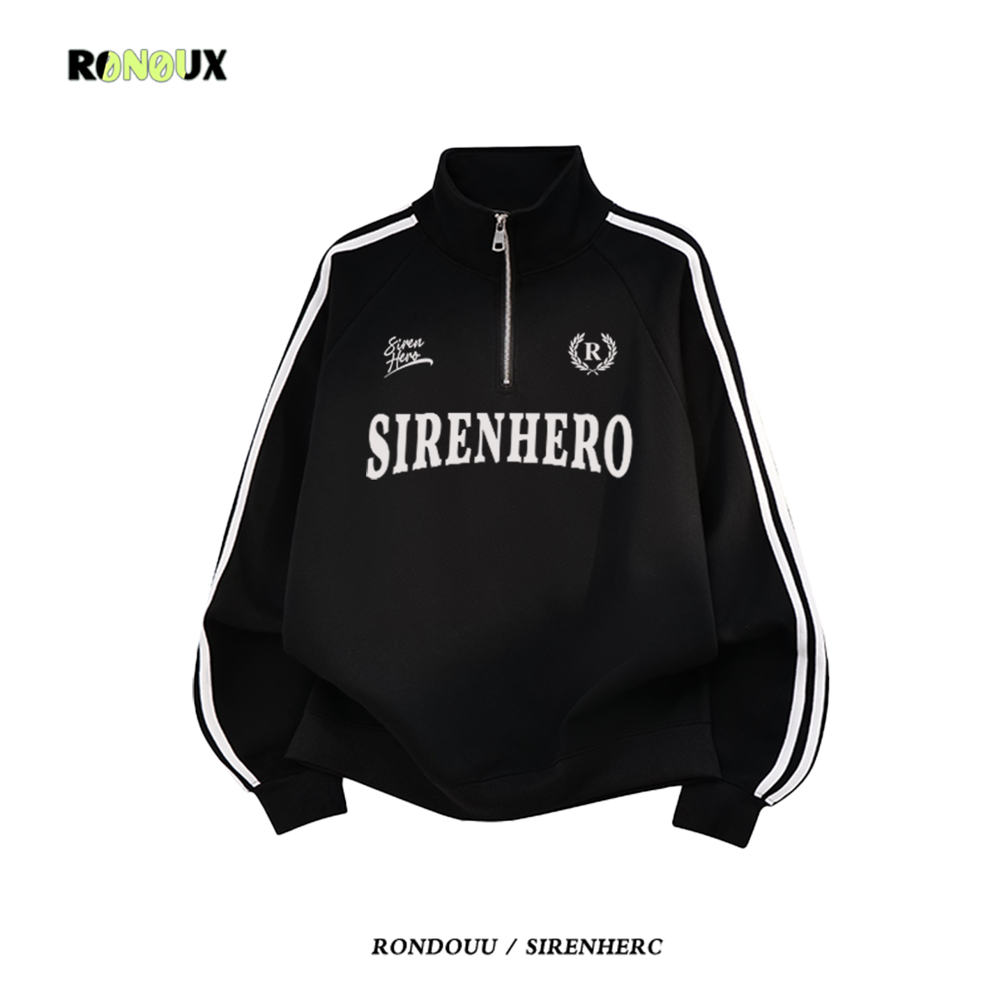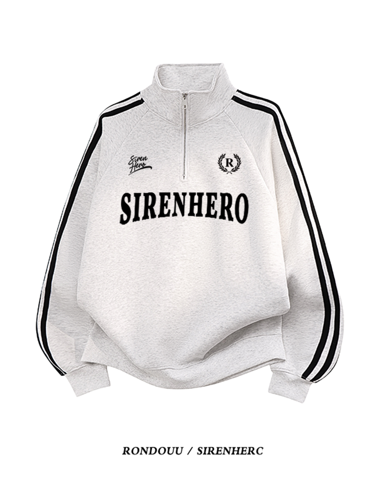 美式复古oversize潮牌三条杠半拉链立领卫衣男女宽松运动情侣外套