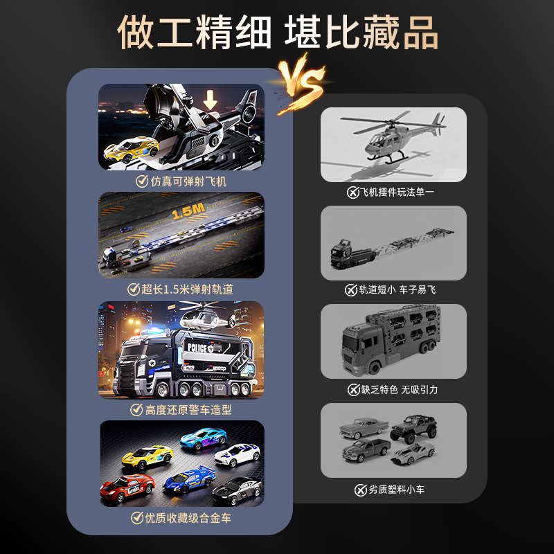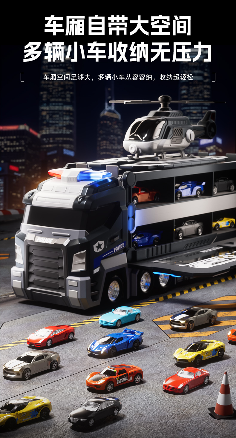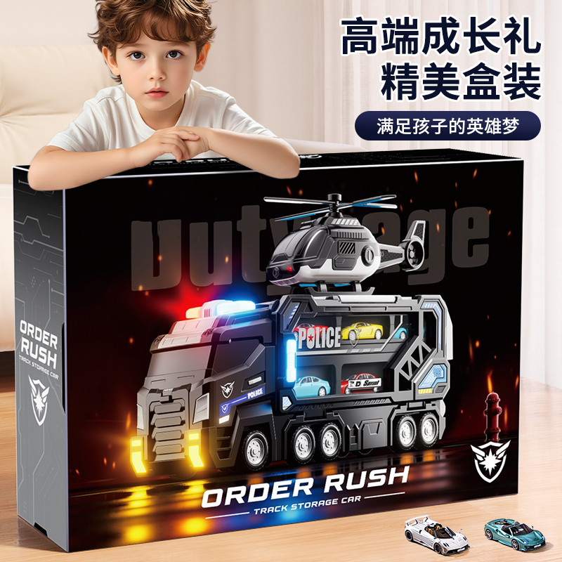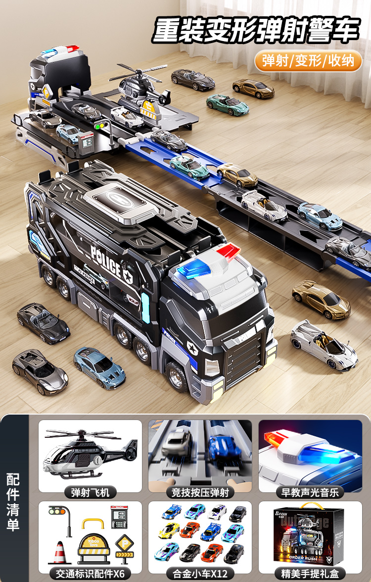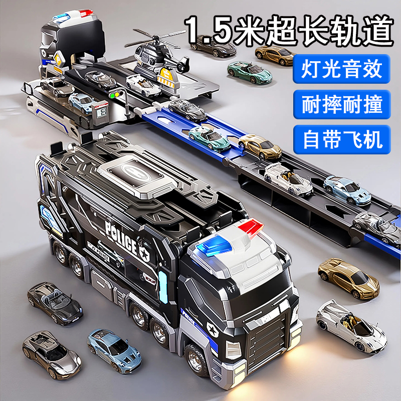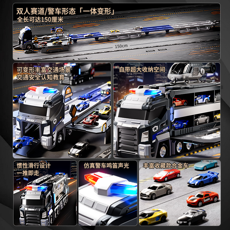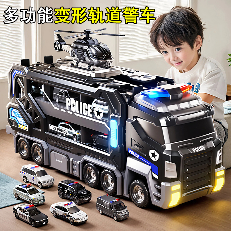 大号警车轨道玩具车6变形滑行弹射合金收纳小汽车男孩玩具飞机3