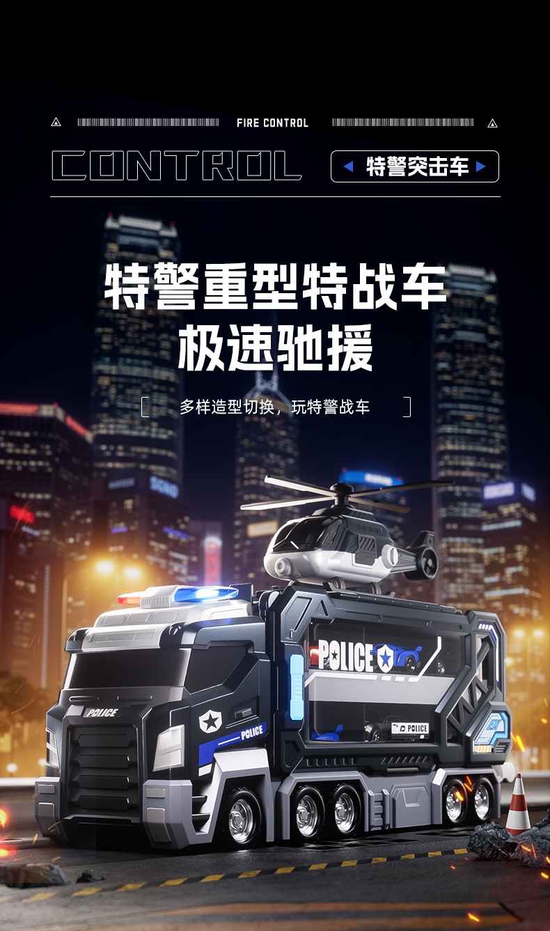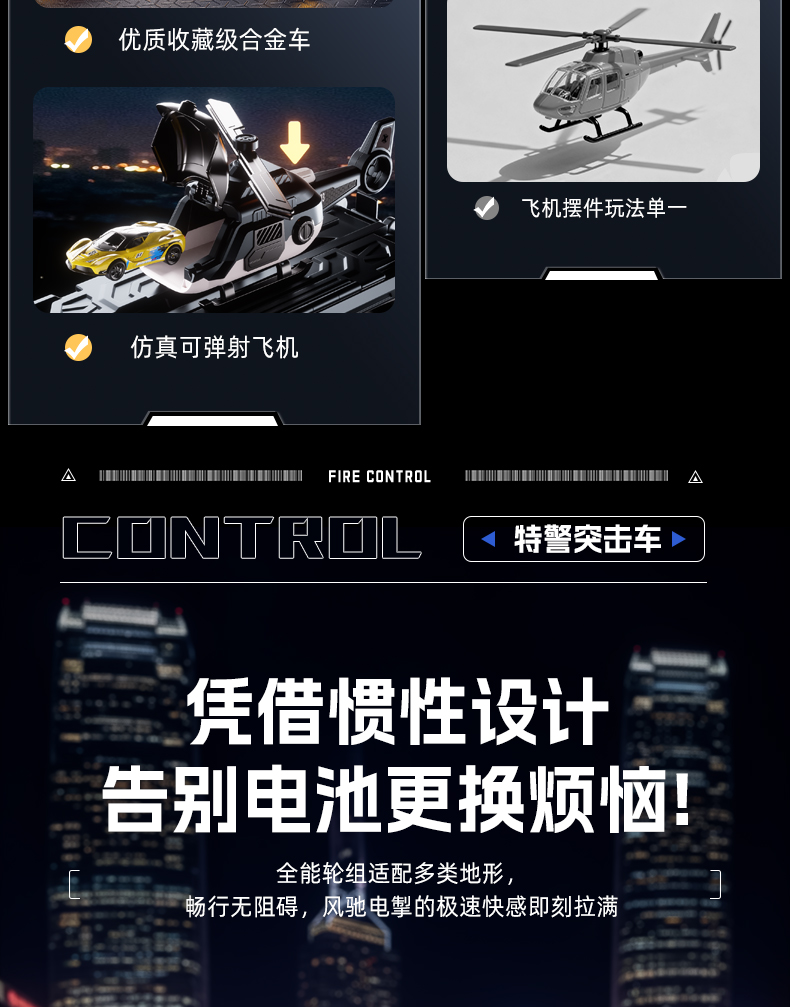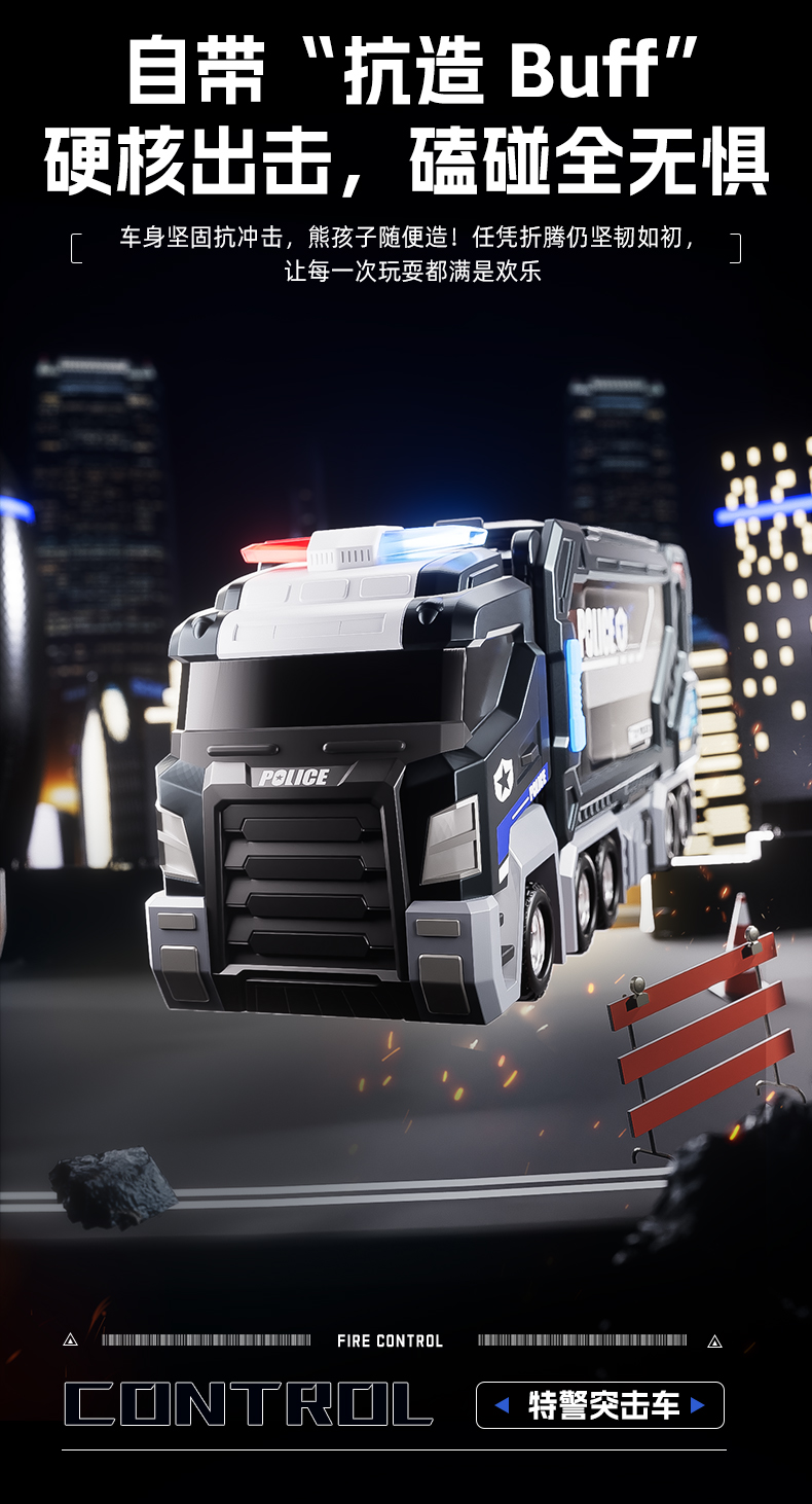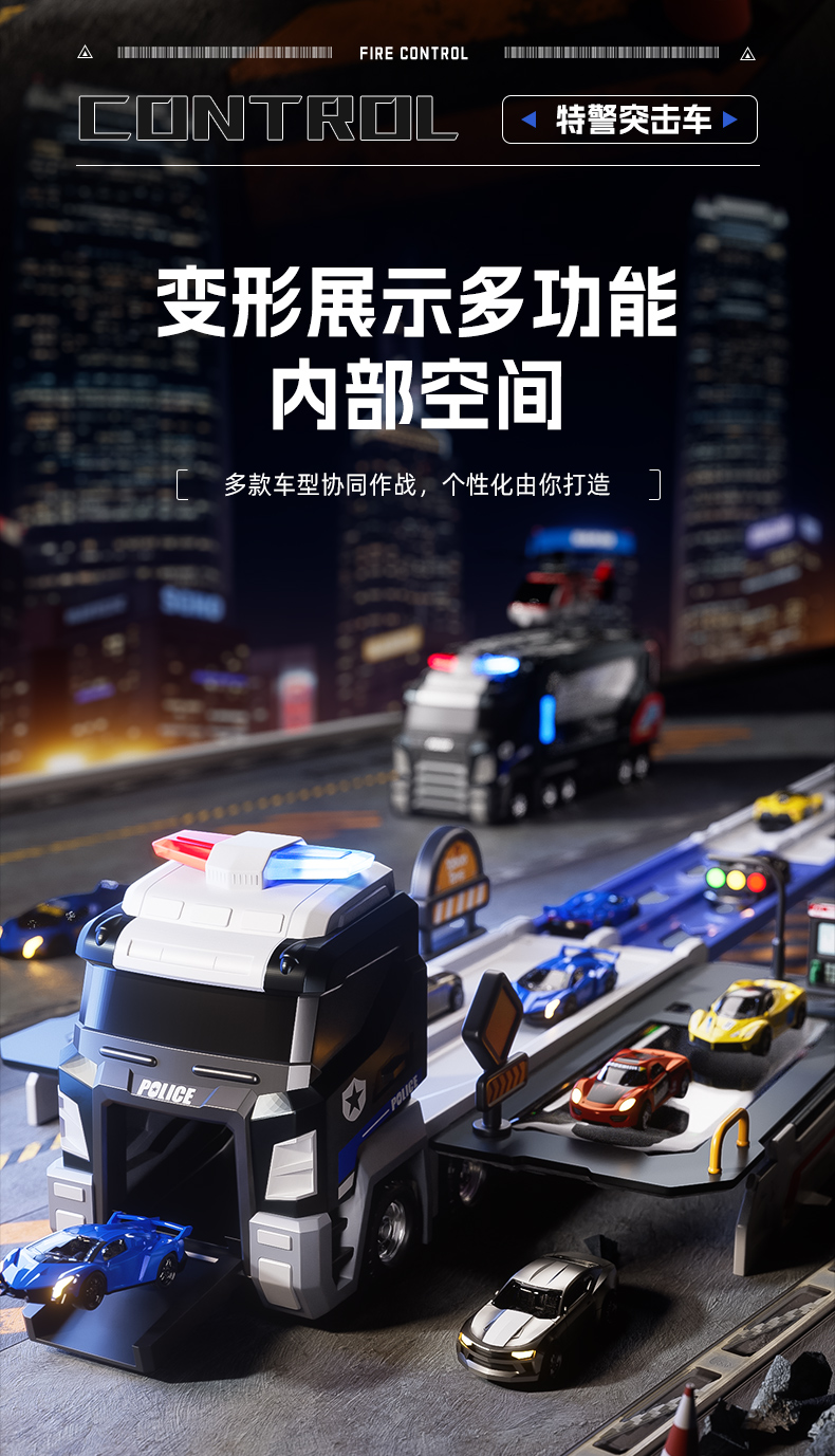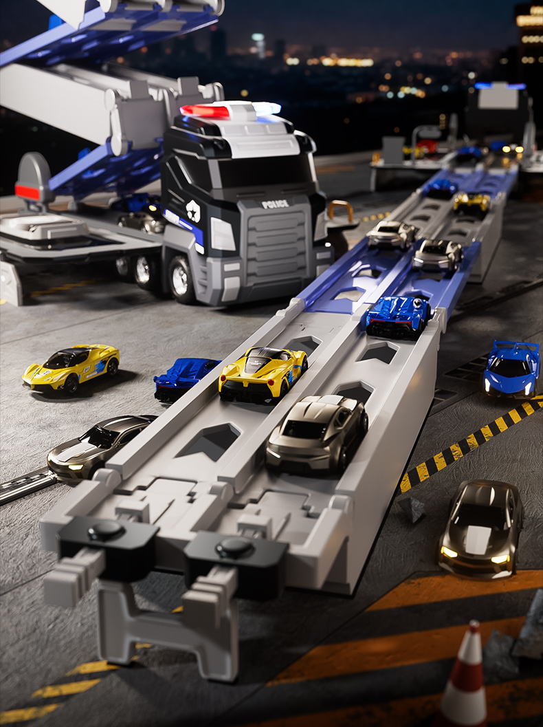 大号警车轨道玩具车6变形滑行弹射合金收纳小汽车男孩玩具飞机3