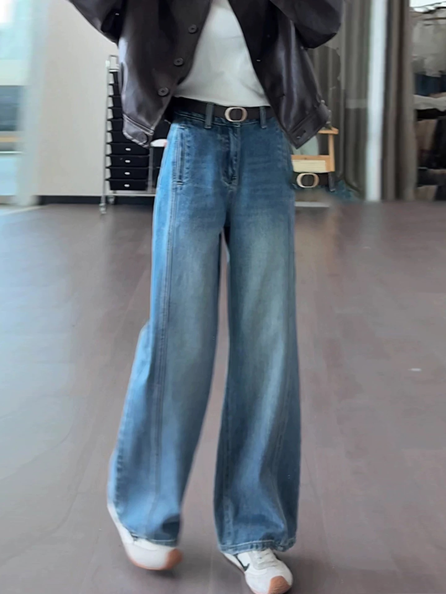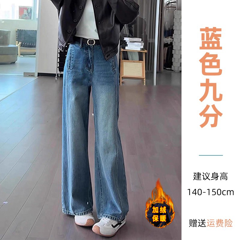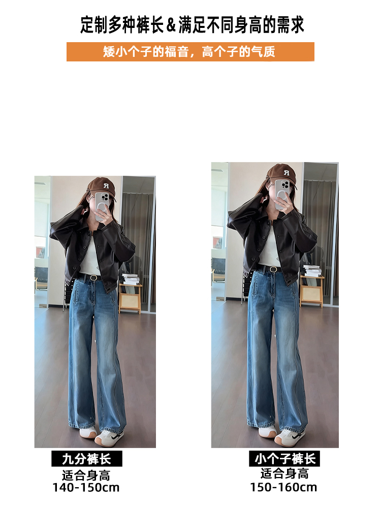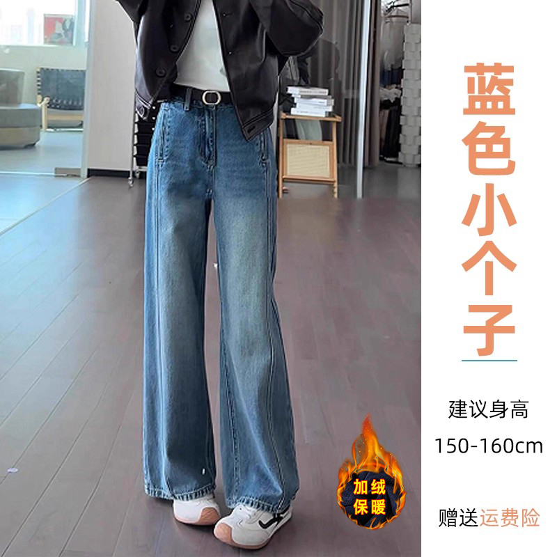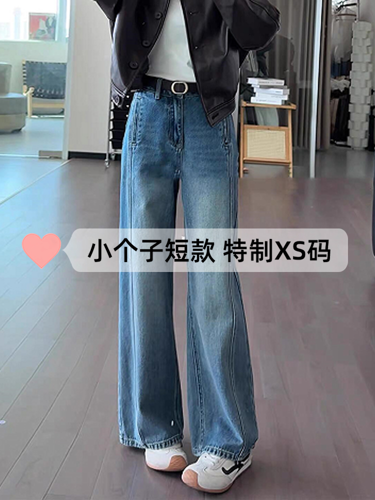 小个子阔腿牛仔裤女2025新款今年流行爆款秋季裤子高腰宽松直筒裤