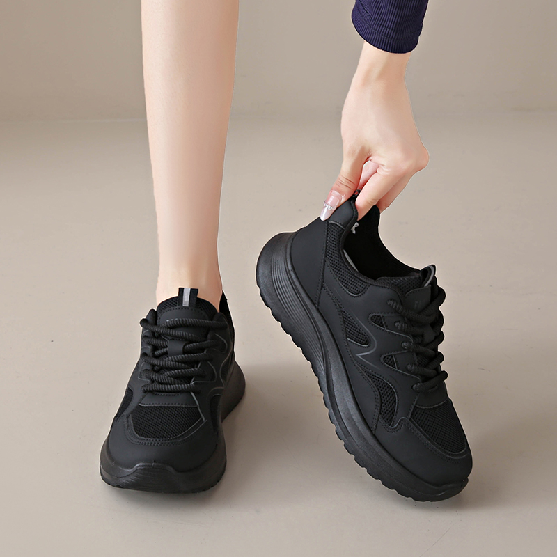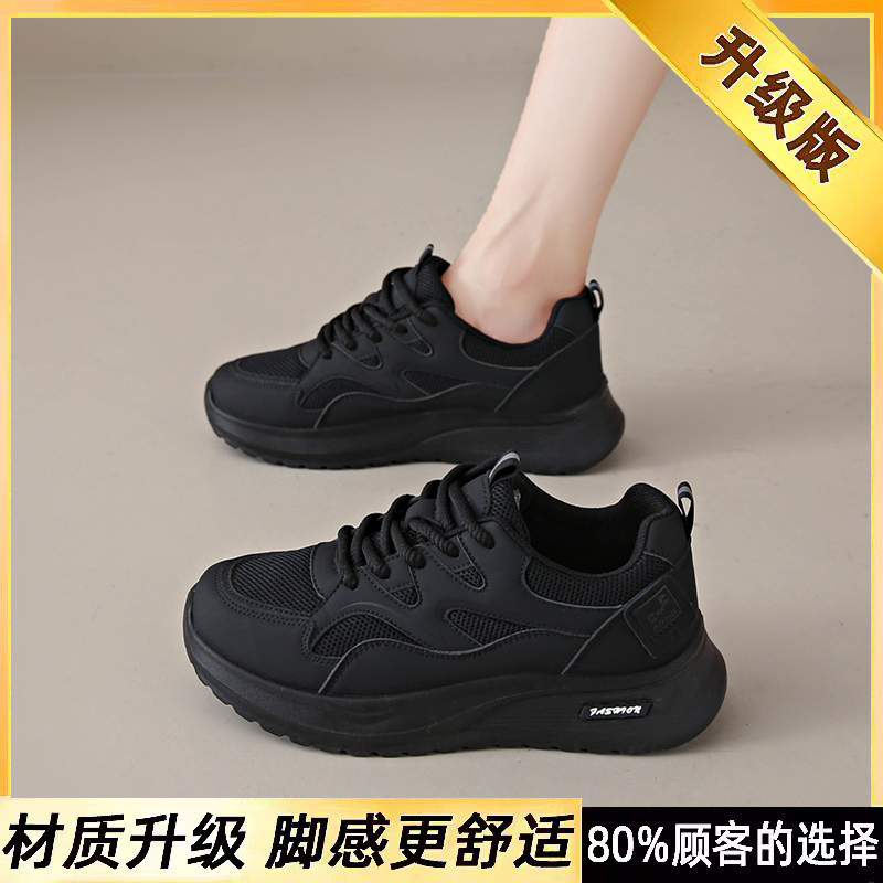 踩屎感软底黑色老爹鞋女2025冬季新款超轻不累脚工作鞋防滑运动鞋