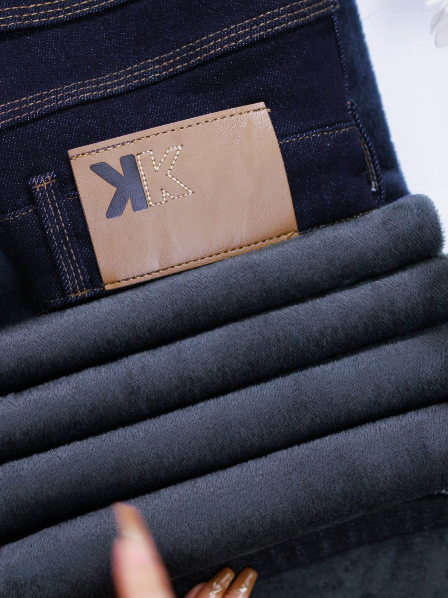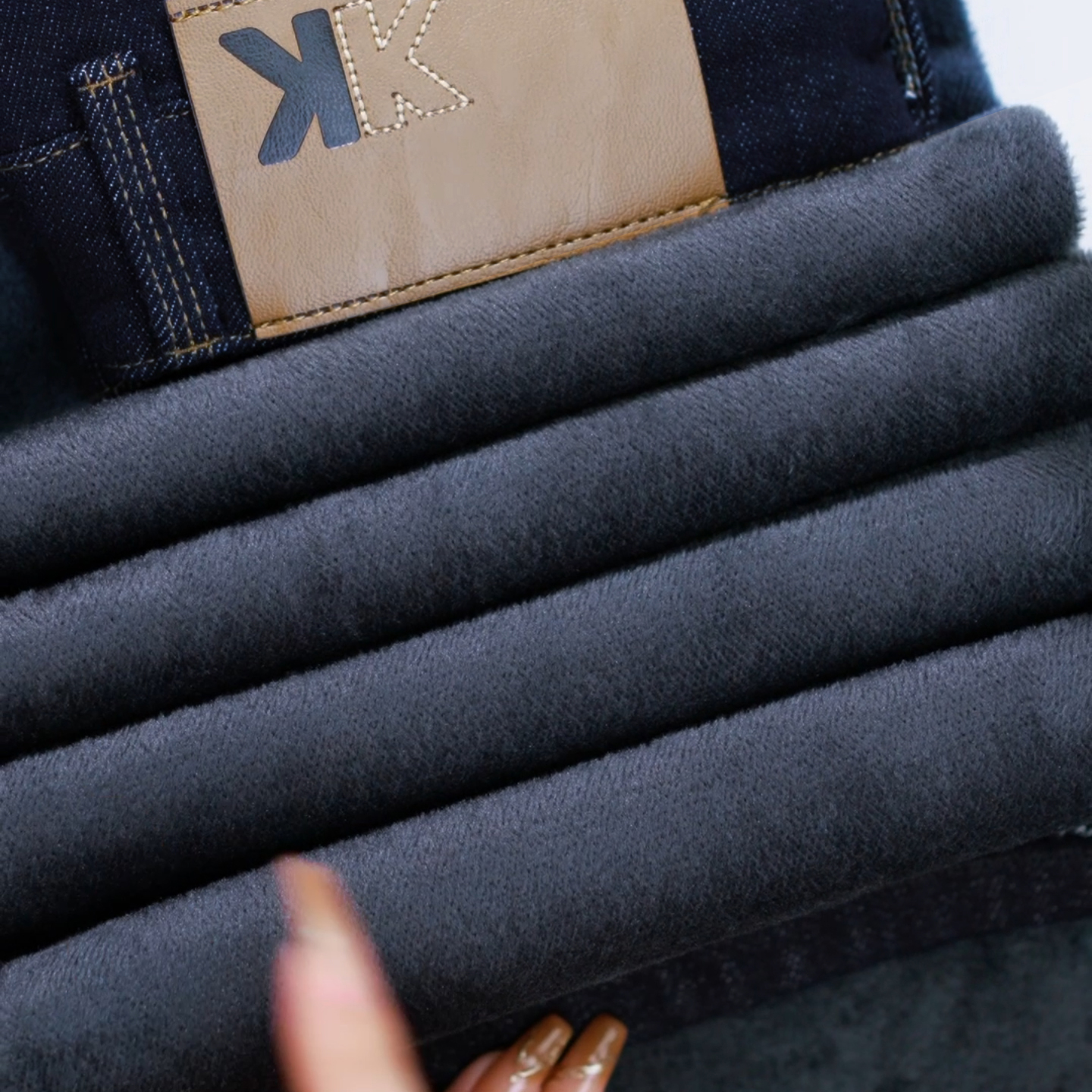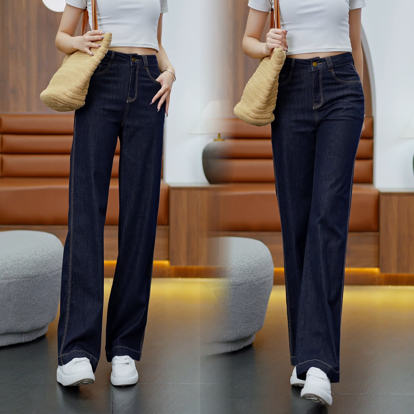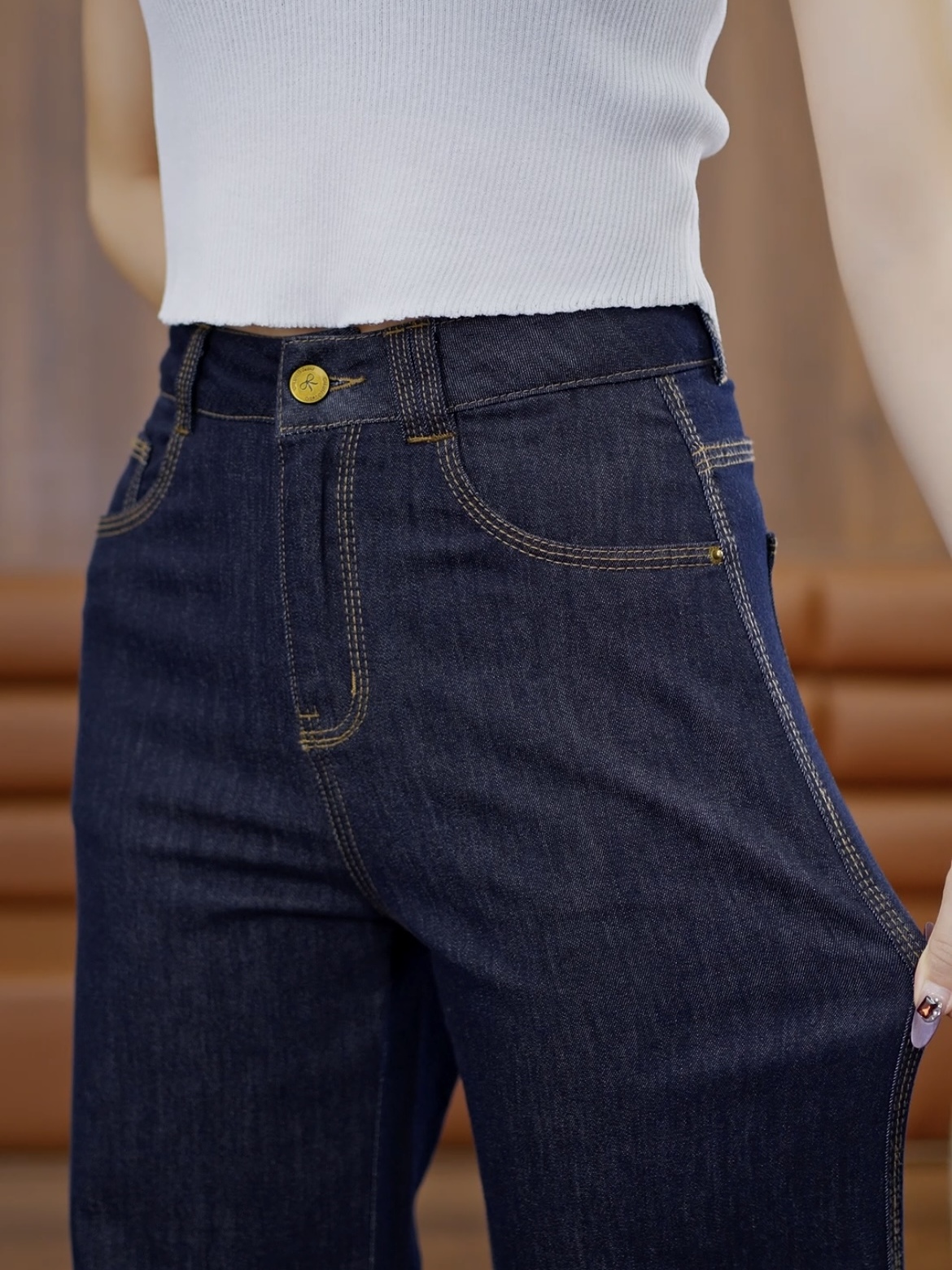 丹宁蓝窄版阔腿牛仔裤女2025年秋冬季保暖高腰宽松加绒加厚直筒裤