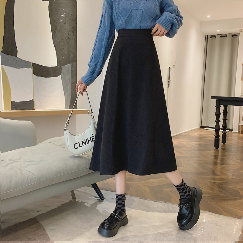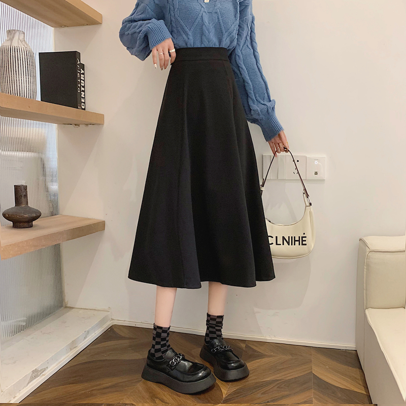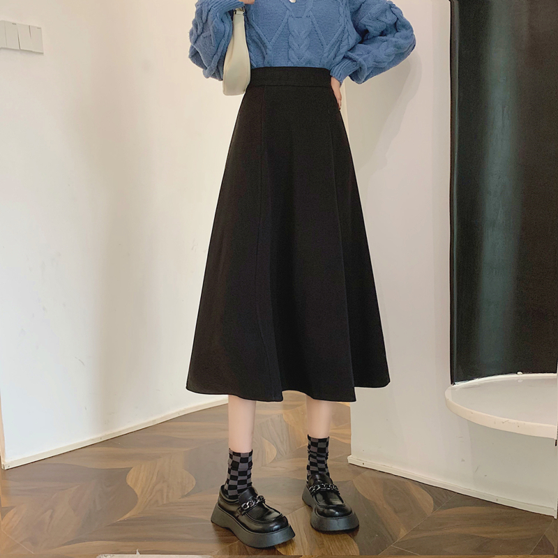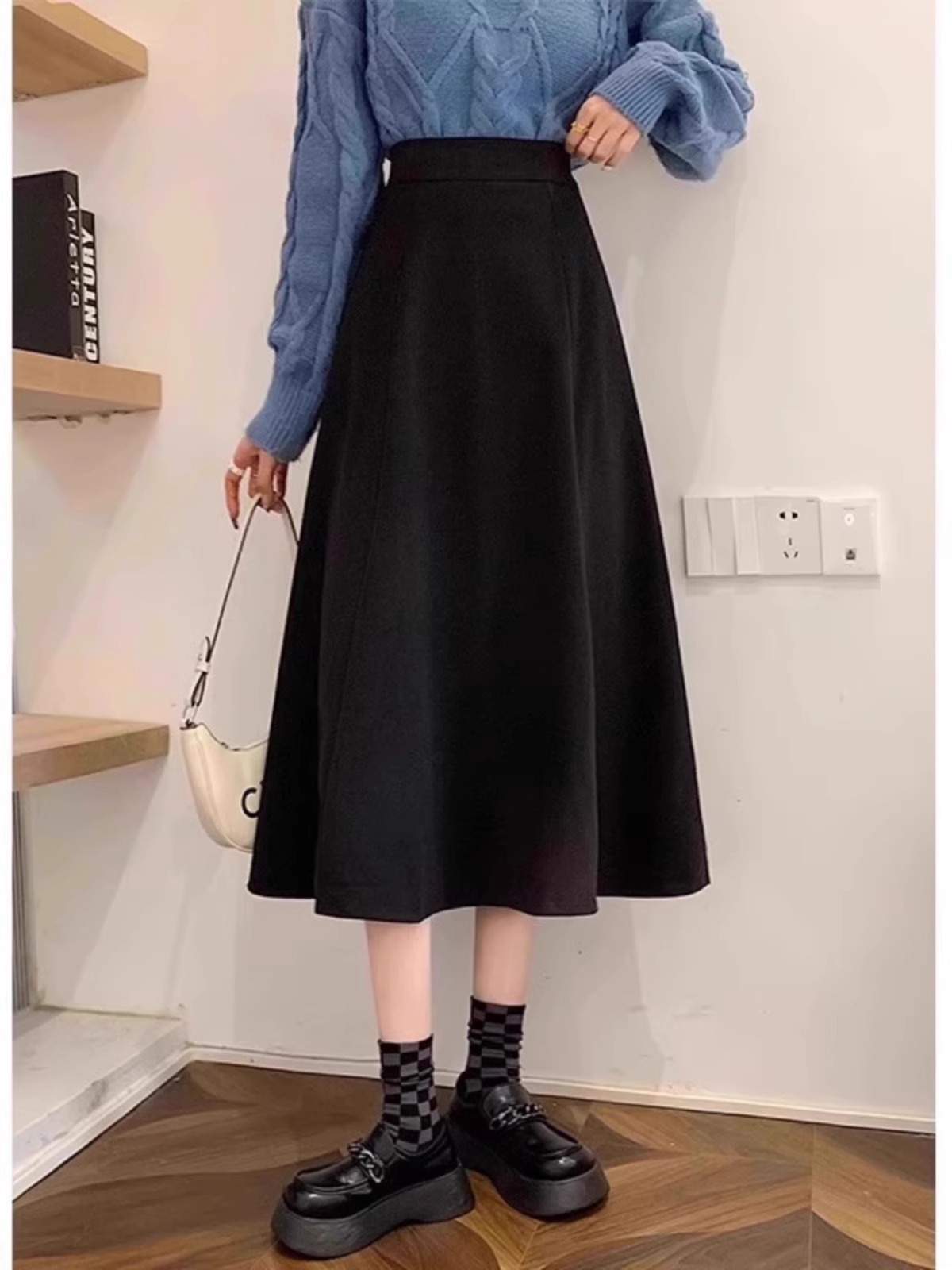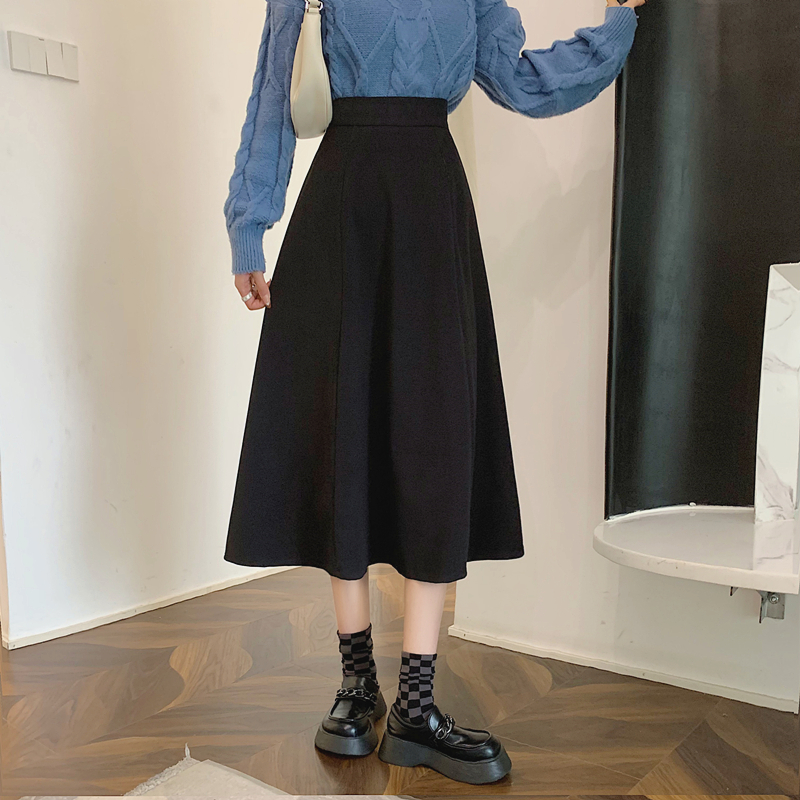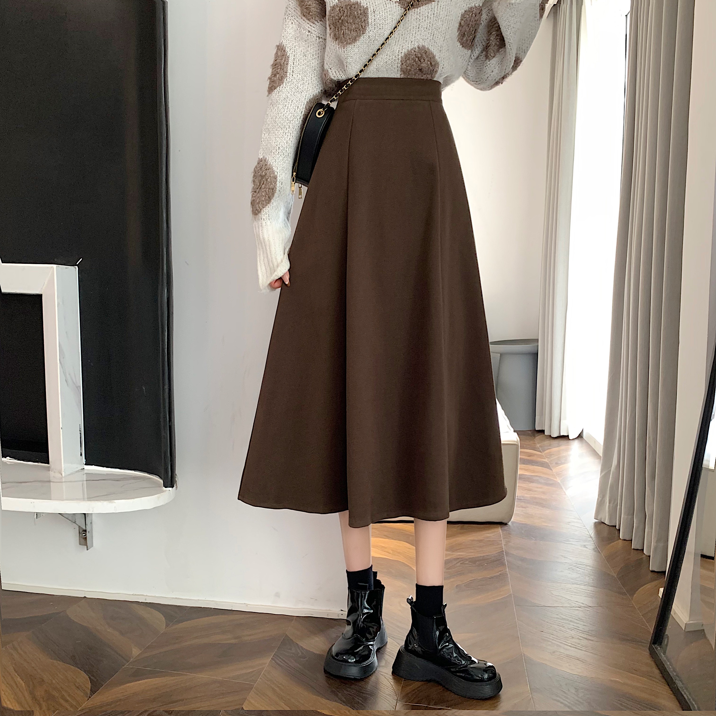 黑色毛呢半身裙女秋2025新款a字高腰显瘦伞裙法式秋冬季长裙子潮