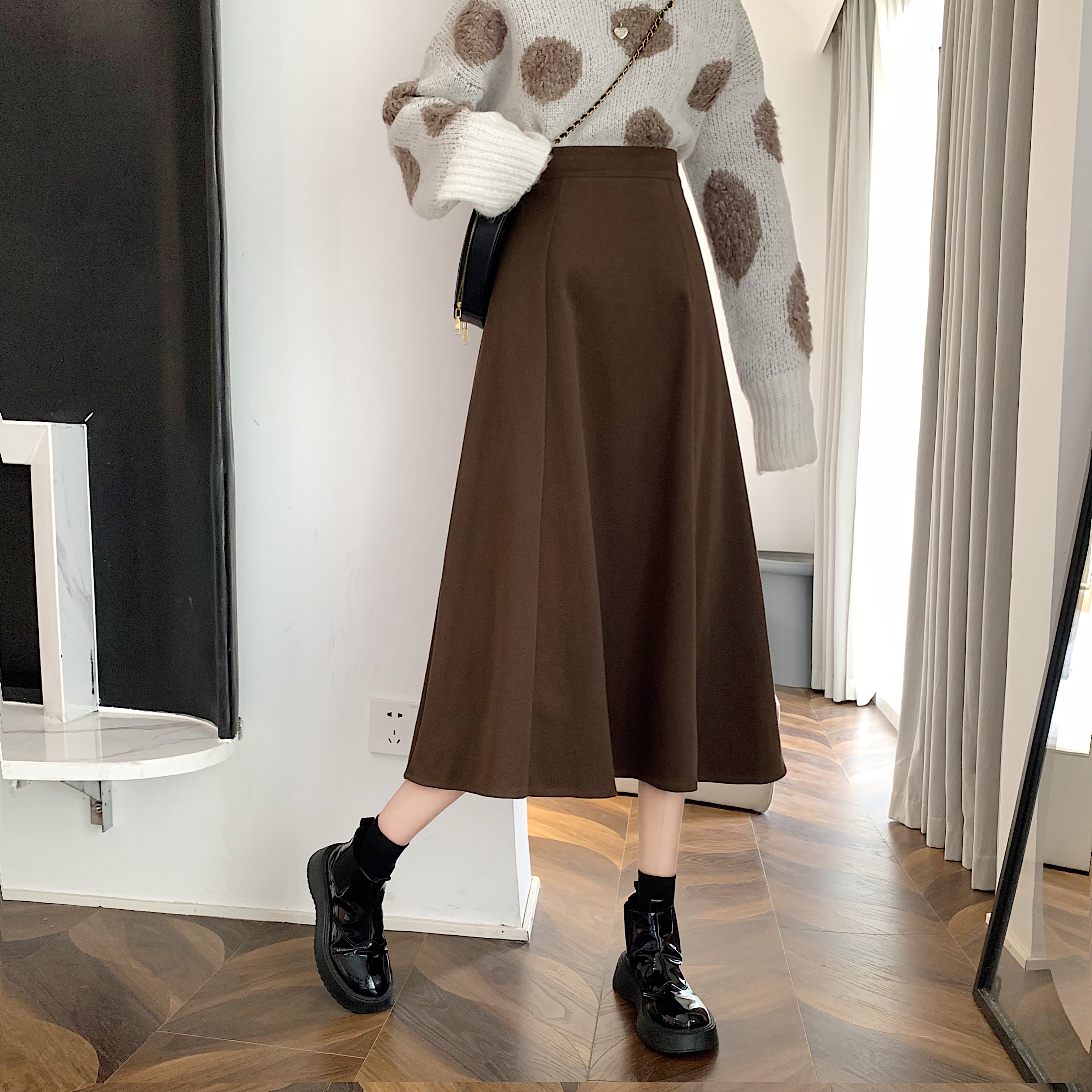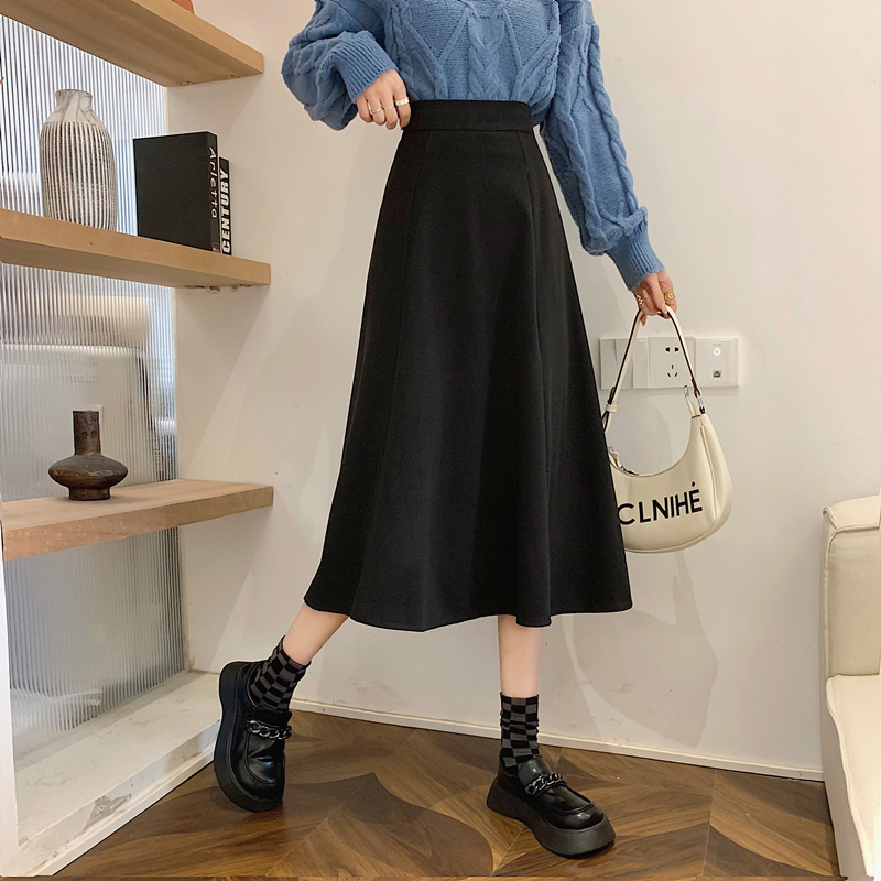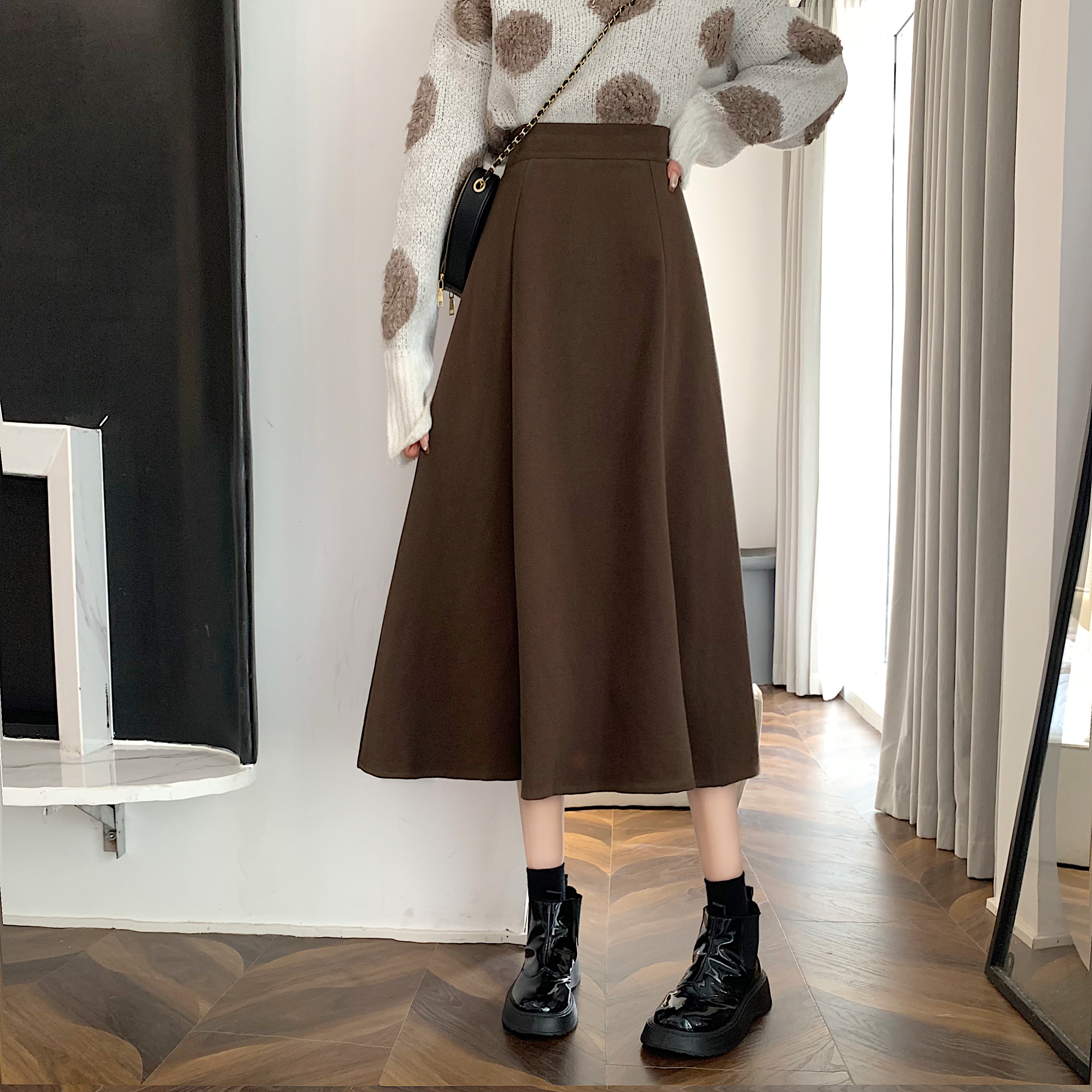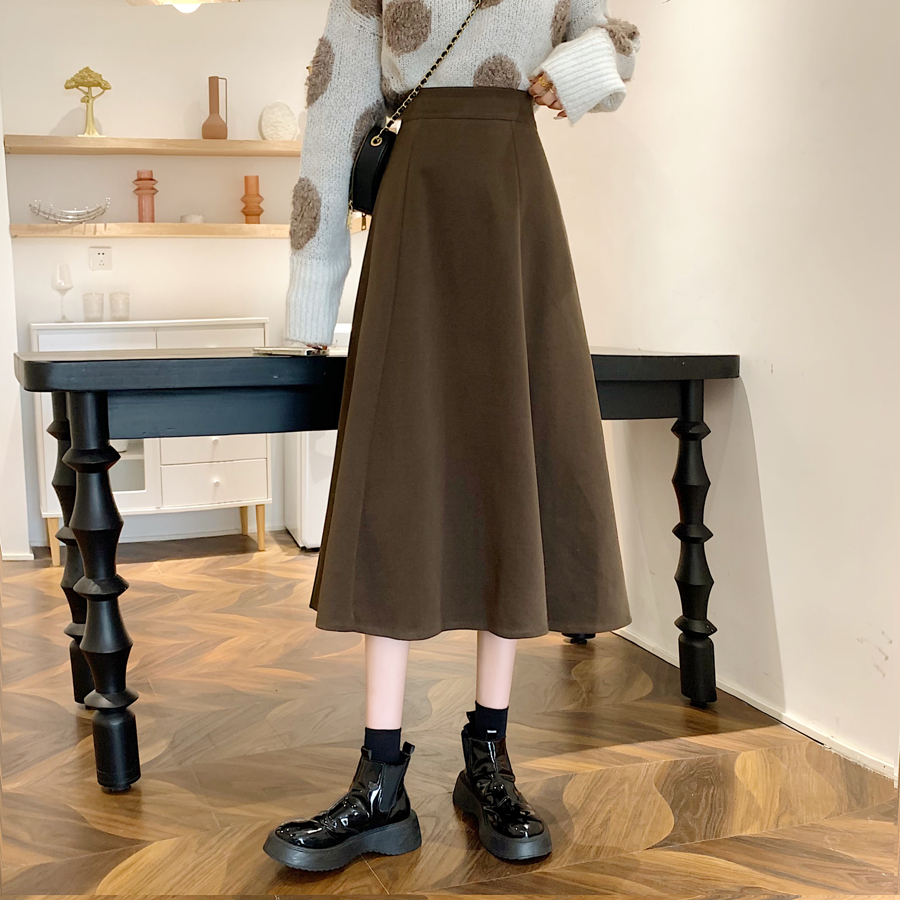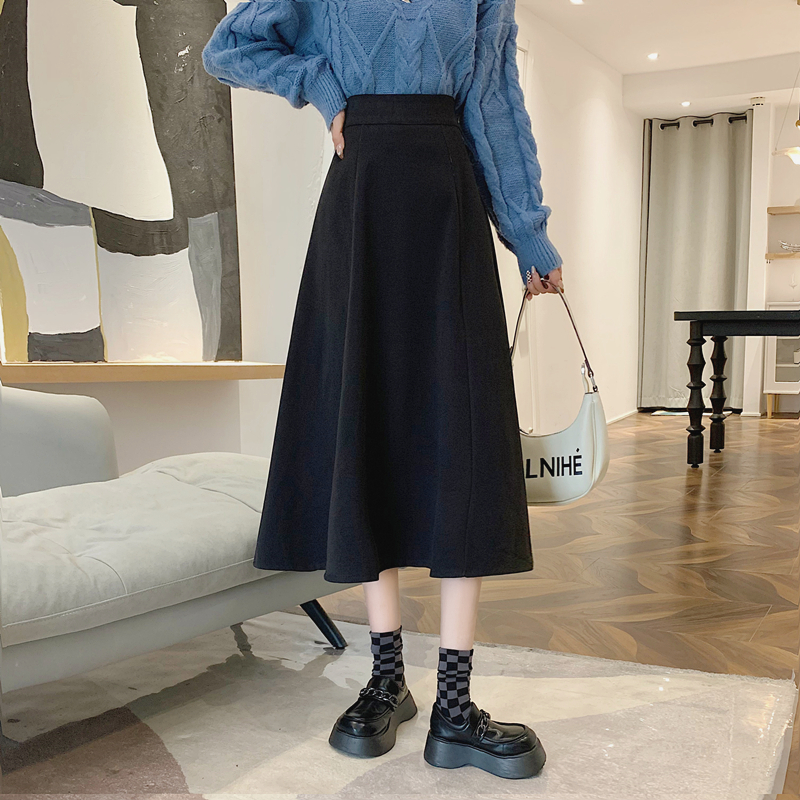 黑色毛呢半身裙女秋2025新款a字高腰显瘦伞裙法式秋冬季长裙子潮