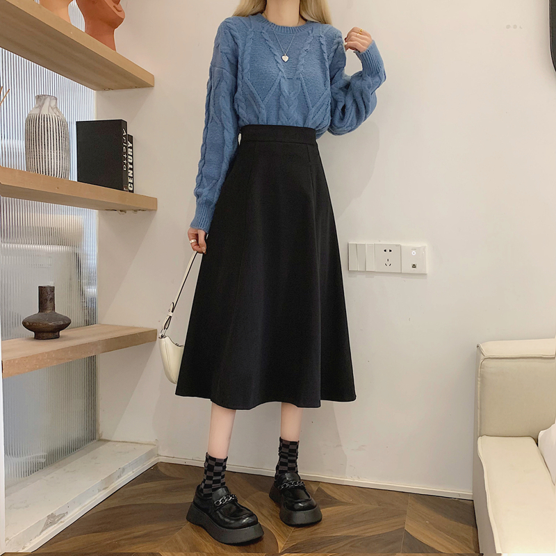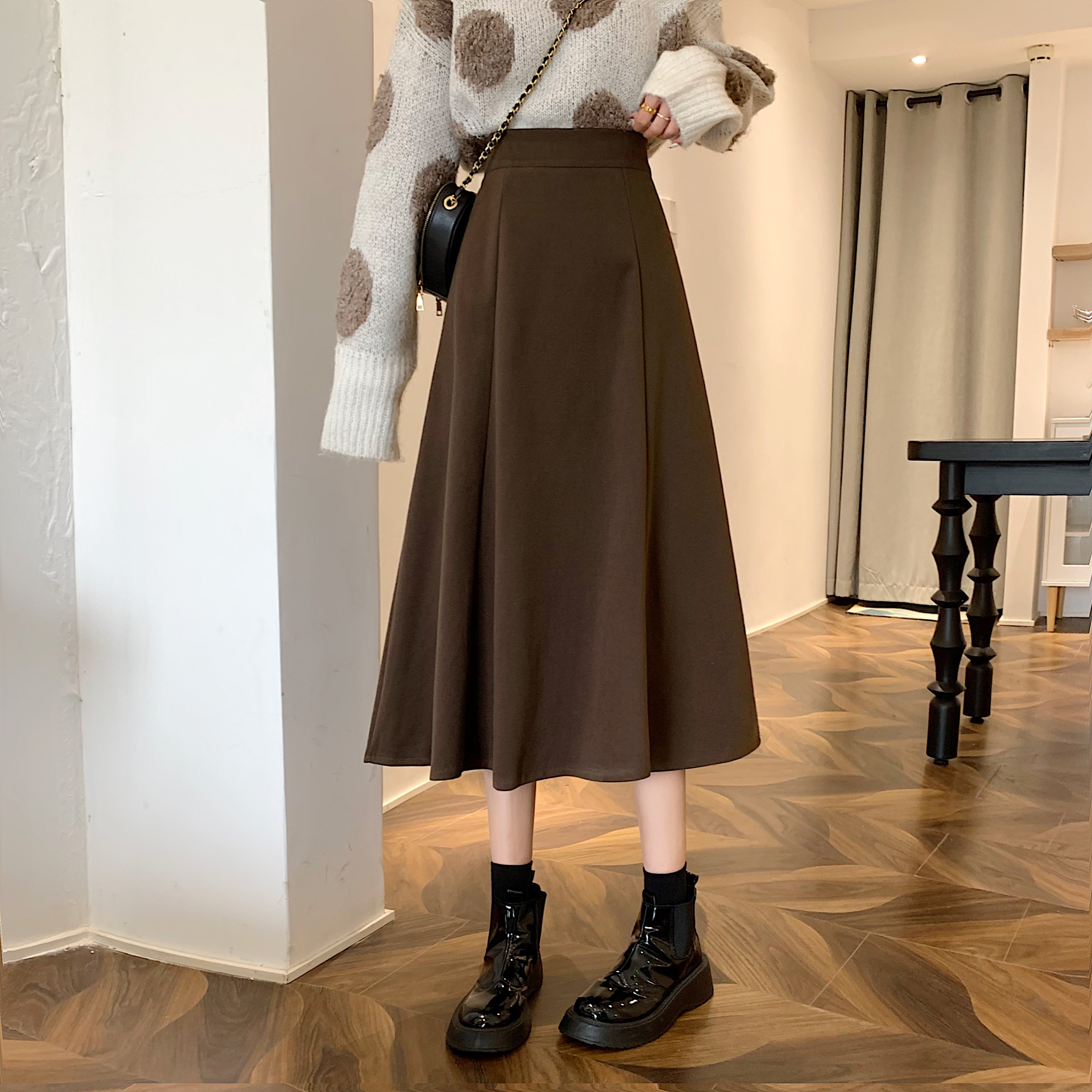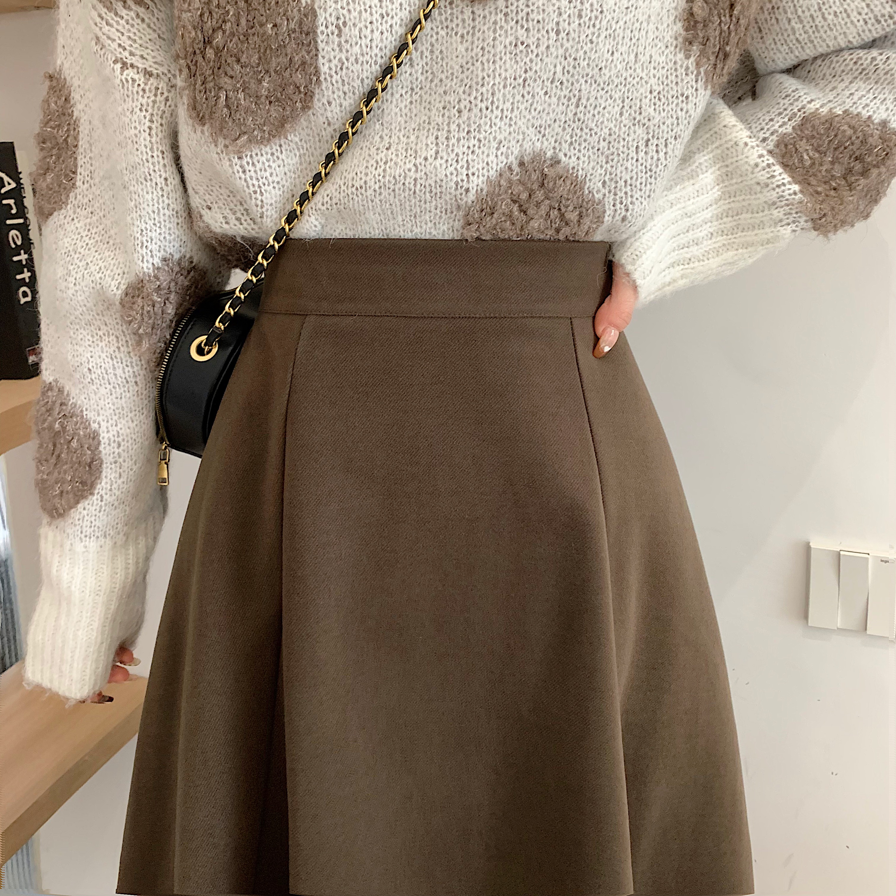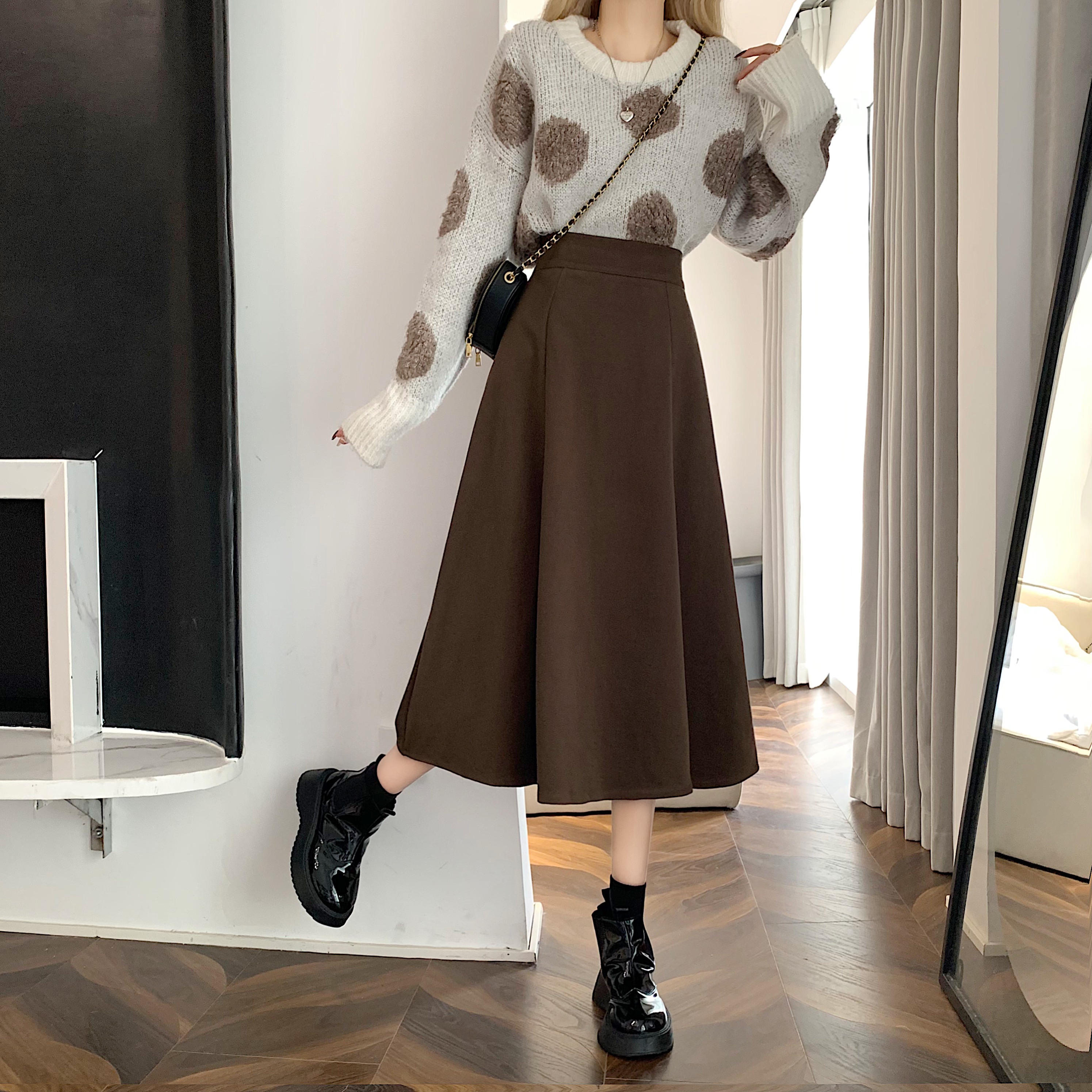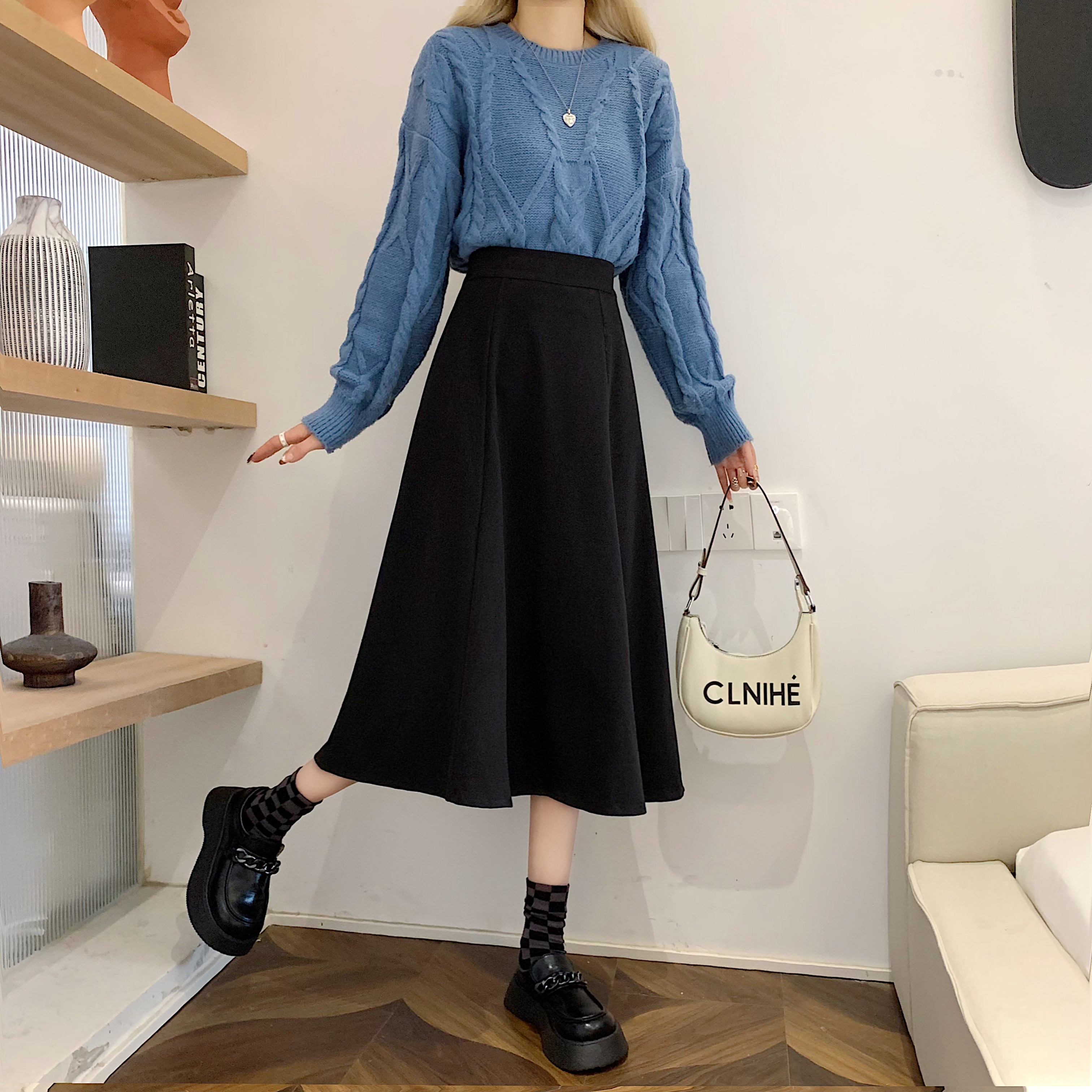 黑色毛呢半身裙女秋2025新款a字高腰显瘦伞裙法式秋冬季长裙子潮