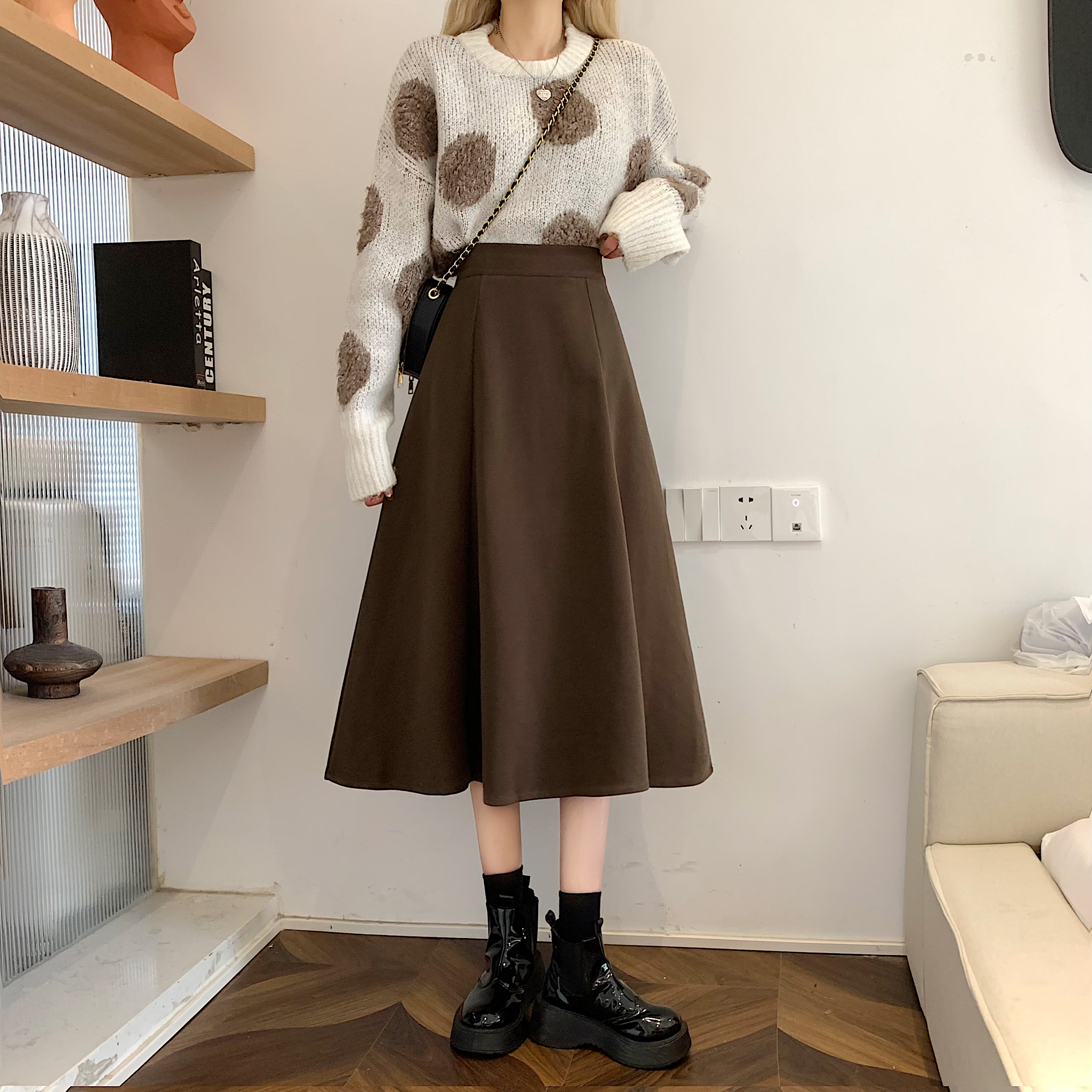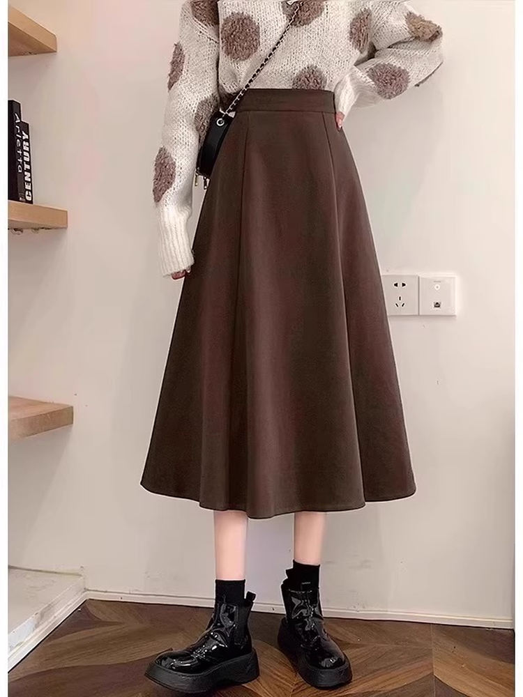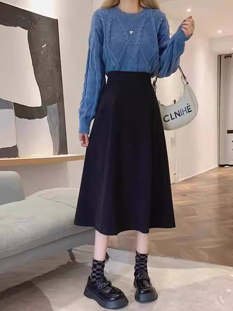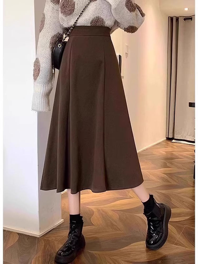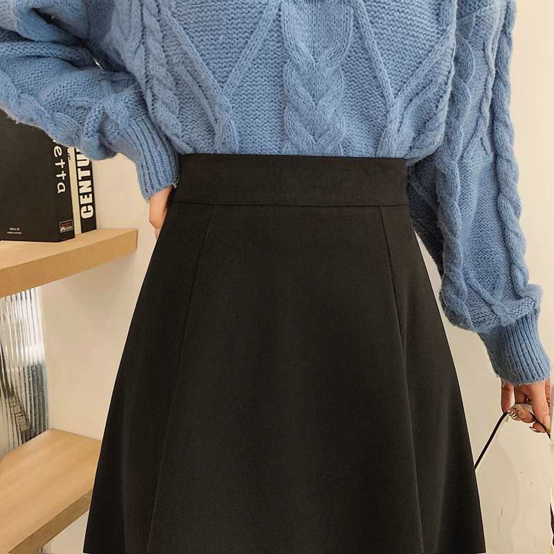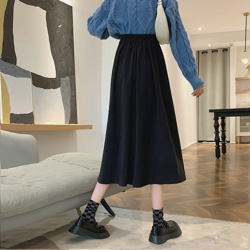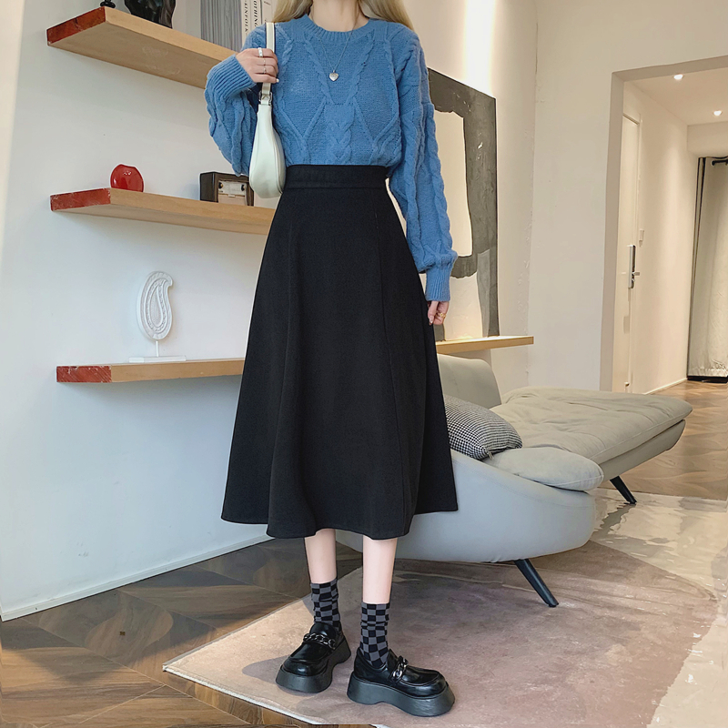 黑色毛呢半身裙女秋2025新款a字高腰显瘦伞裙法式秋冬季长裙子潮