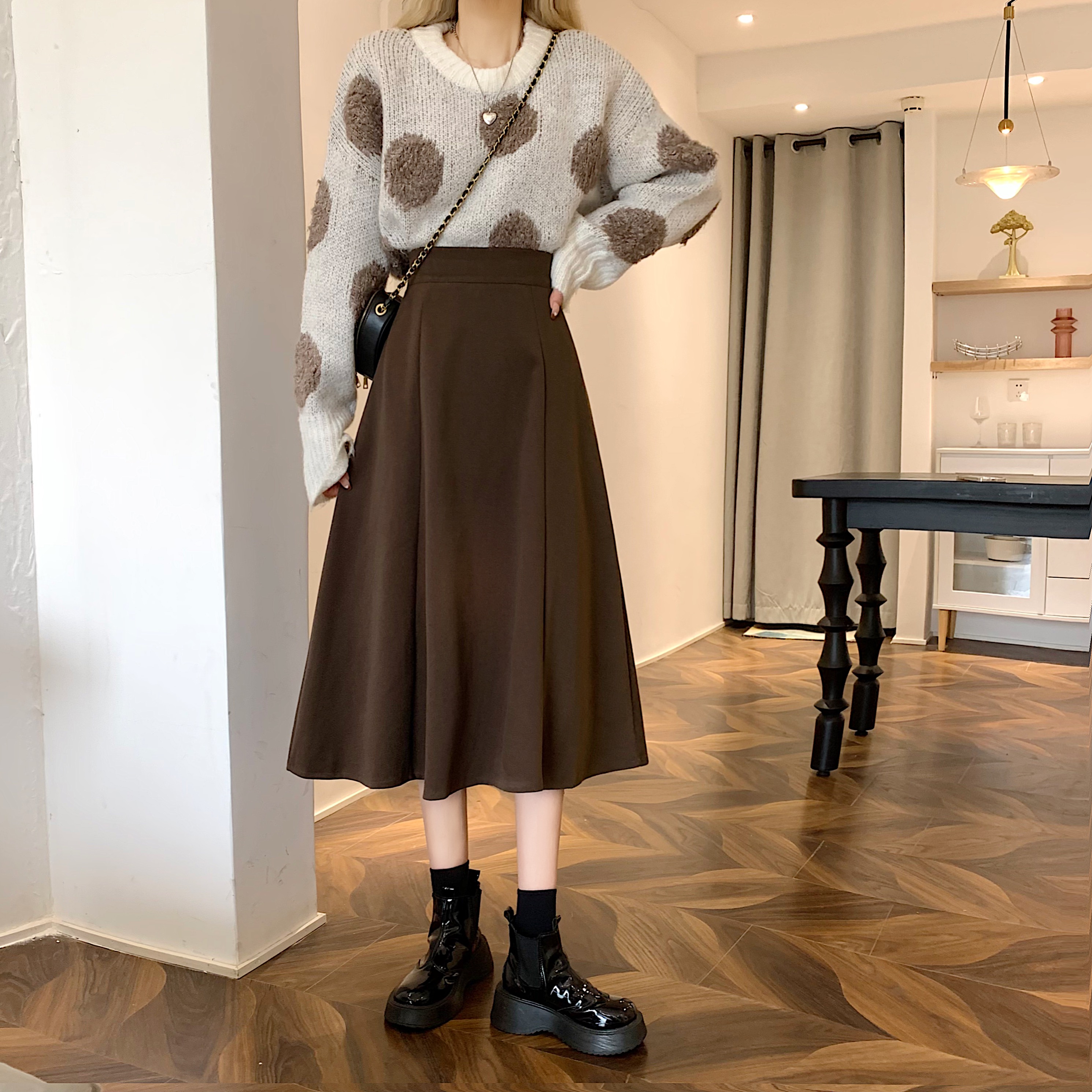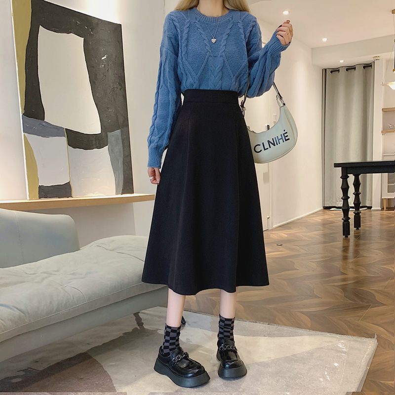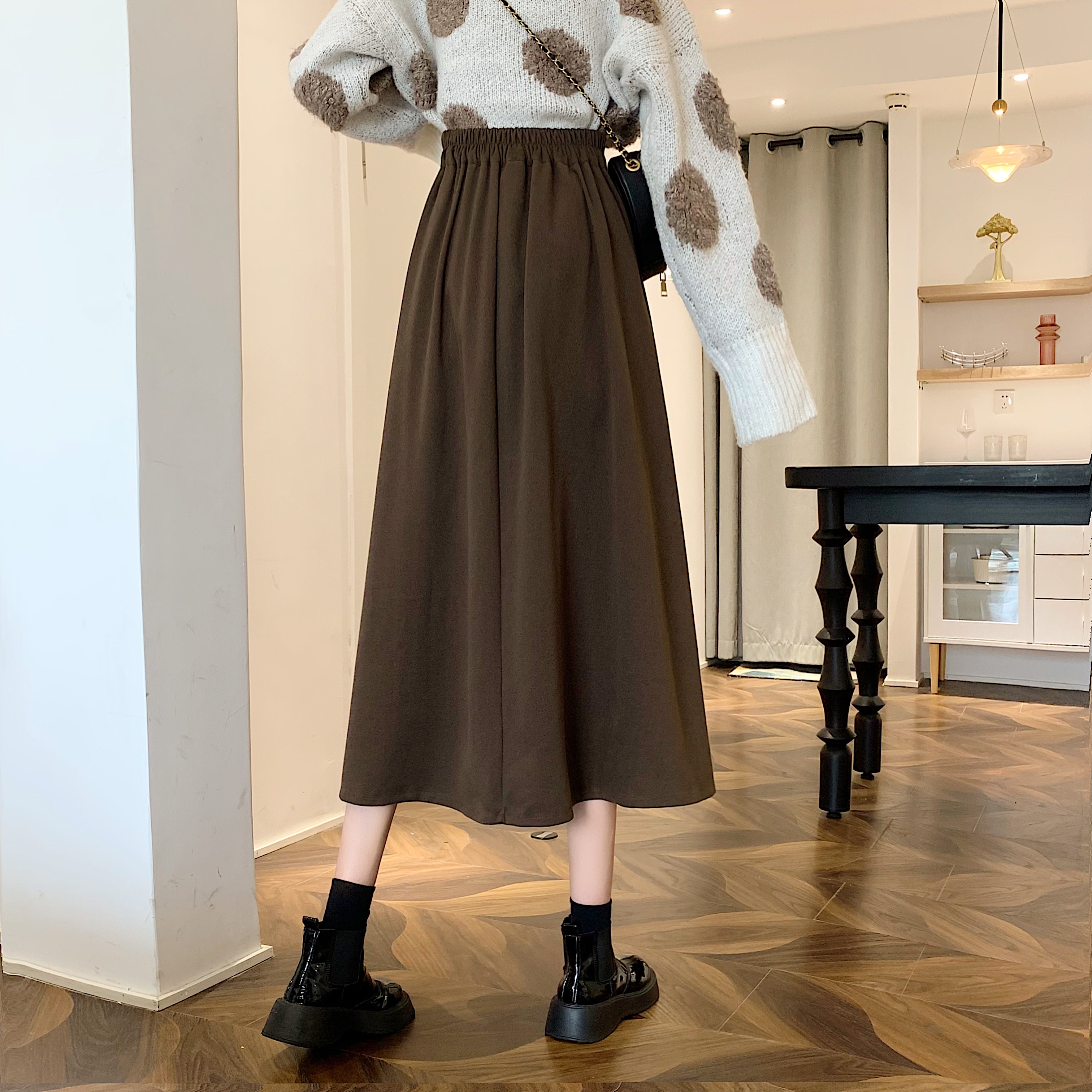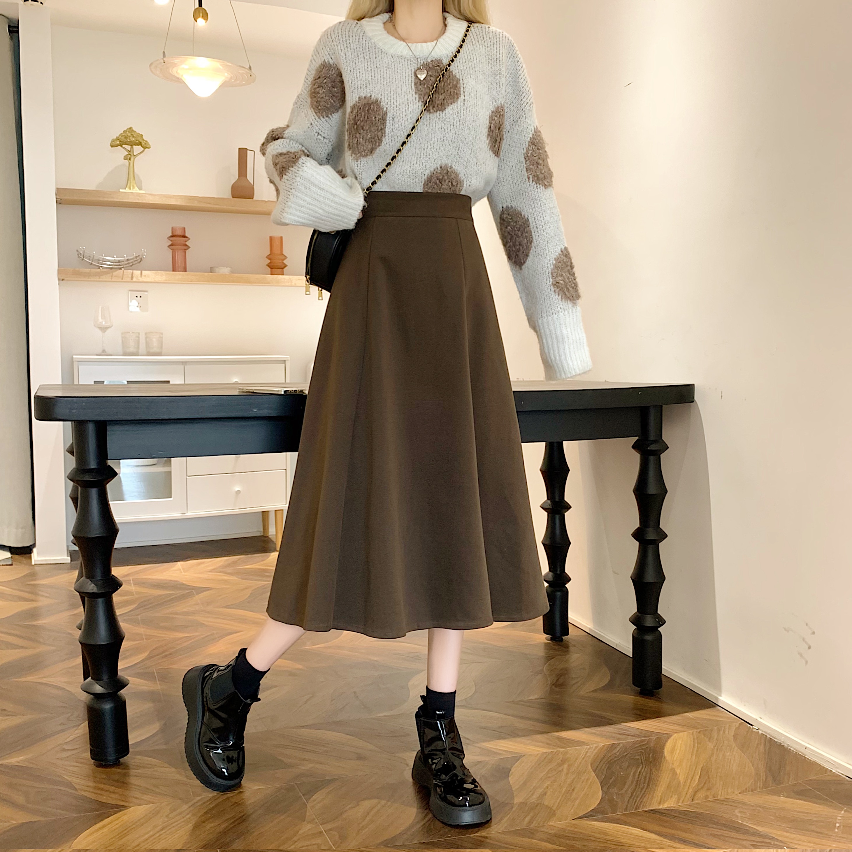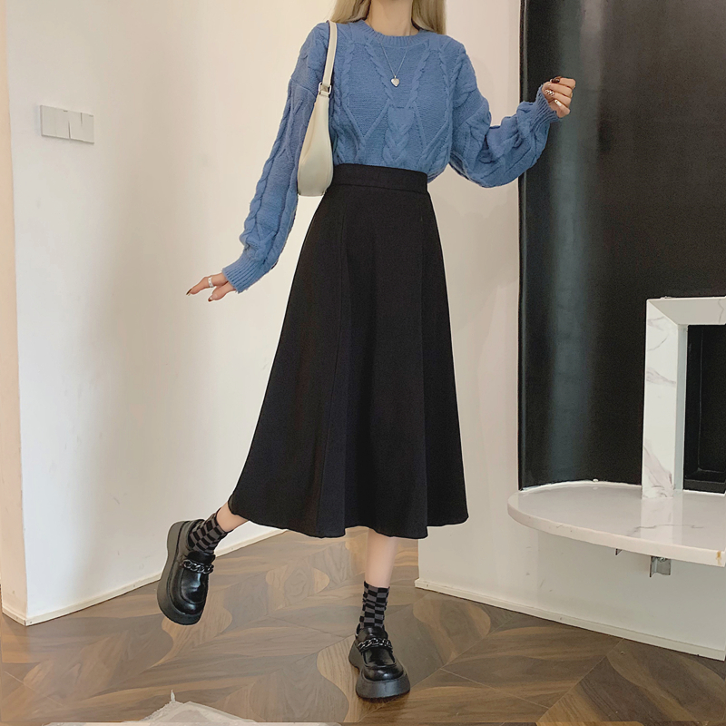 黑色毛呢半身裙女秋2025新款a字高腰显瘦伞裙法式秋冬季长裙子潮