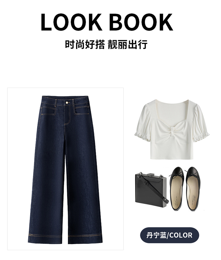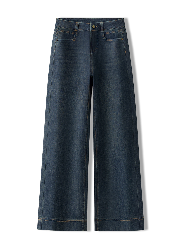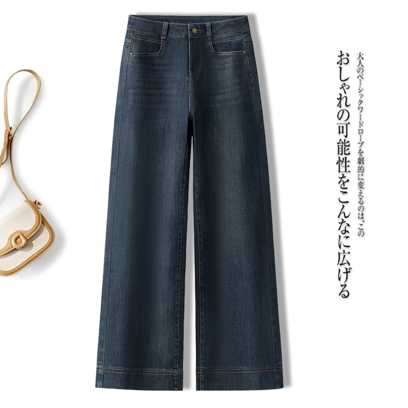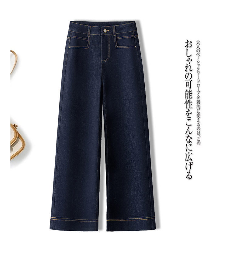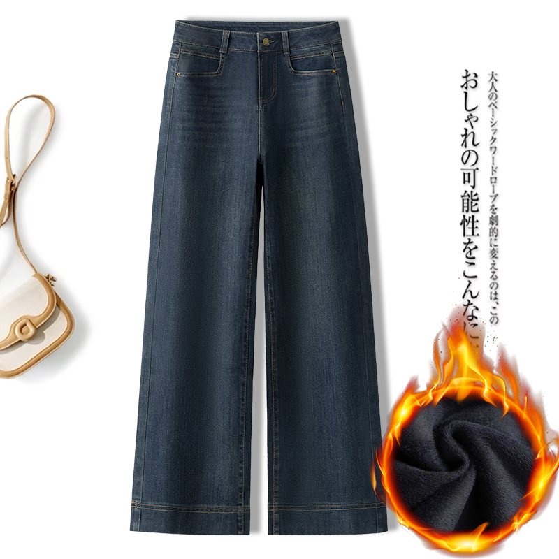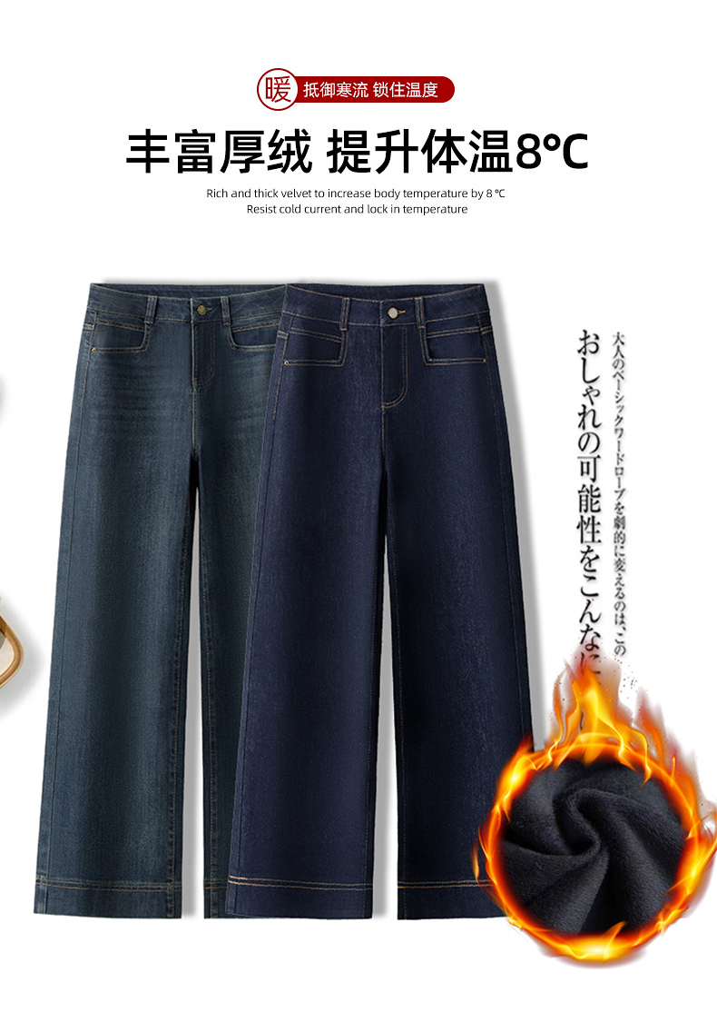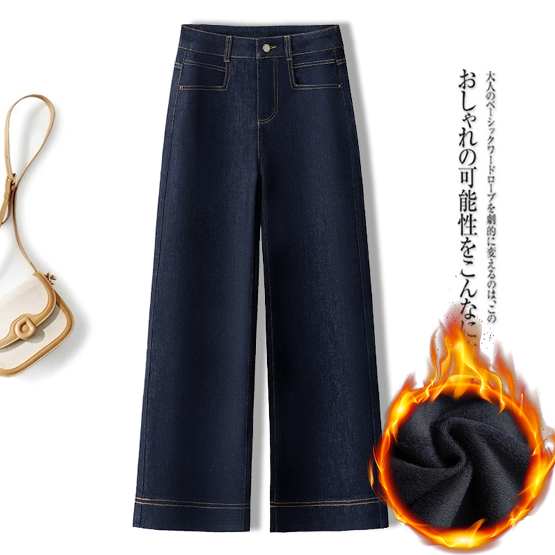 加绒加厚直筒牛仔裤女秋冬新款高腰显瘦小个子八九分窄版阔腿长裤