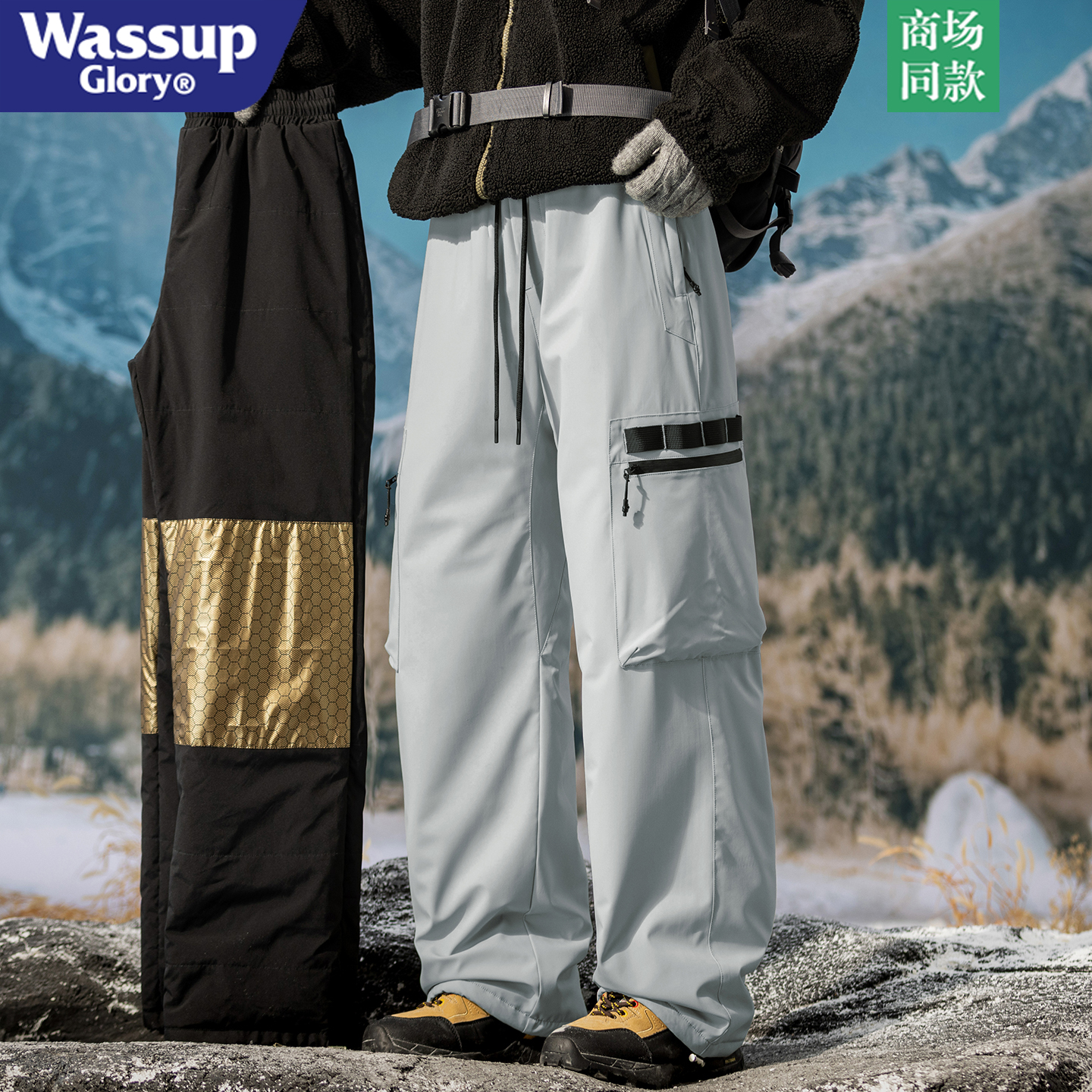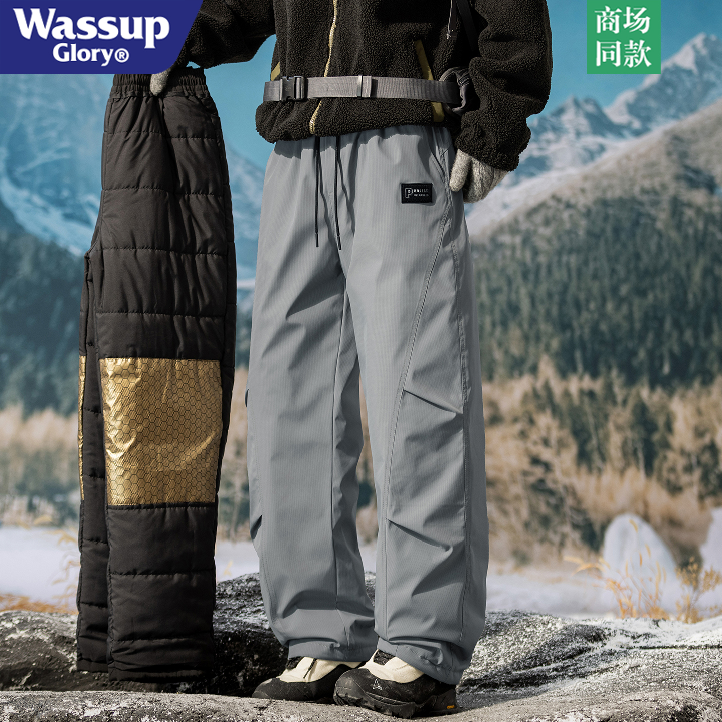 WASSUP GLORY户外工装风羽绒棉裤男冬季加厚保暖裤防风防水防寒裤